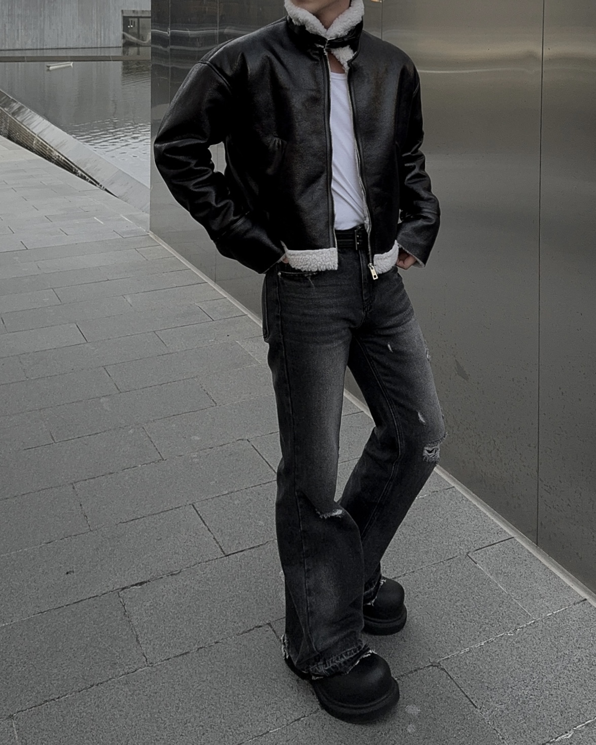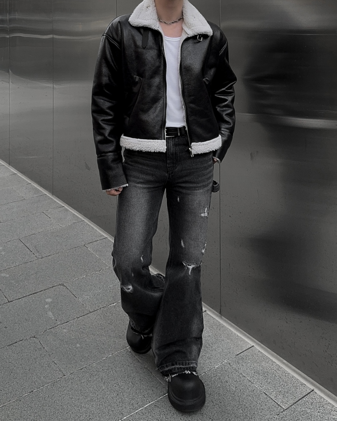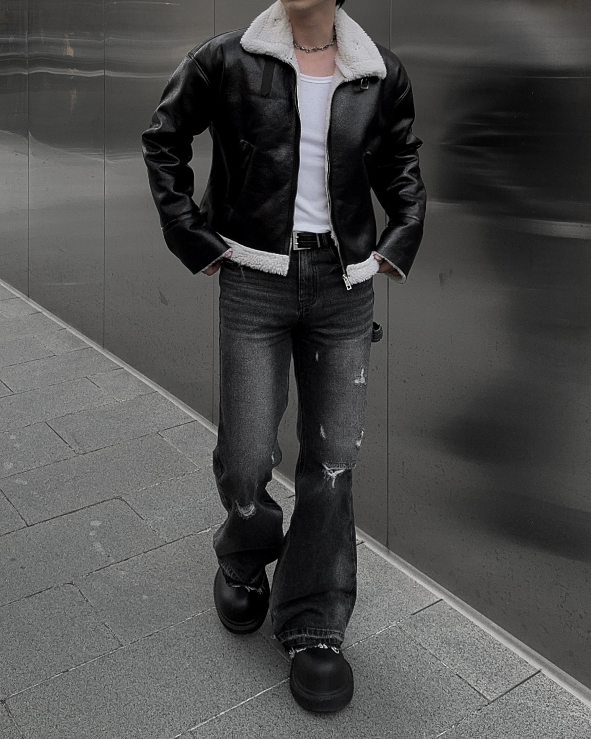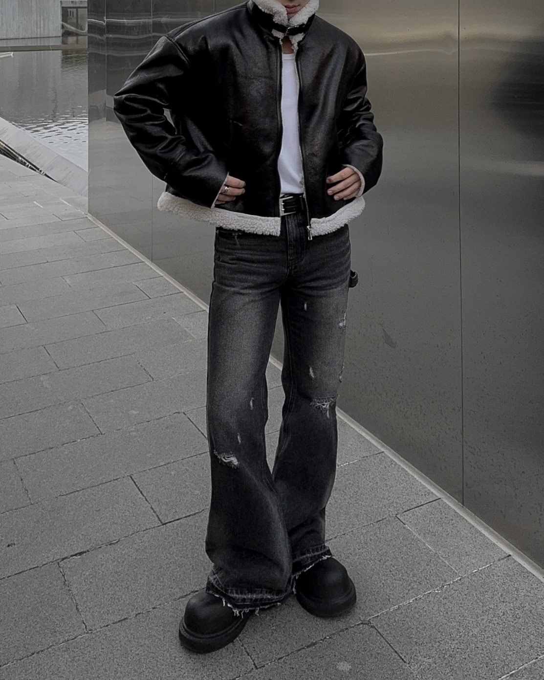 -씨어링 레더 소재로 제작된 무스탕