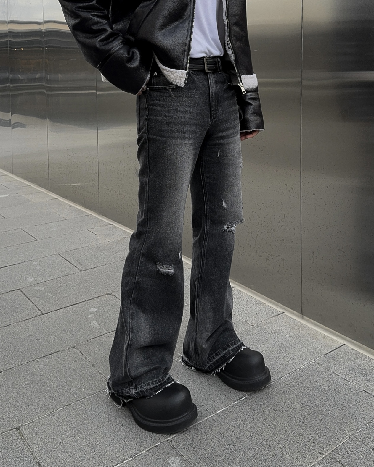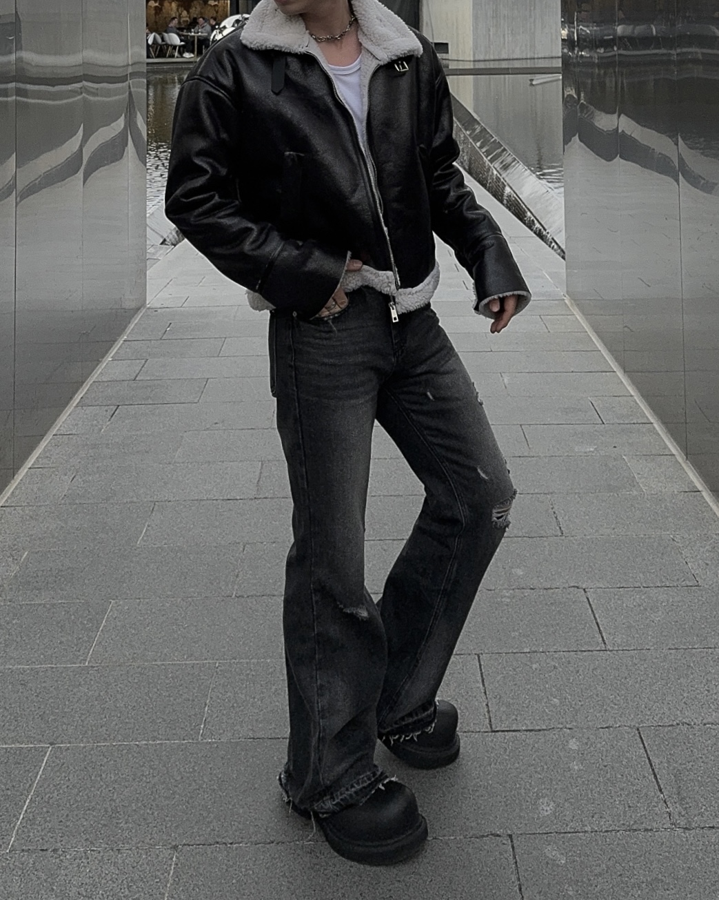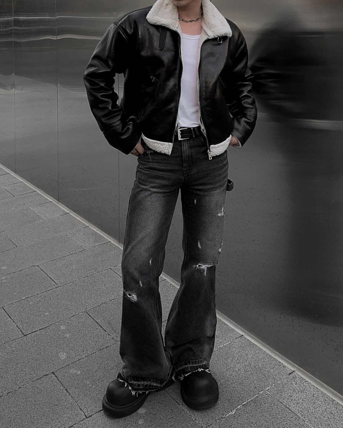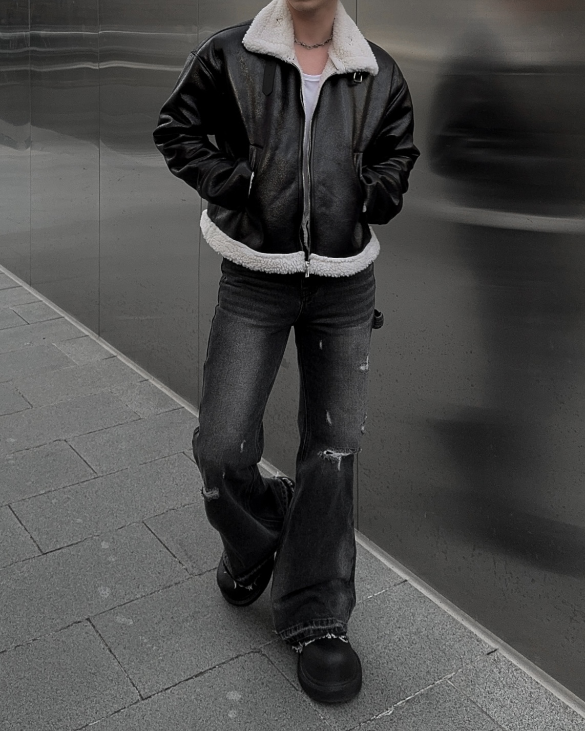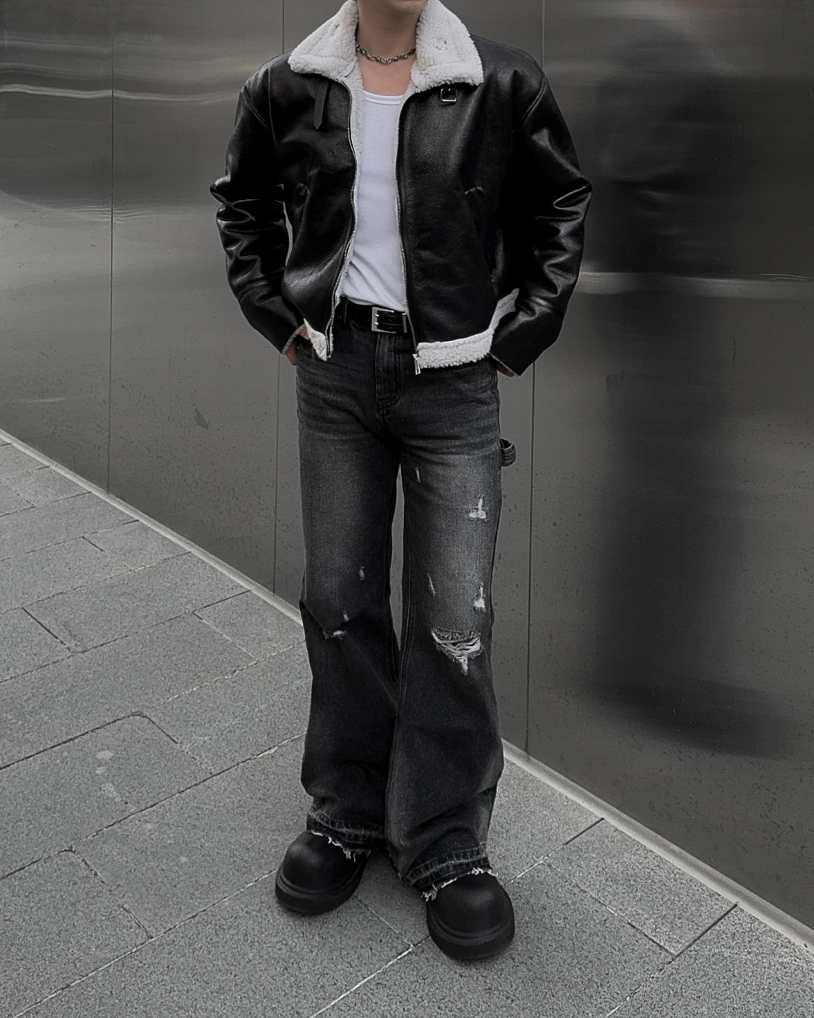 -씨어링 레더 소재로 제작된 무스탕