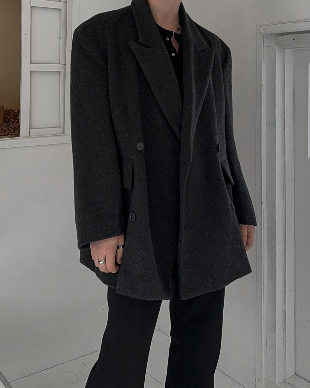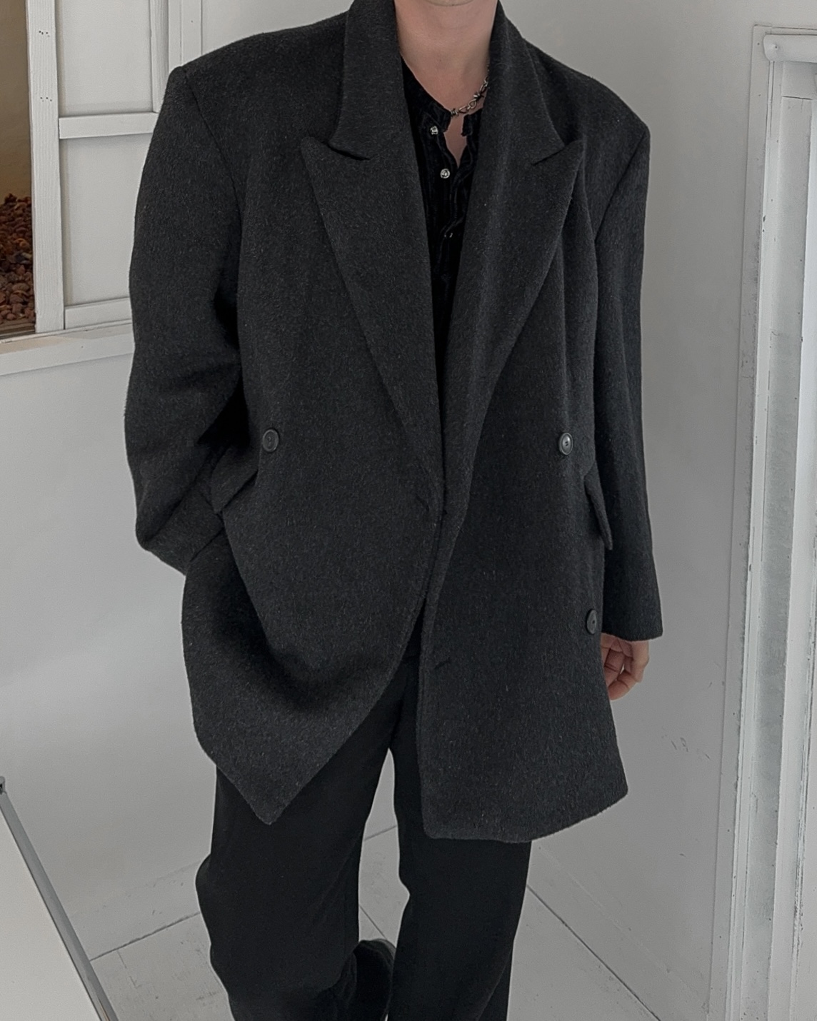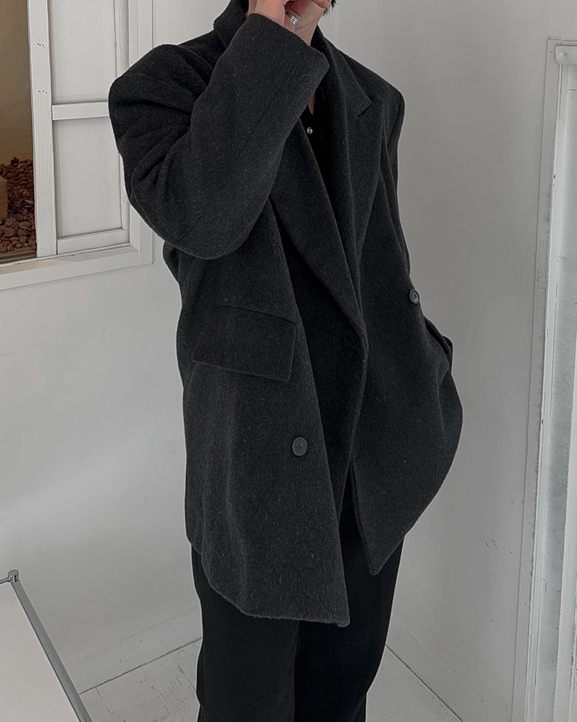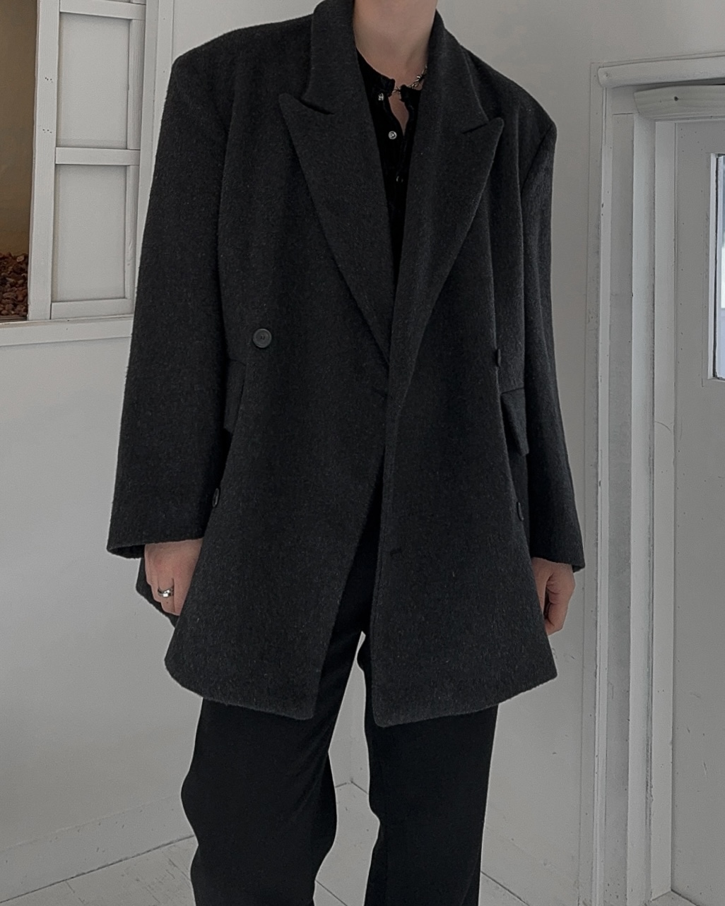 -어깨 패드로 체형보완 실루엣