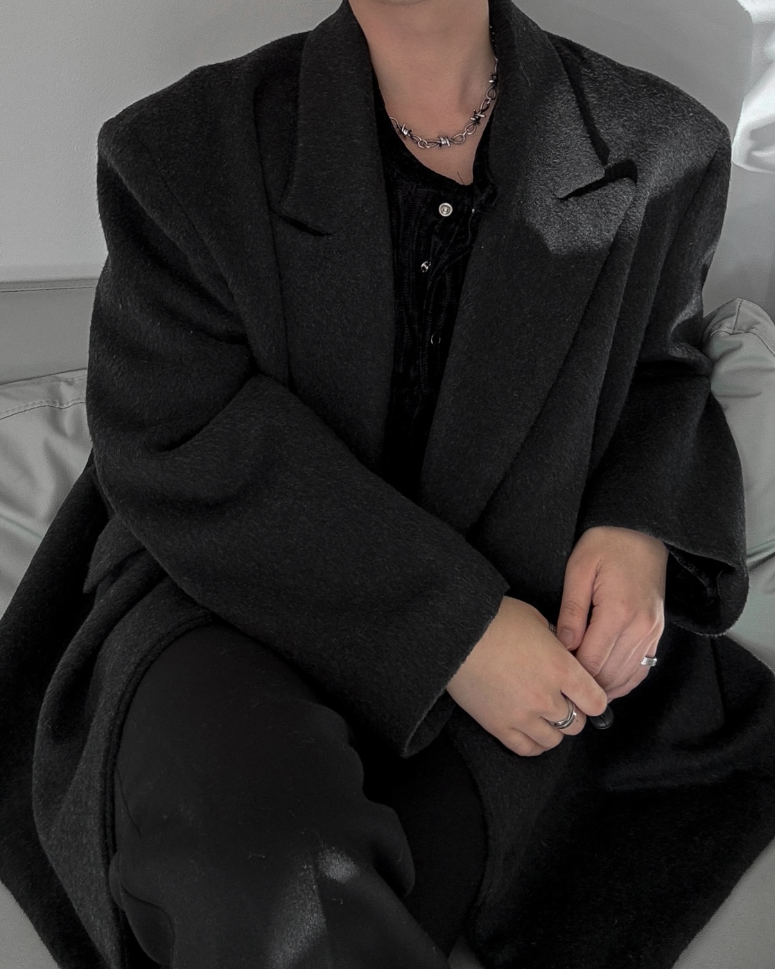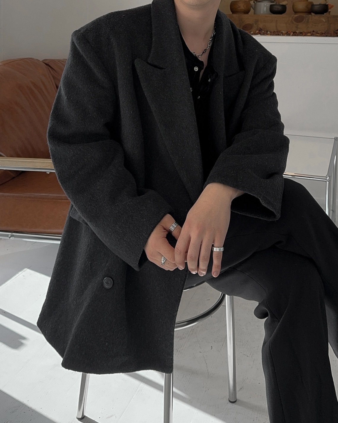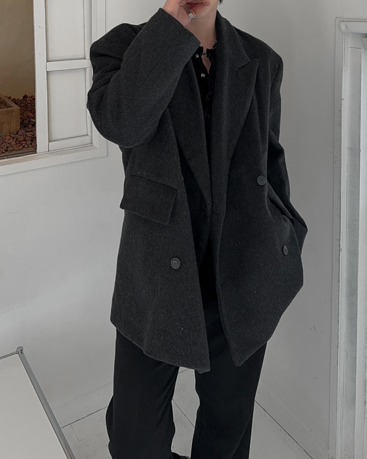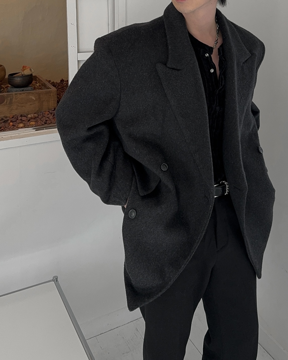 -어깨 패드로 체형보완 실루엣