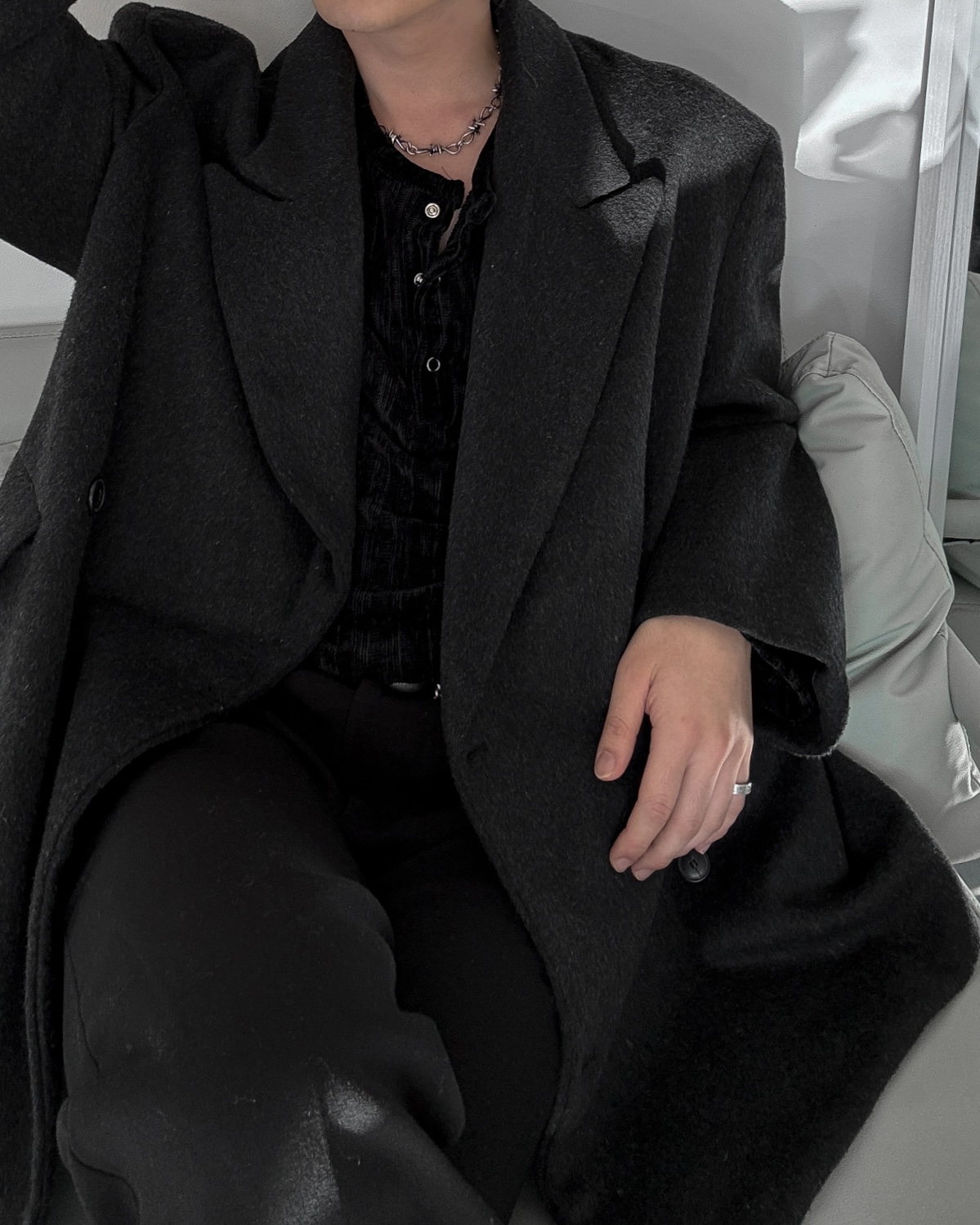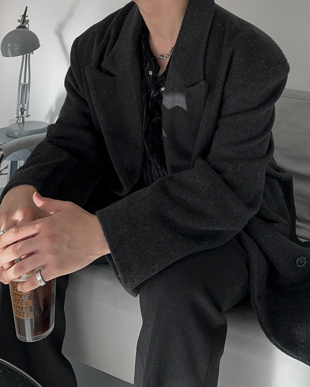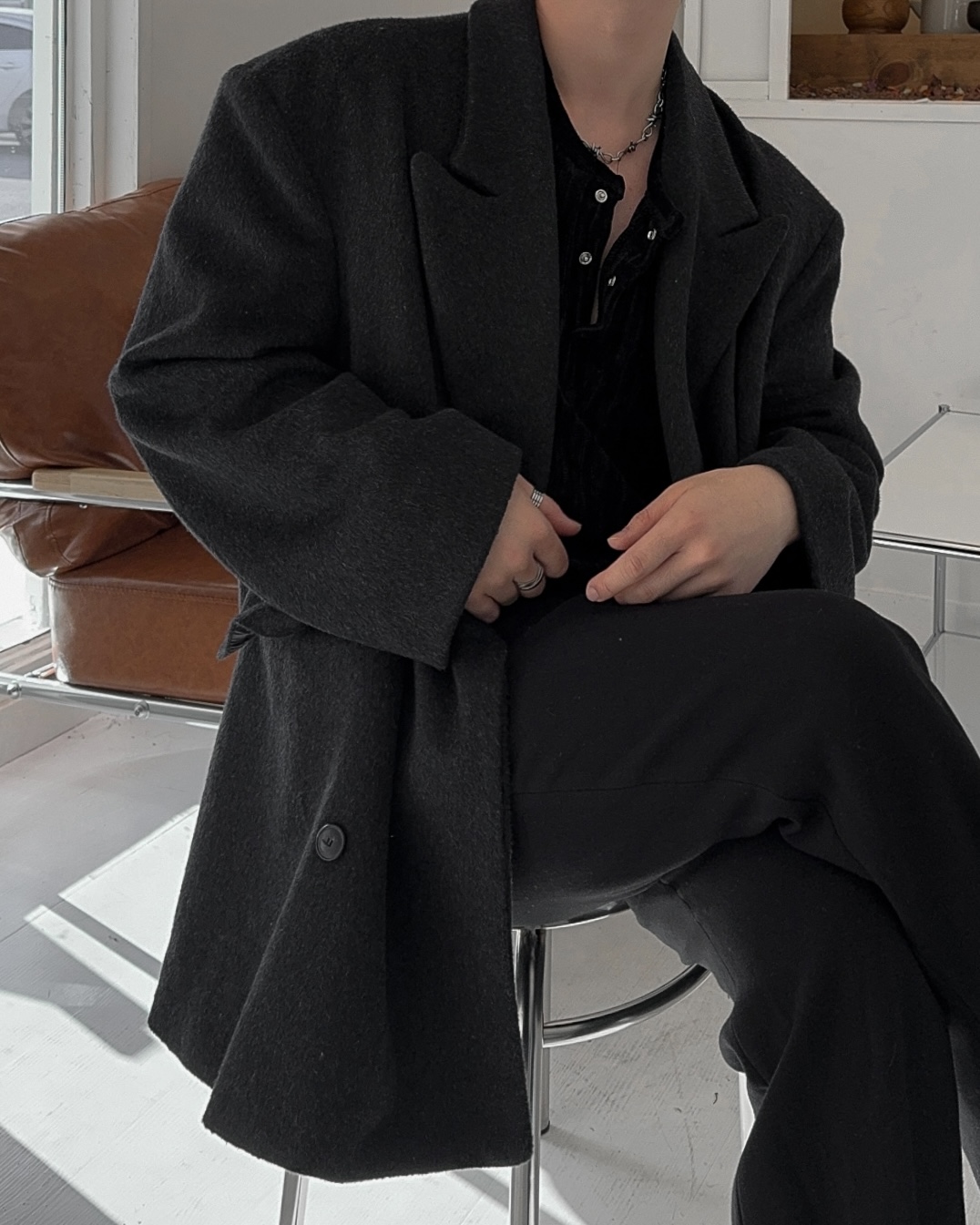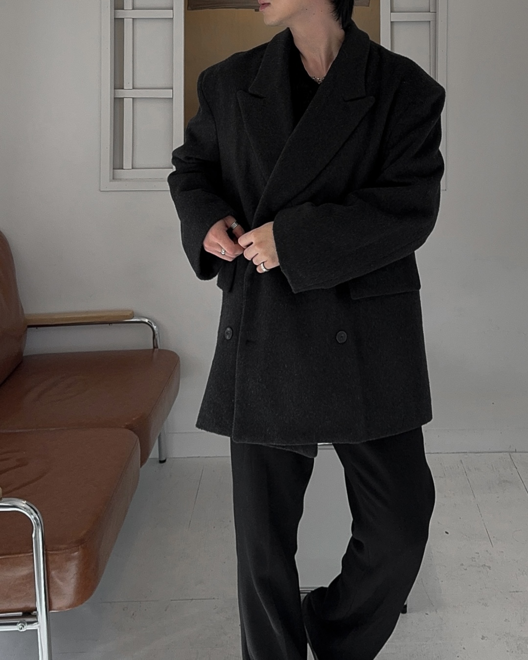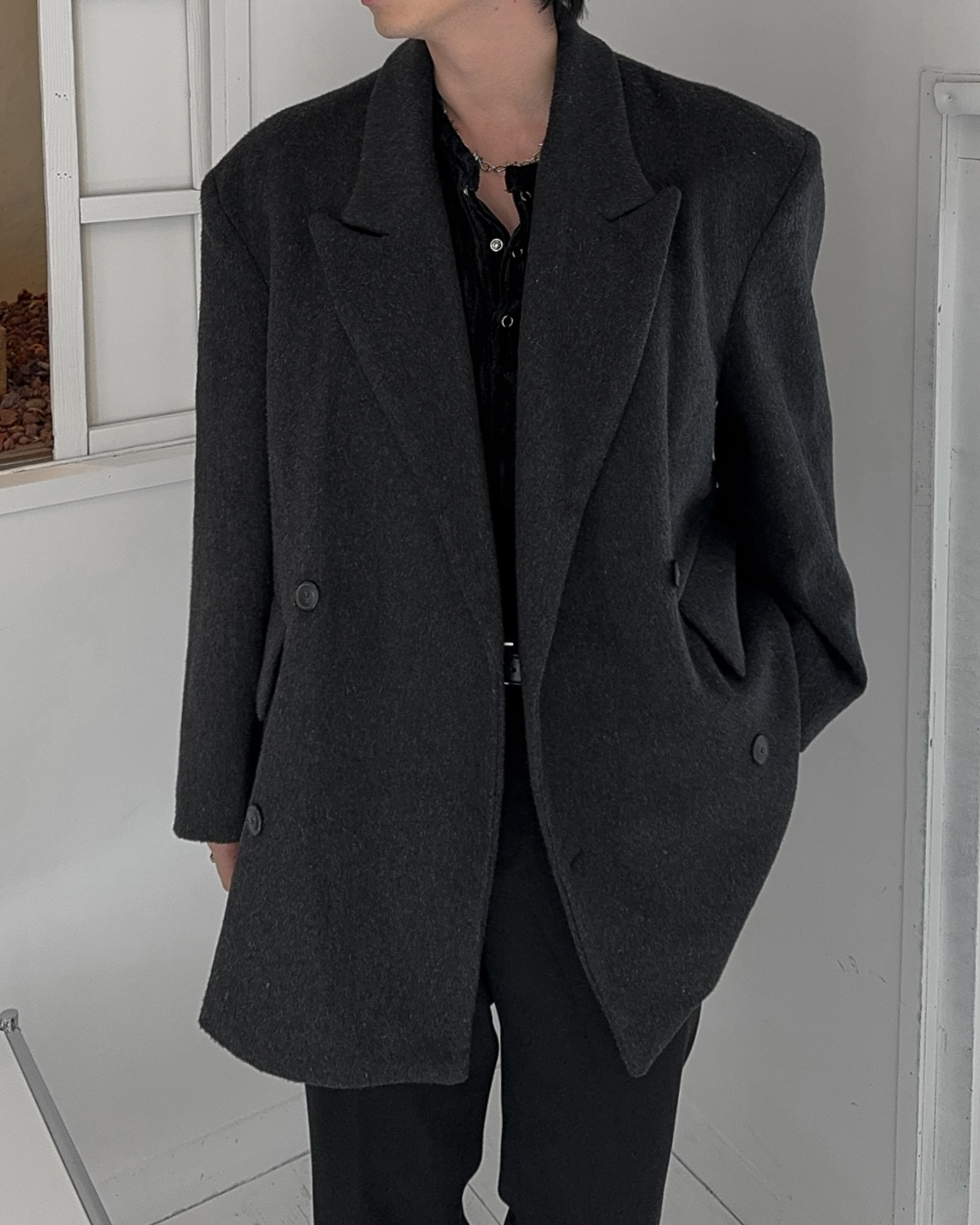 -두터운 두께로 겨울 시즌 스타일내기 좋은 하프 코트