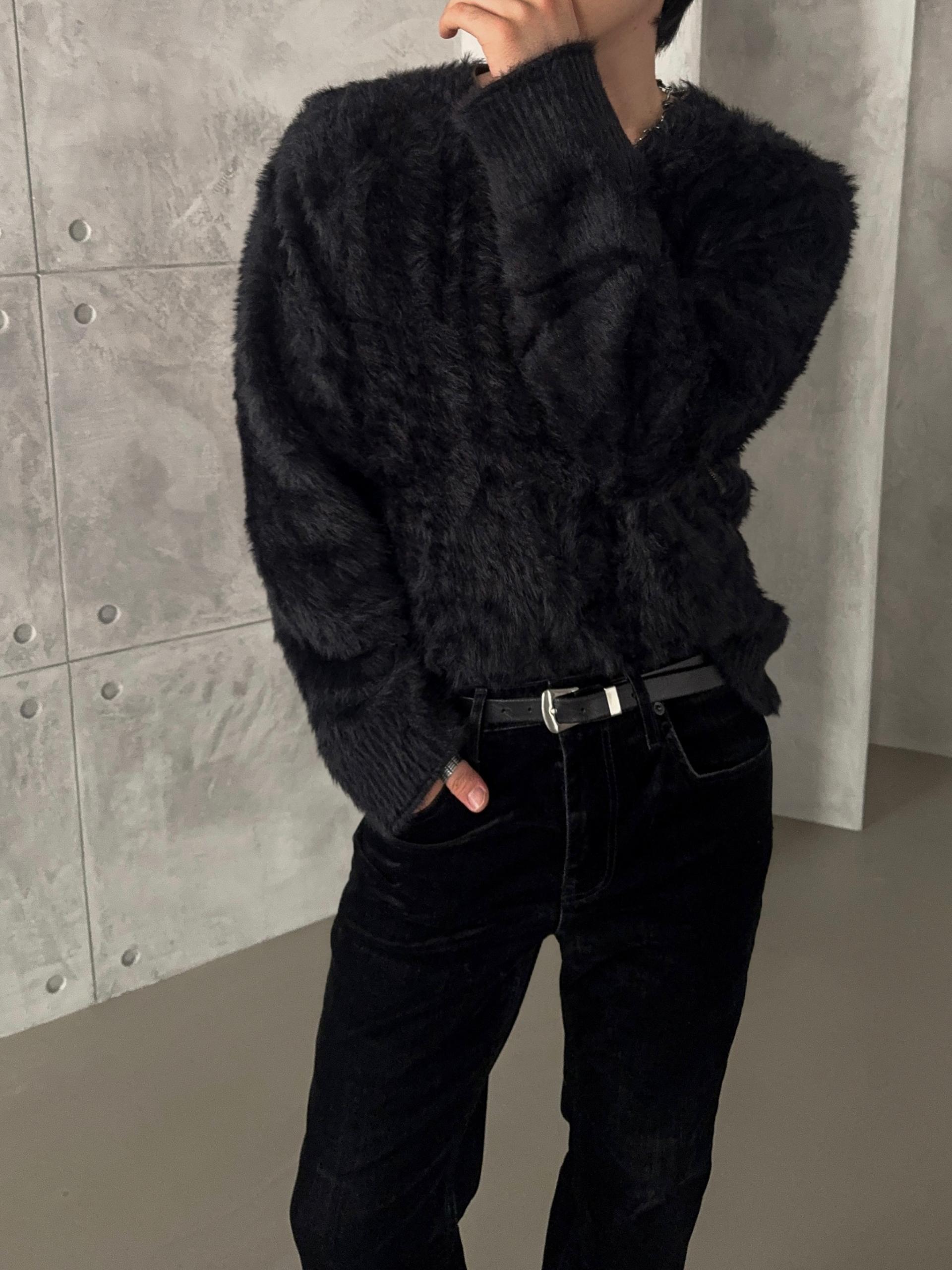 -헤어감이 살아있는 앙고라 소재로 제작된 니트