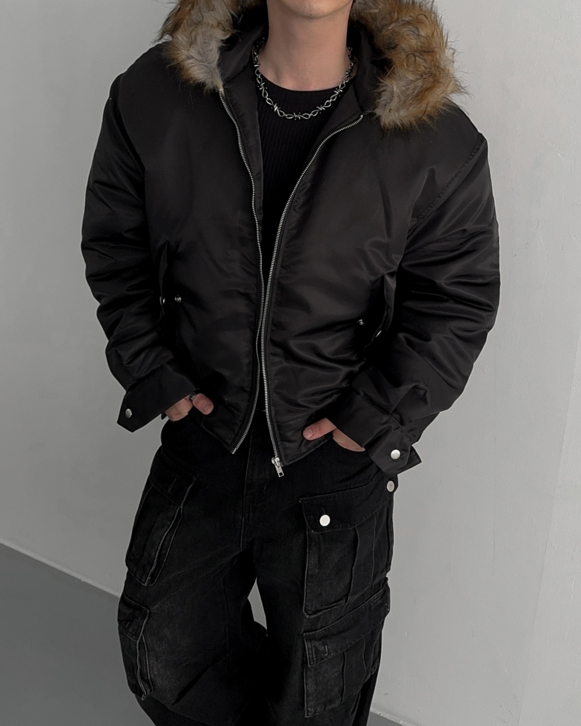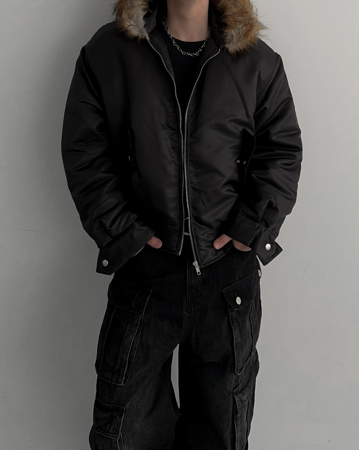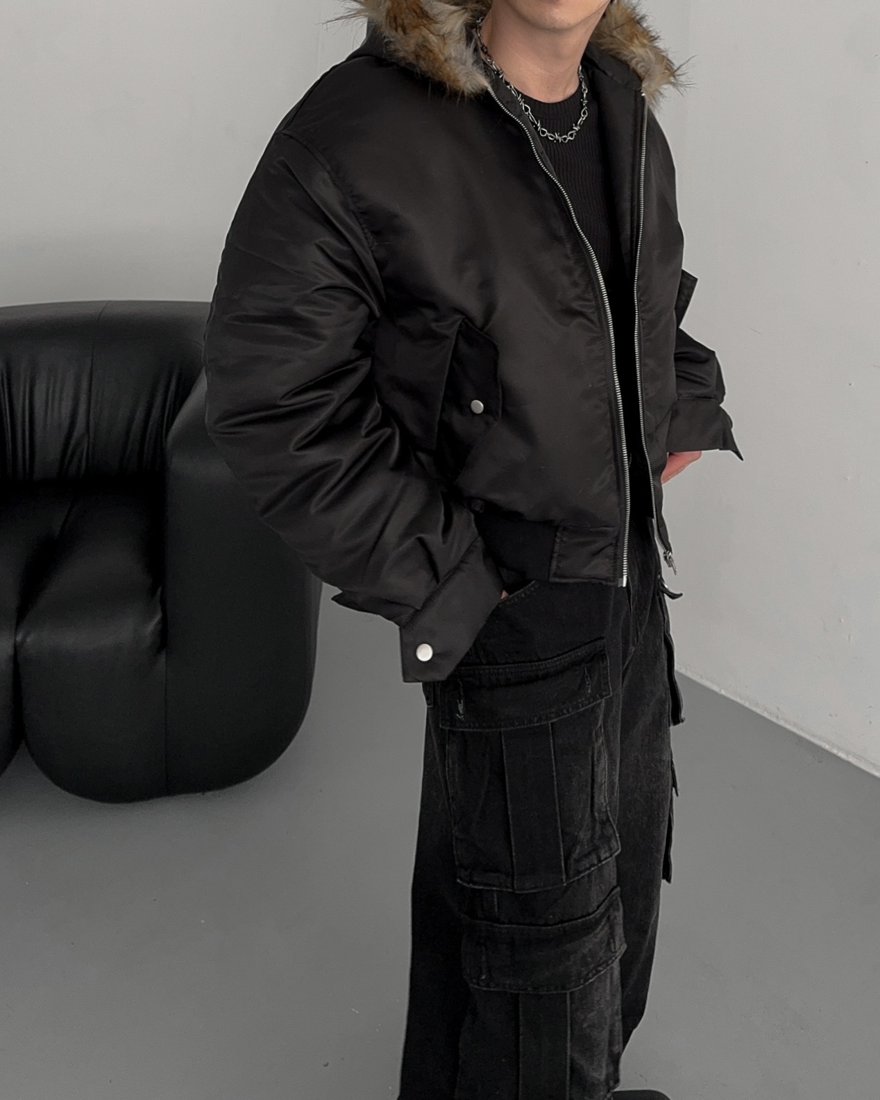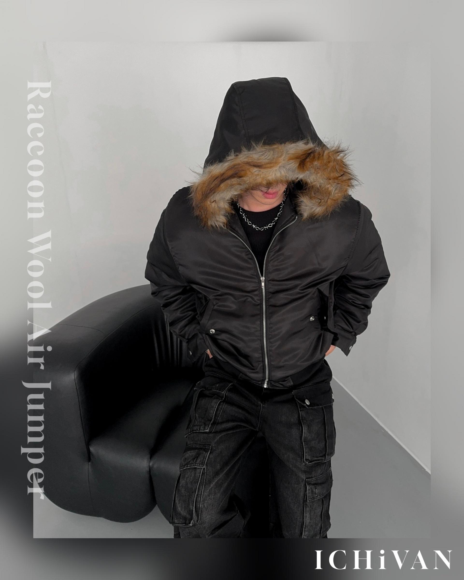 -프리미엄 라쿤 퍼 후드가 부착된 항공 점퍼