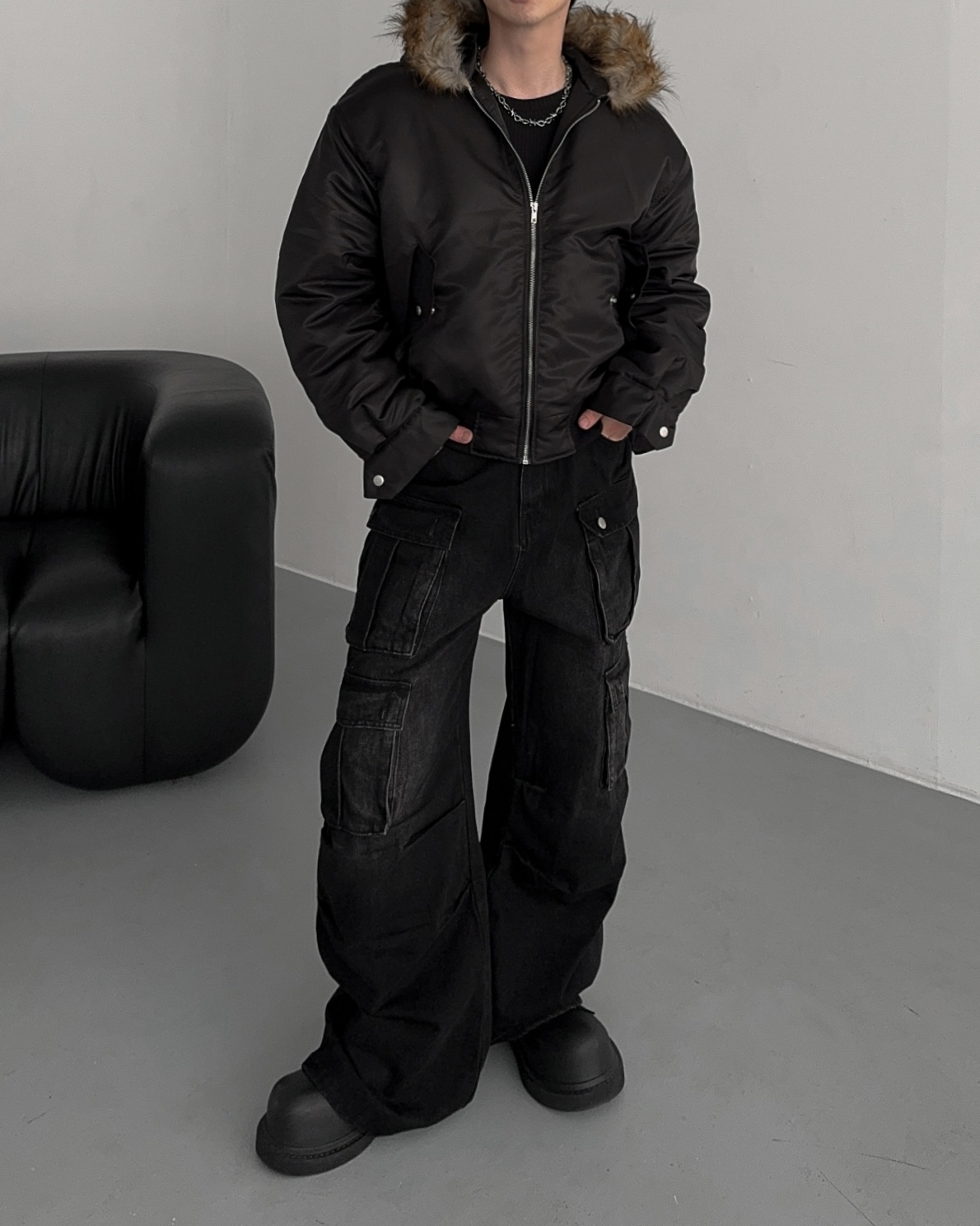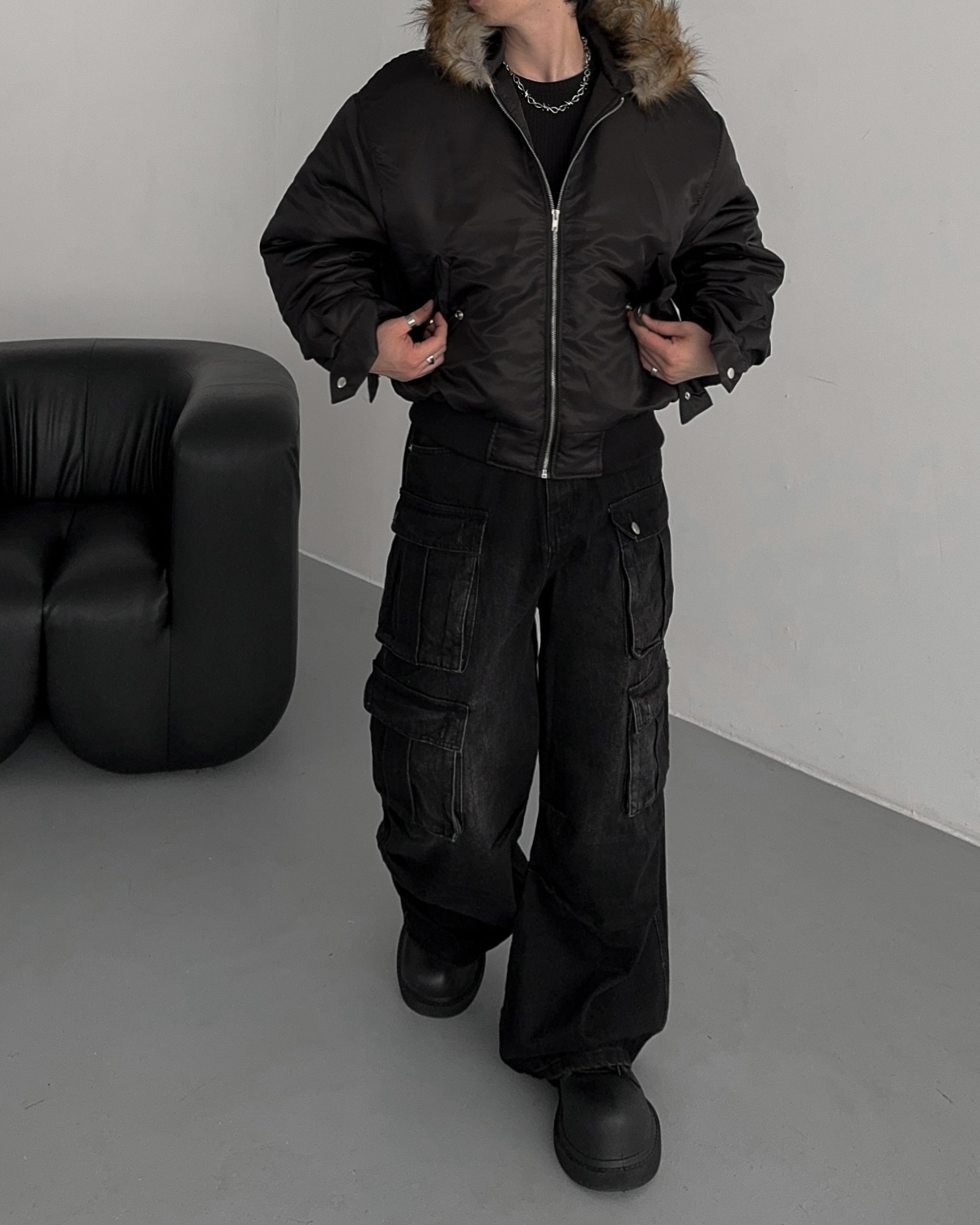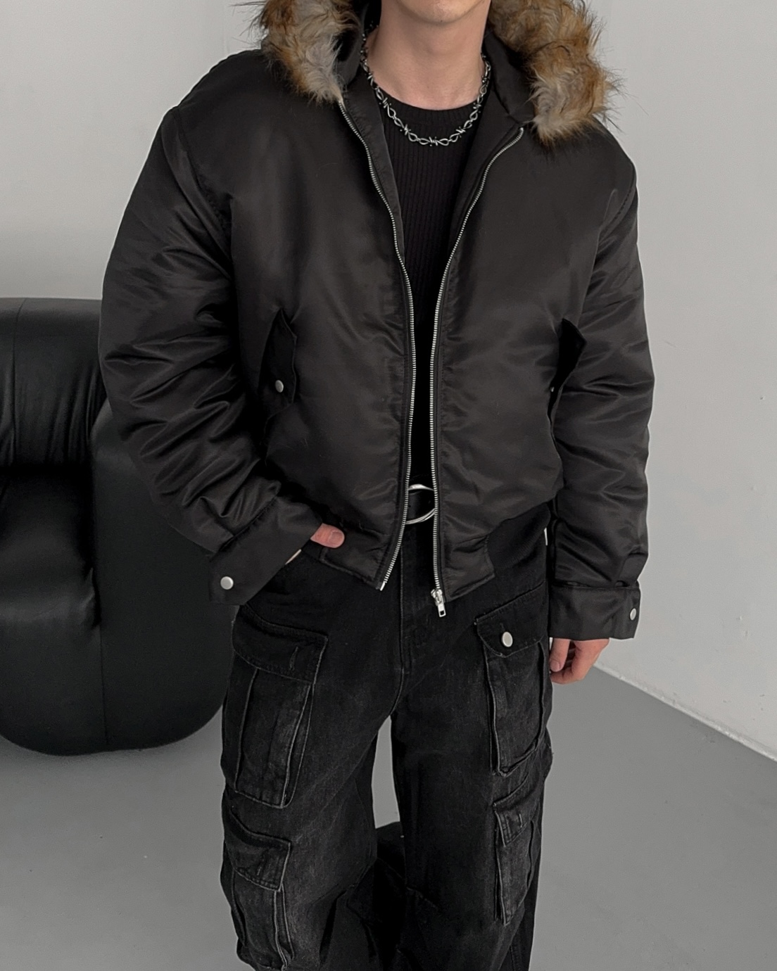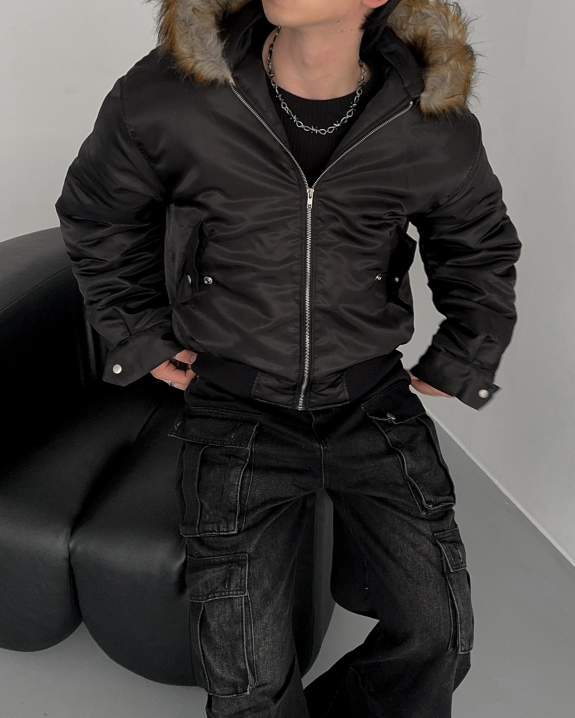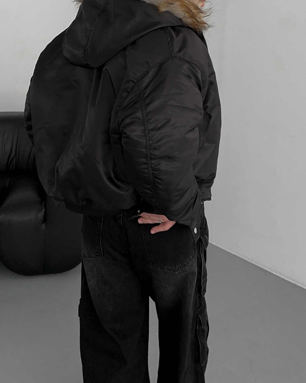 -프리미엄 라쿤 퍼 후드가 부착된 항공 점퍼