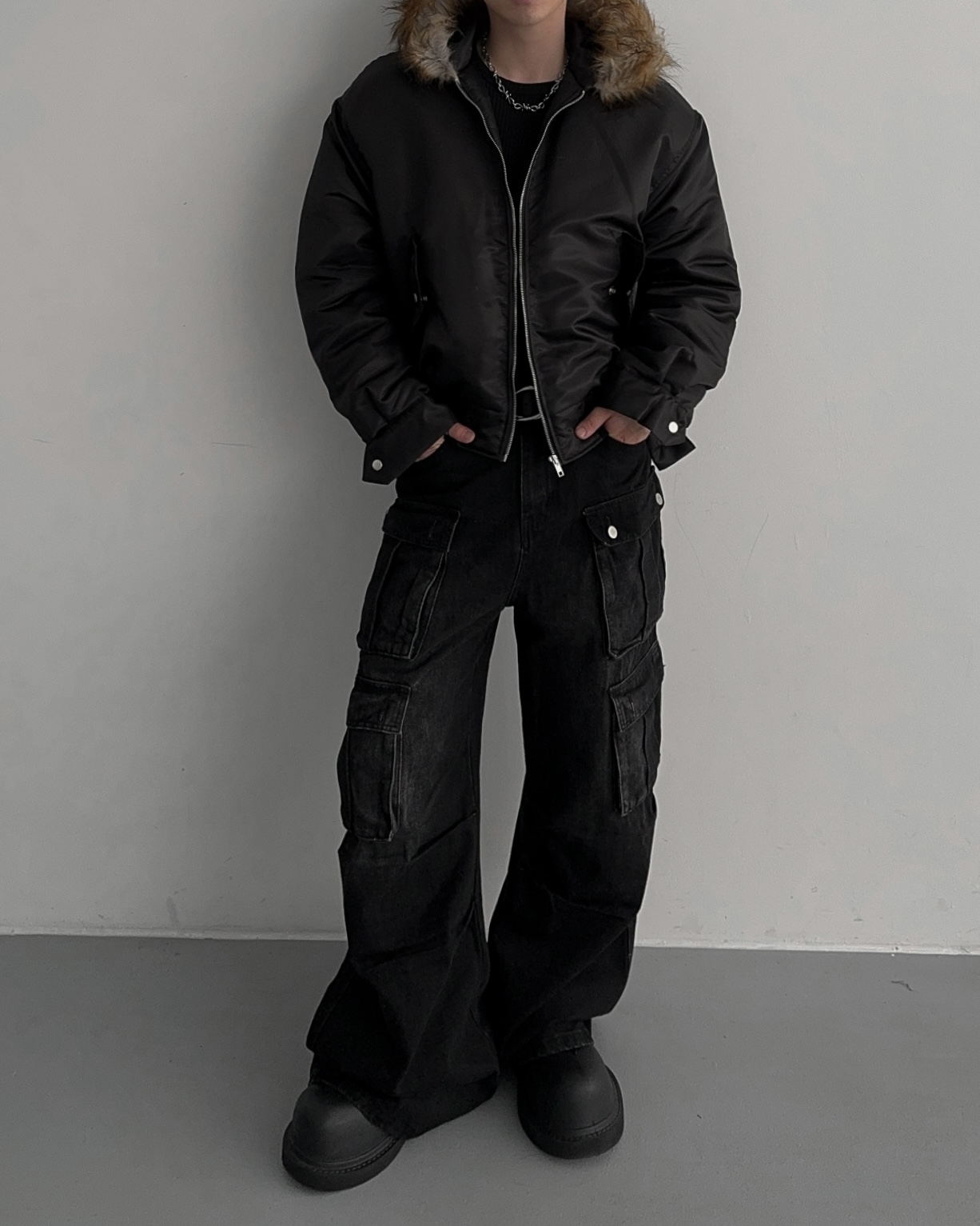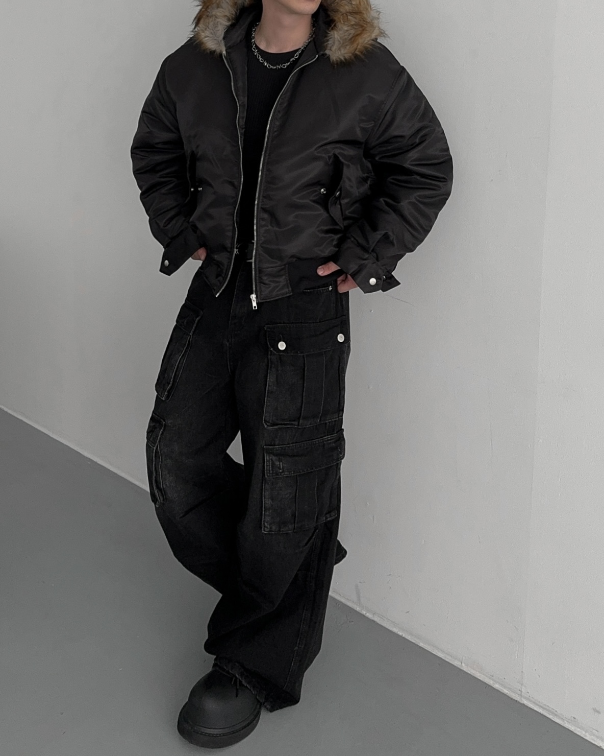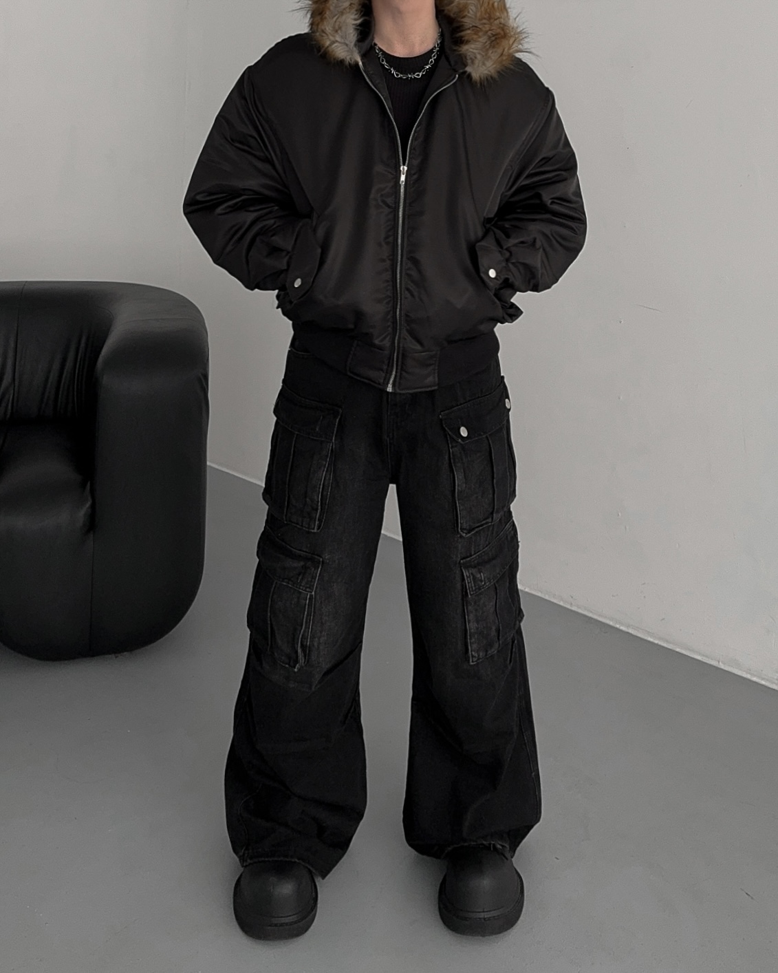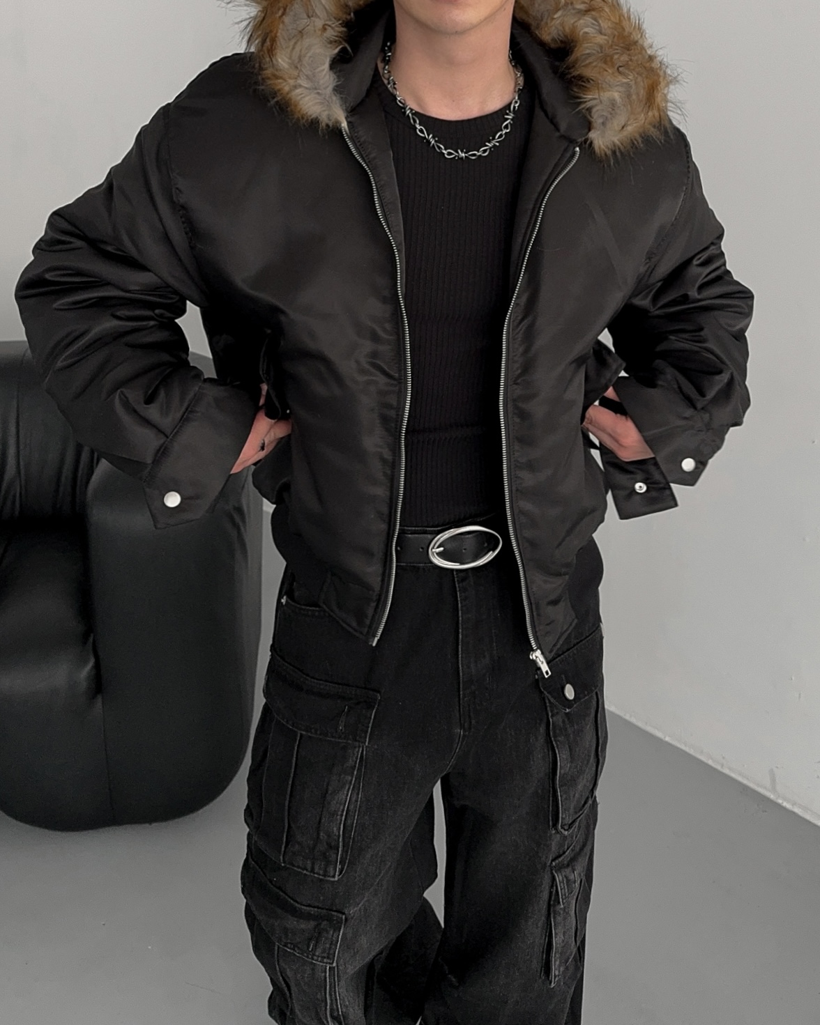 -프리미엄 라쿤 퍼 후드가 부착된 항공 점퍼