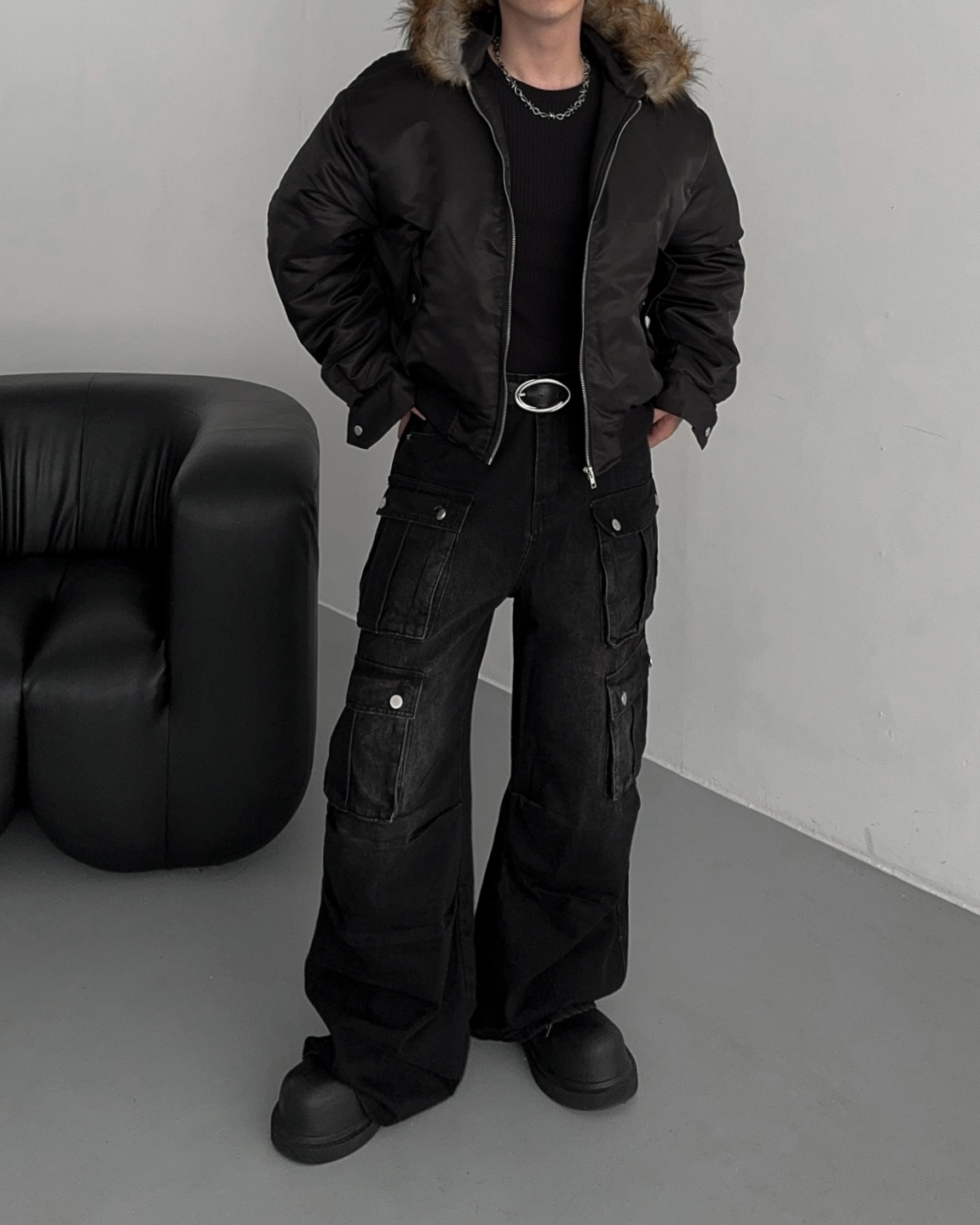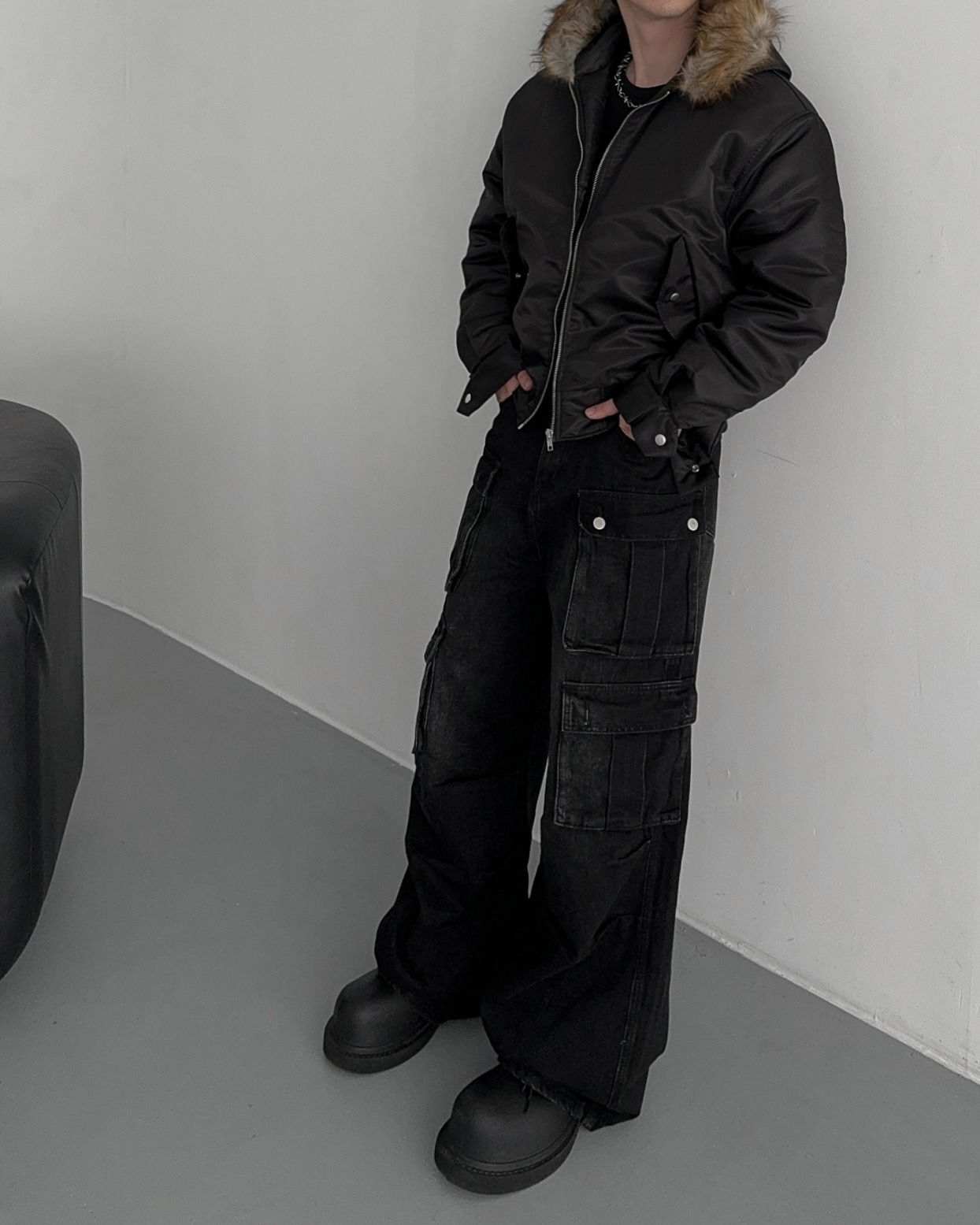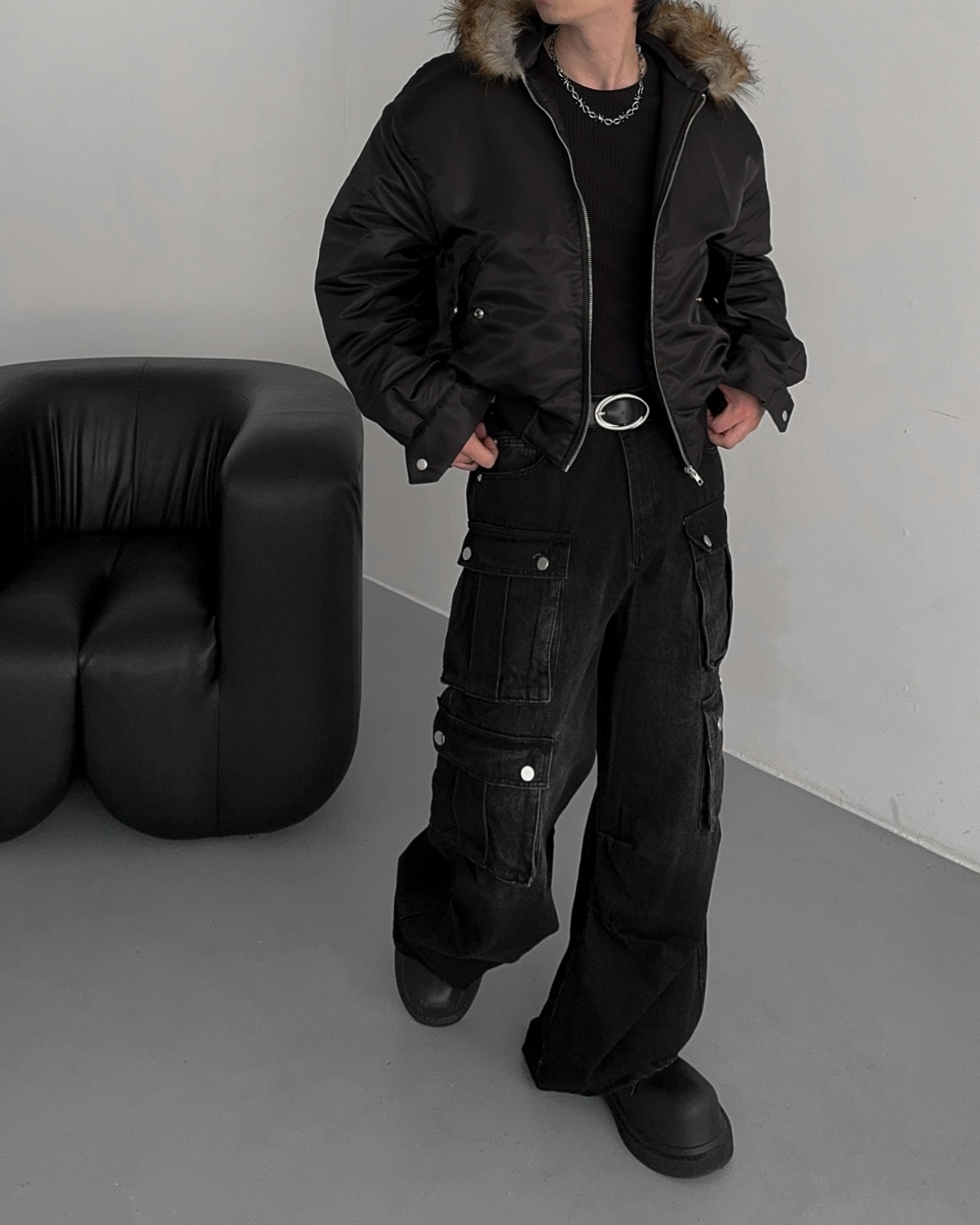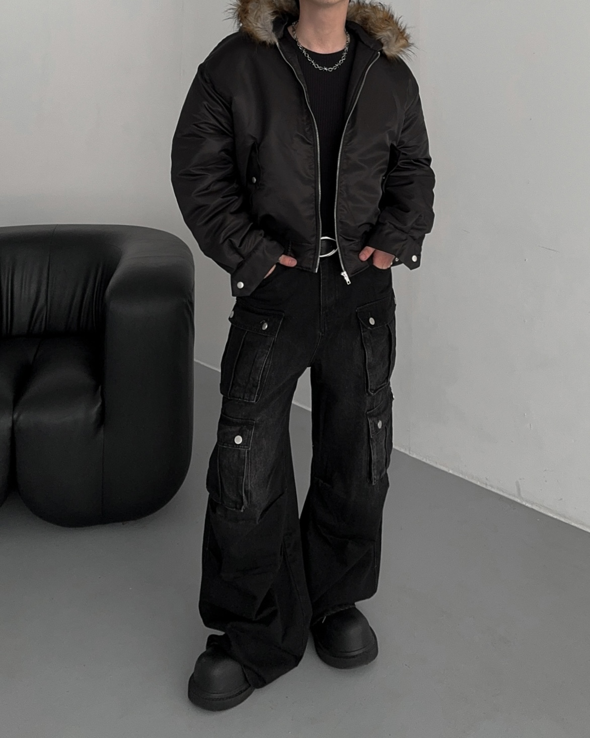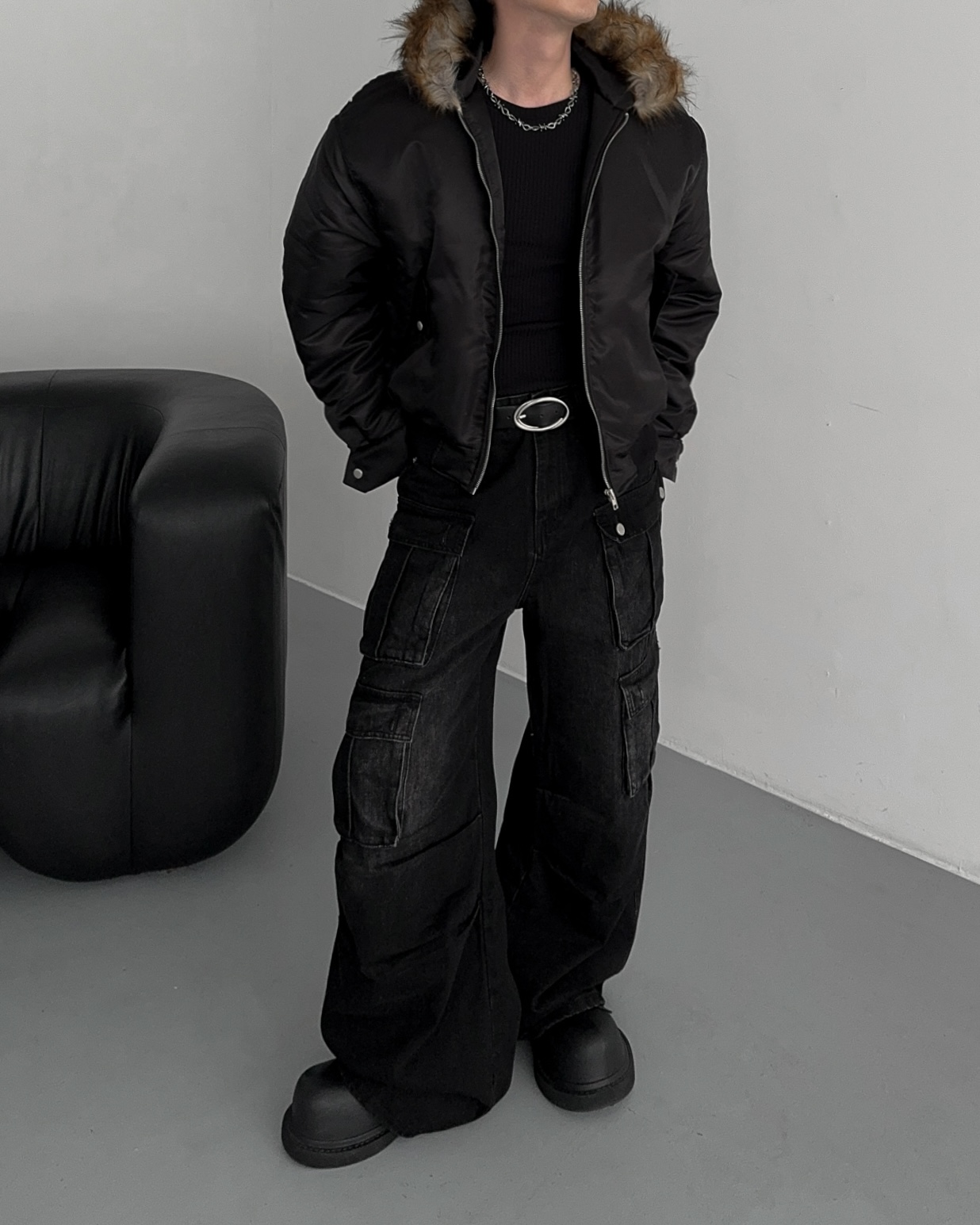 -프리미엄 라쿤 퍼 후드가 부착된 항공 점퍼