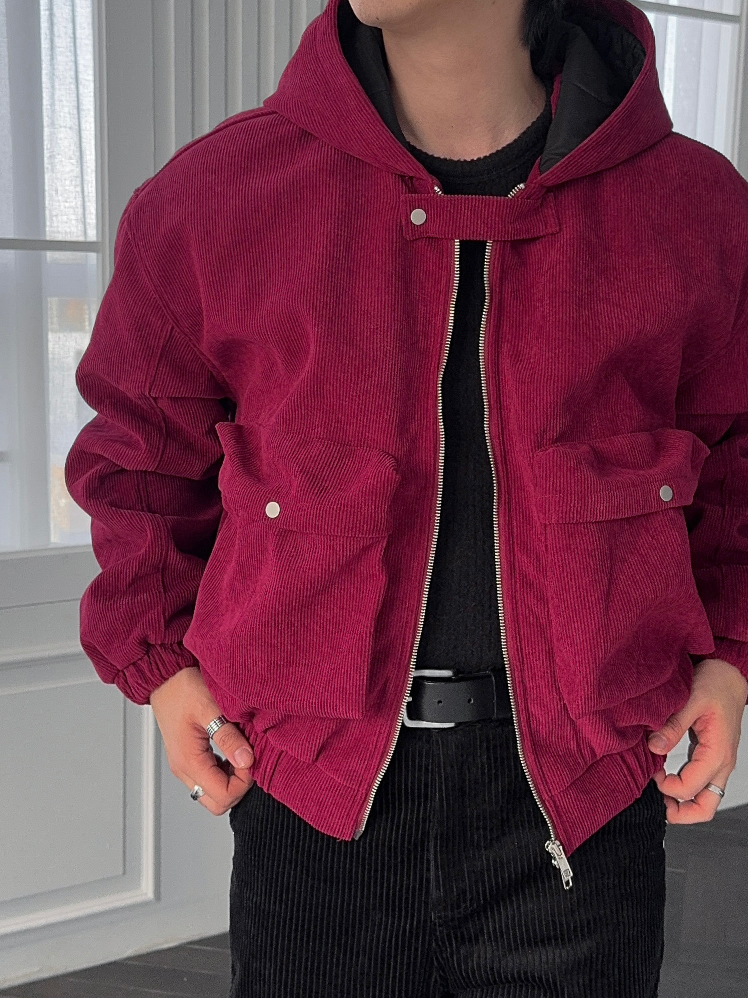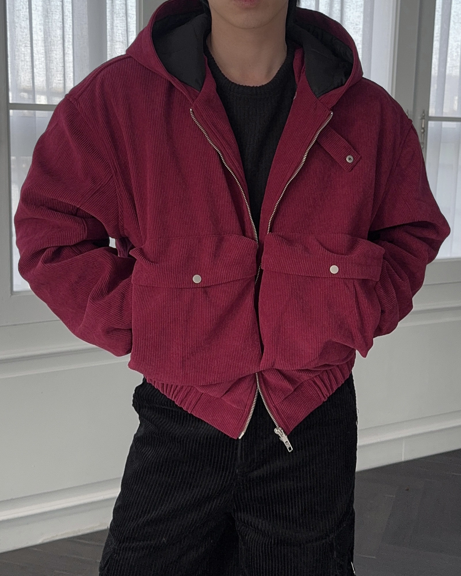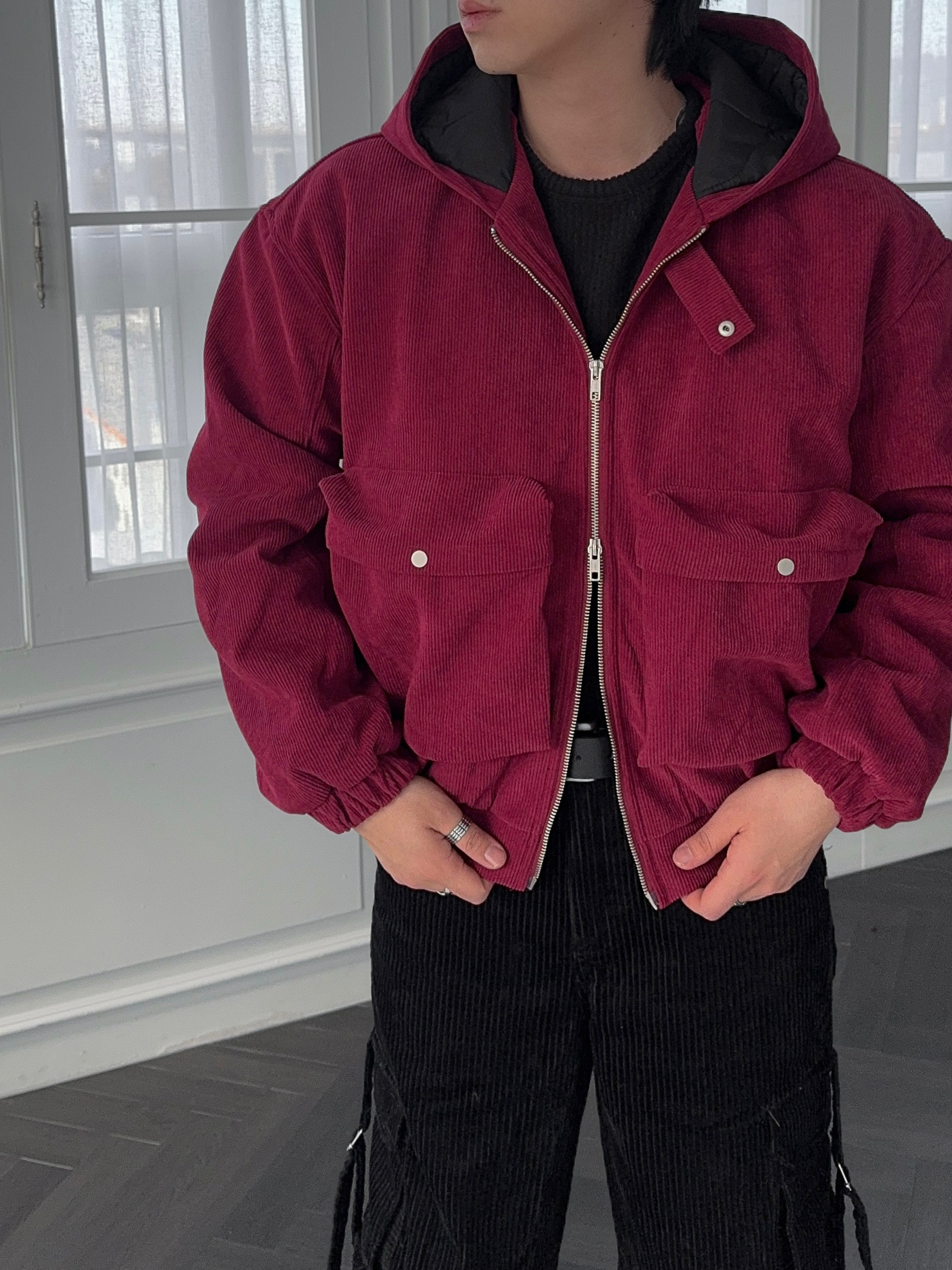 -데일리로 따뜻하게 착용하기 좋은 코듀로이 패딩 자켓