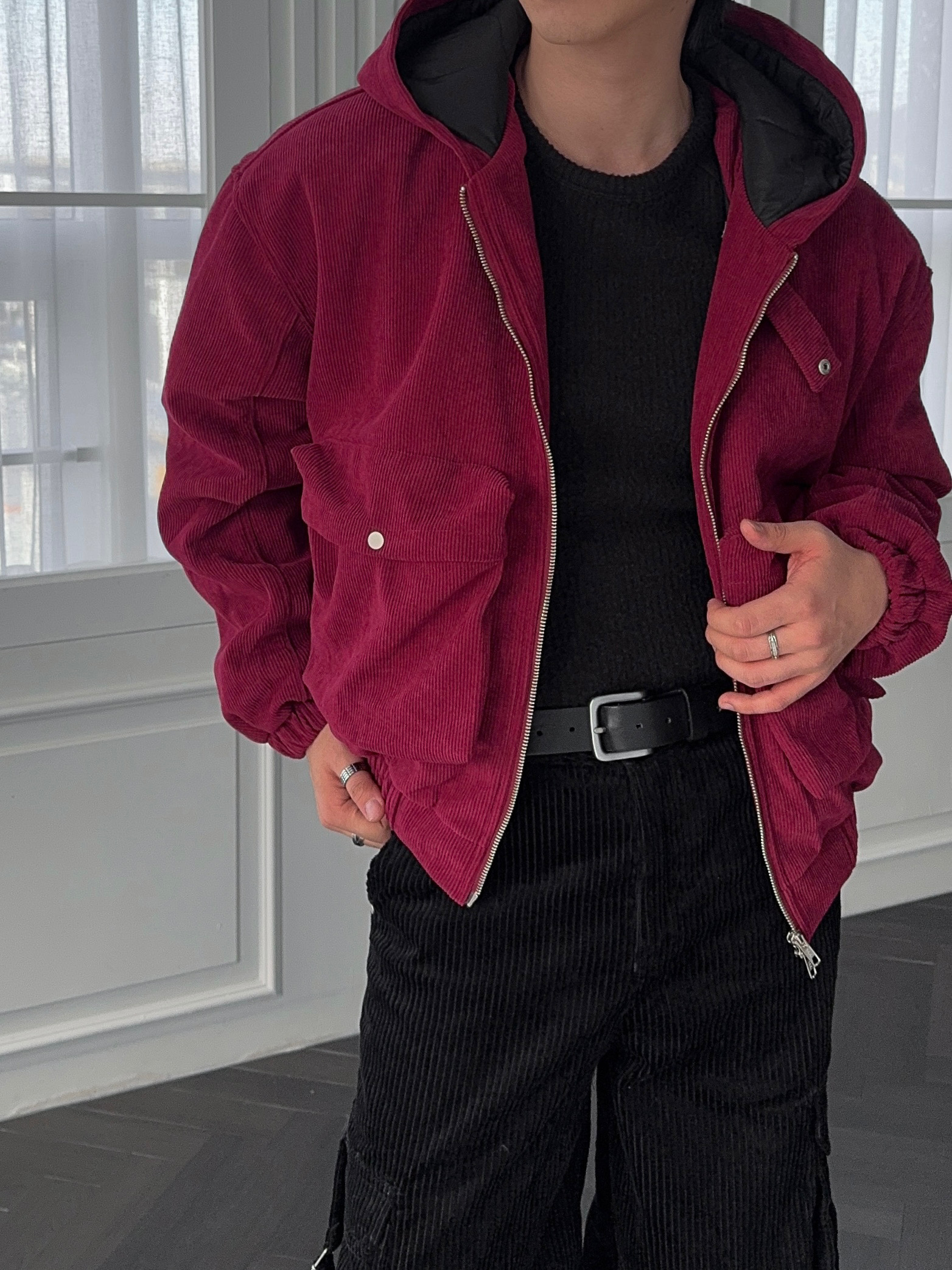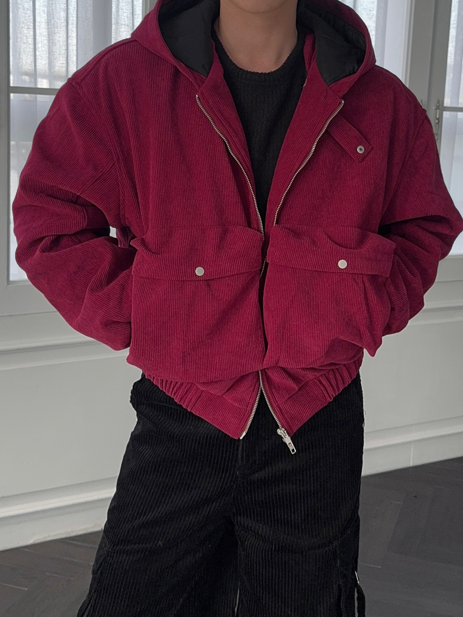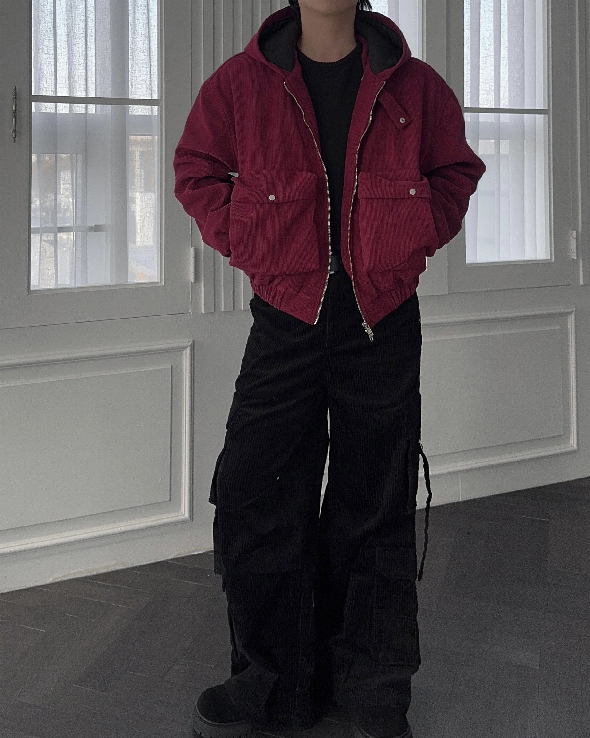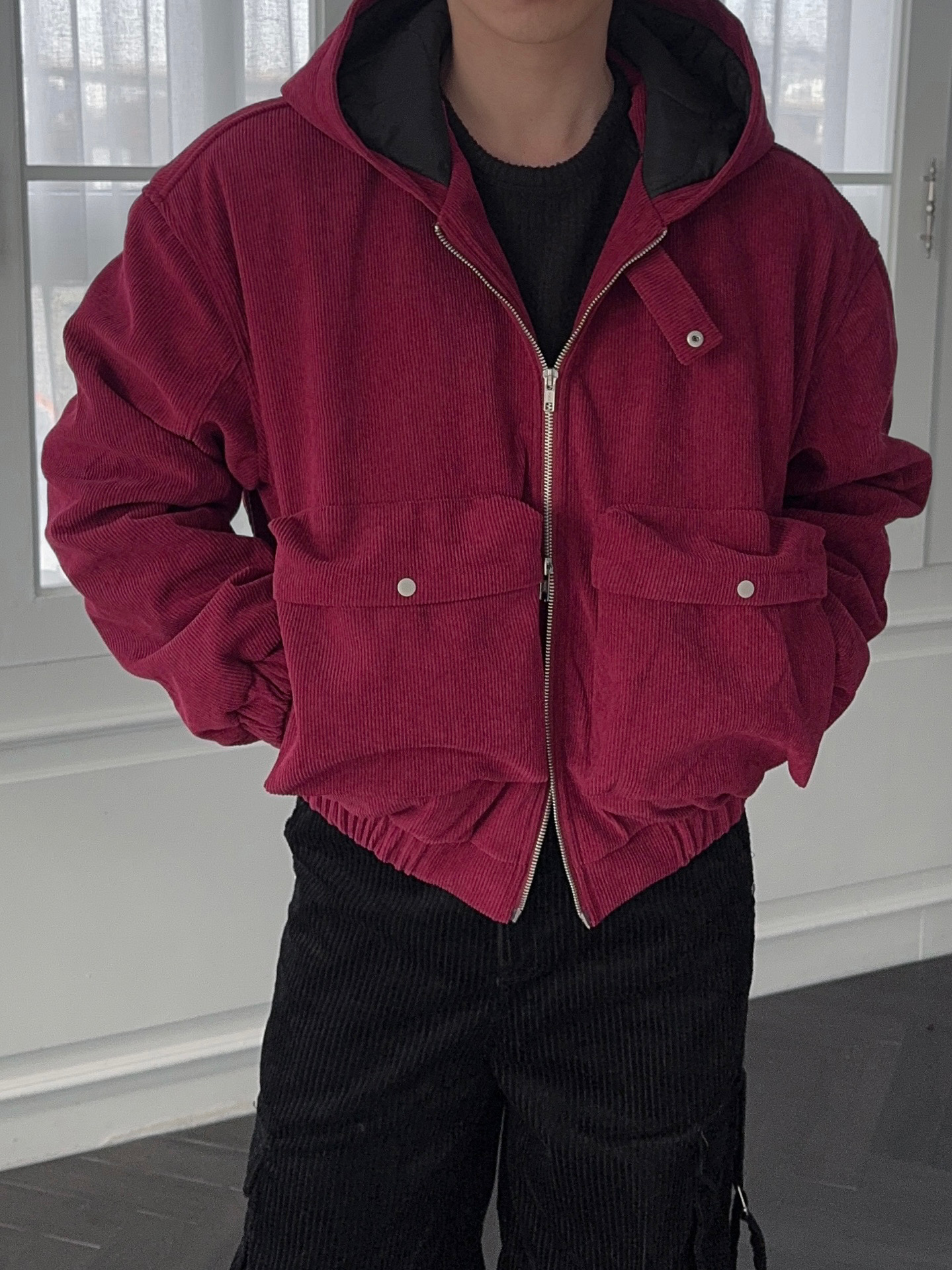 -데일리로 따뜻하게 착용하기 좋은 코듀로이 패딩 자켓