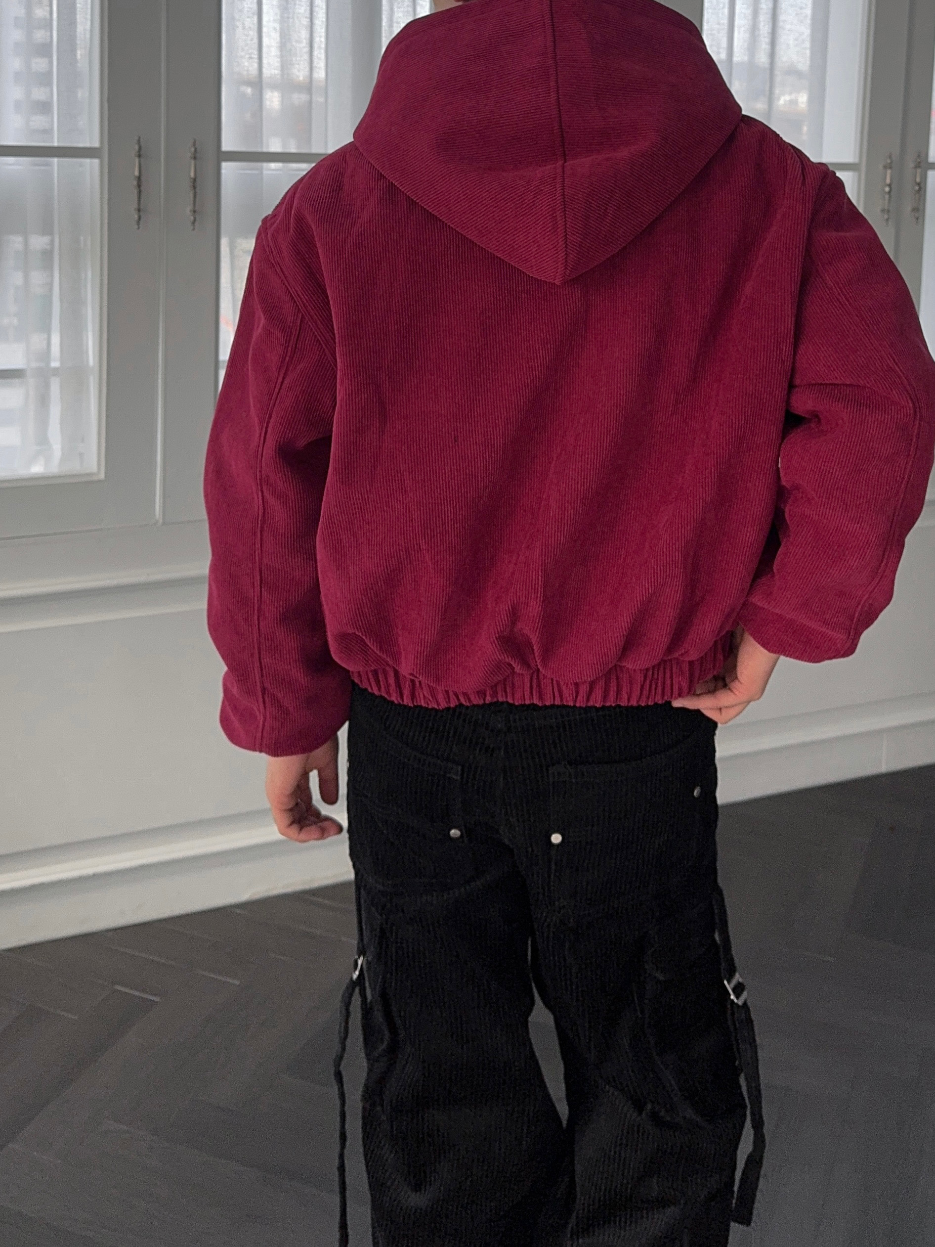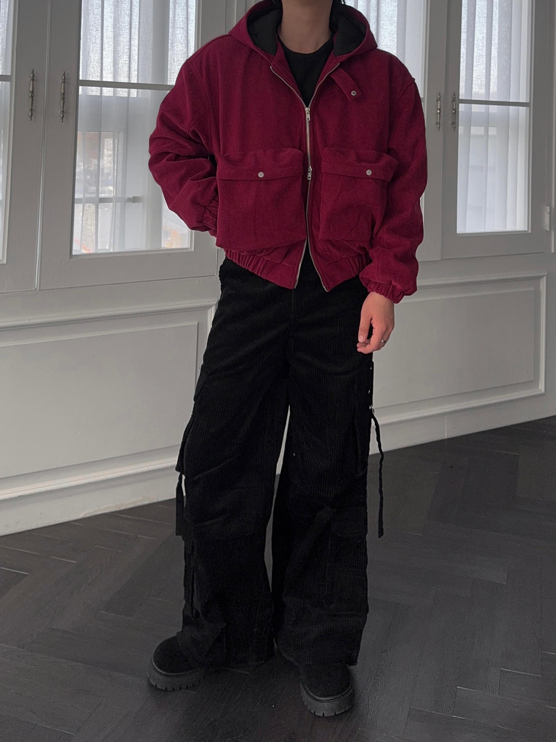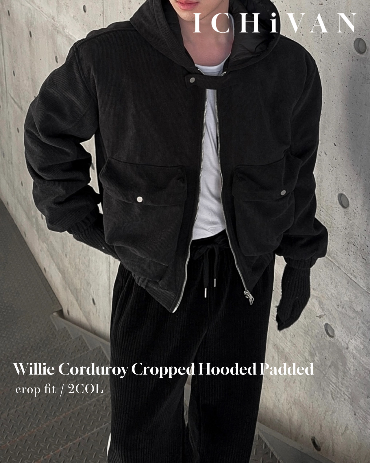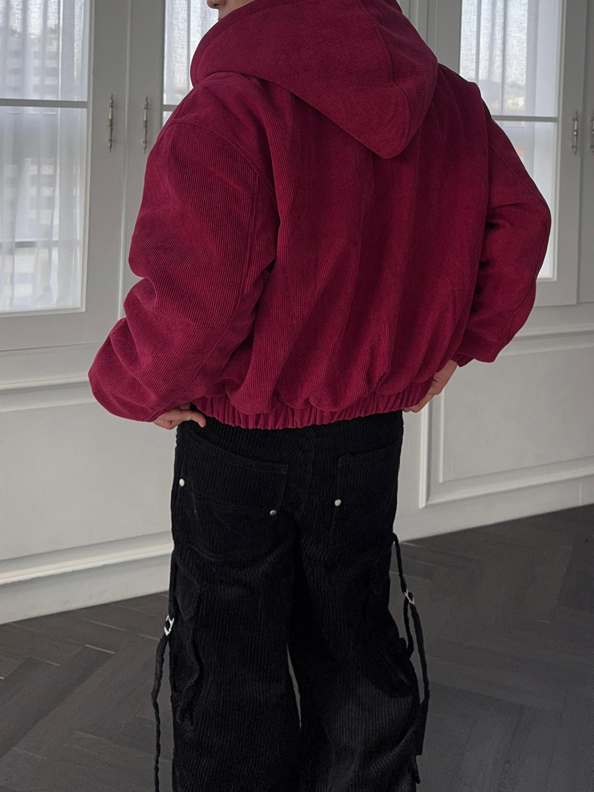 -탄탄한 코듀로이 소재로 제작된 크롭 패딩
