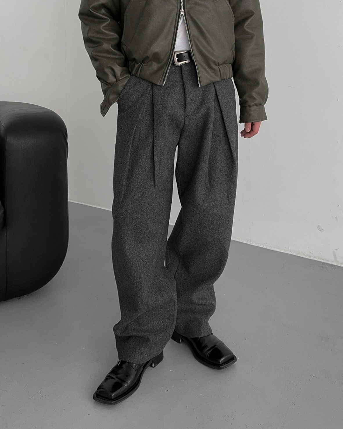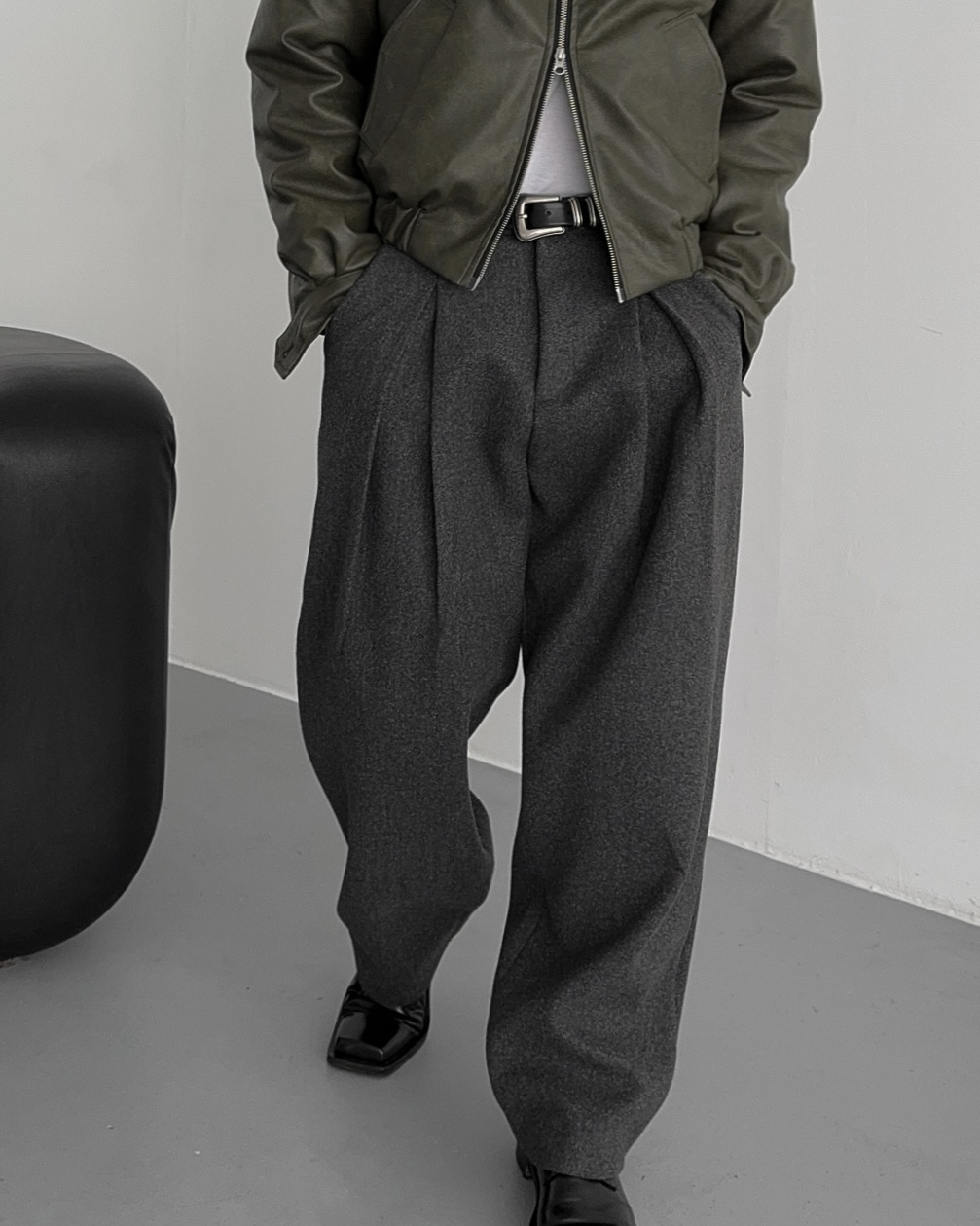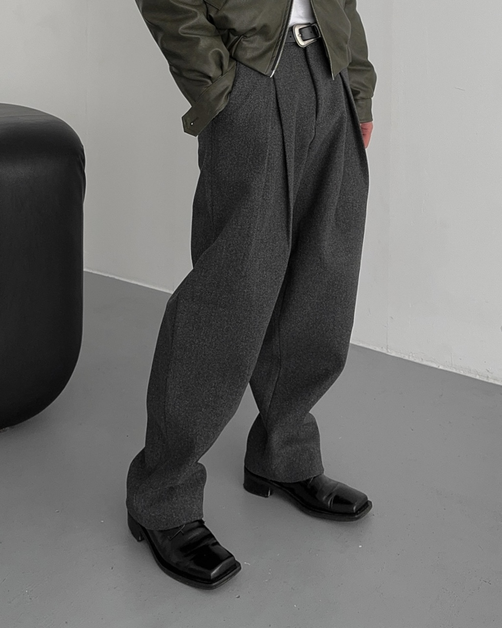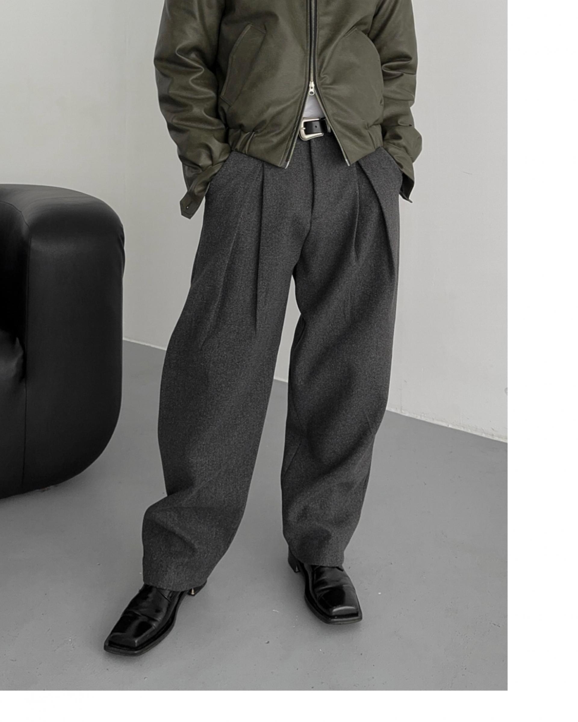 -두터운 울 함유 소재의 슬랙스