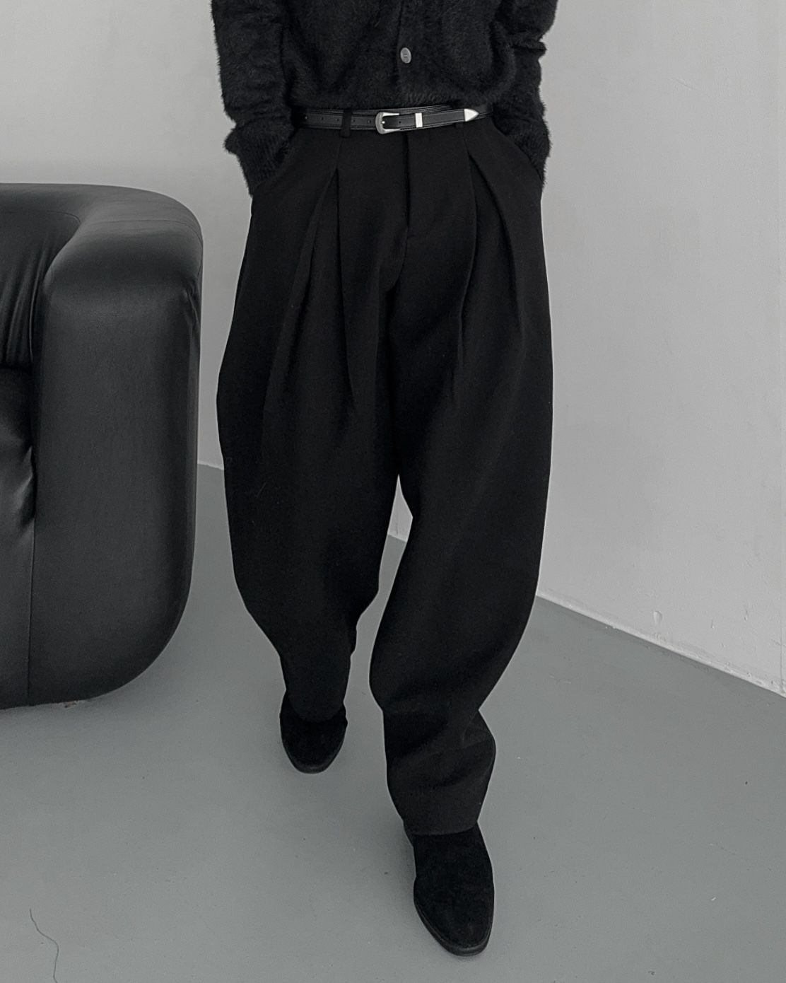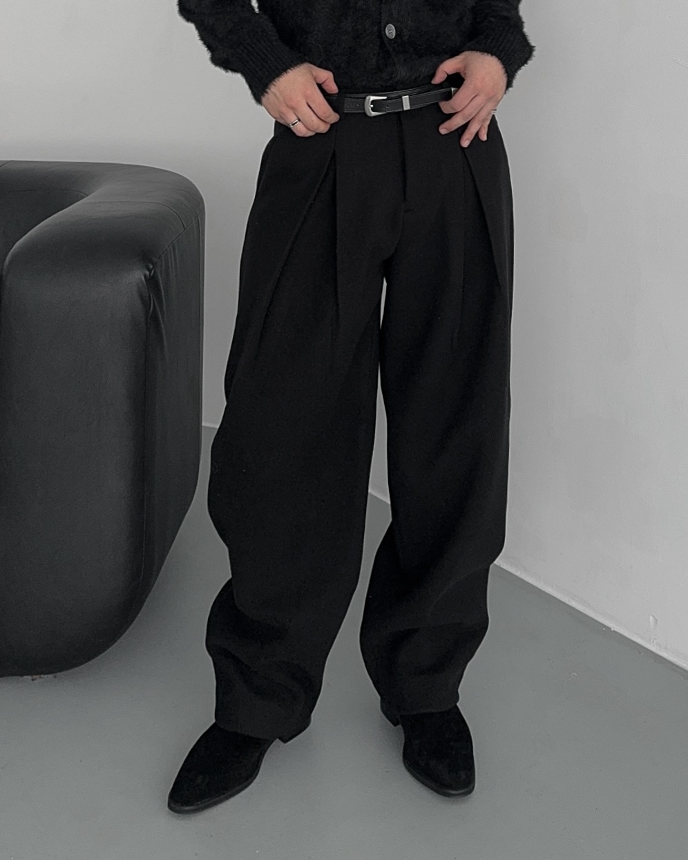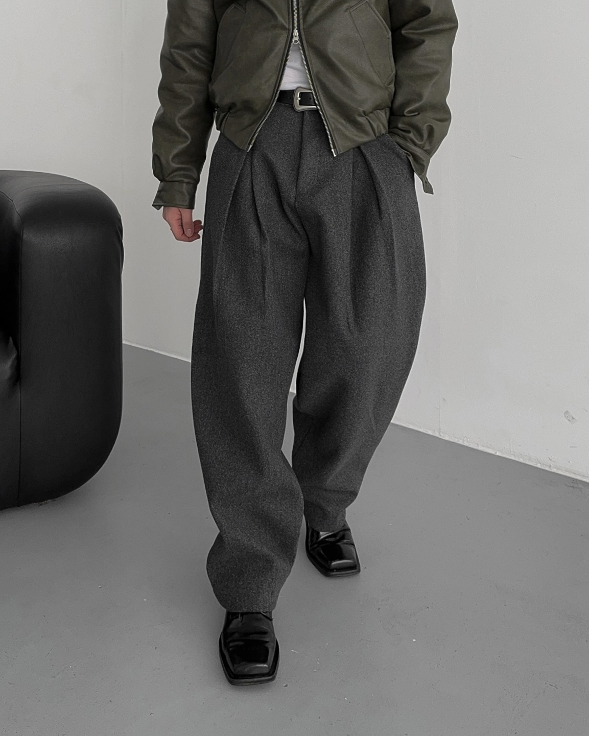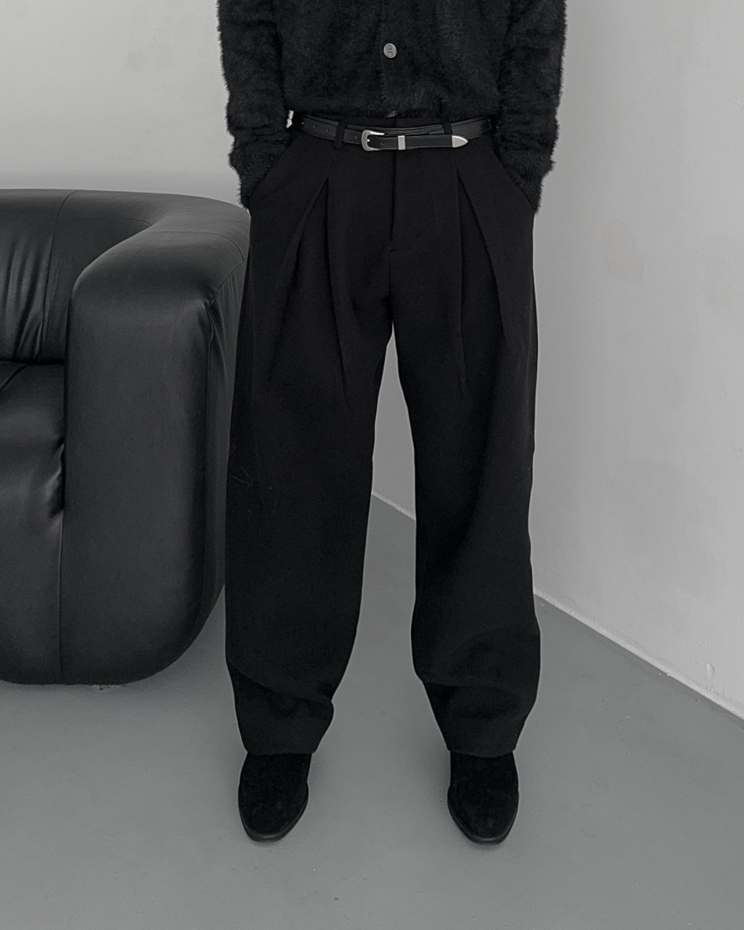 -두터운 울 함유 소재의 슬랙스