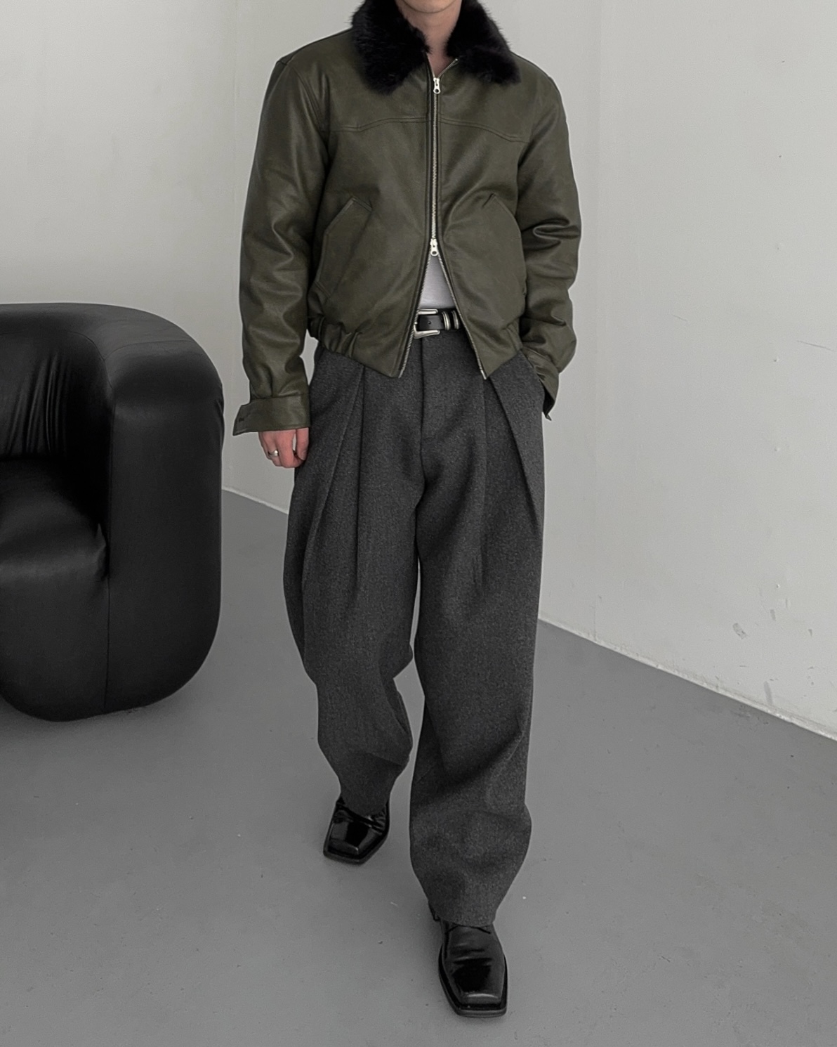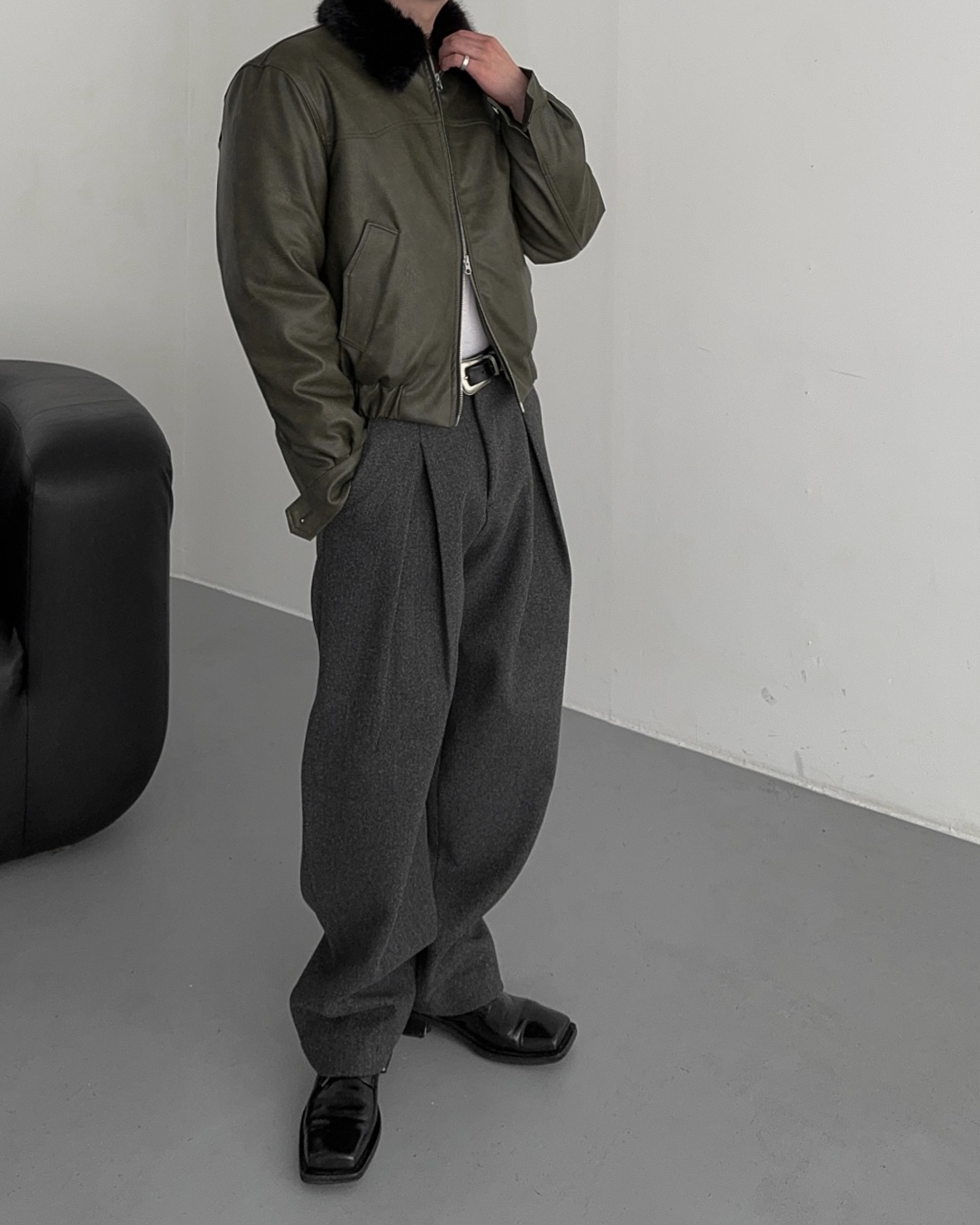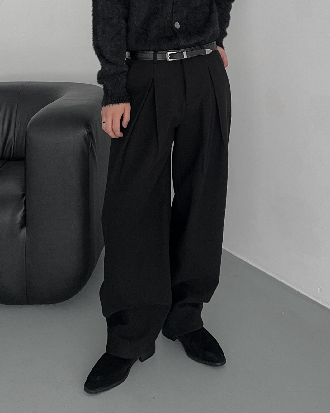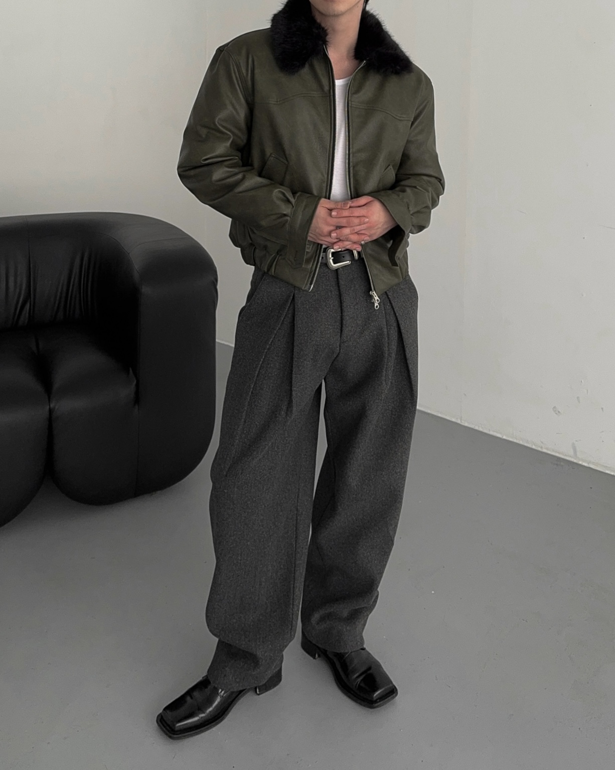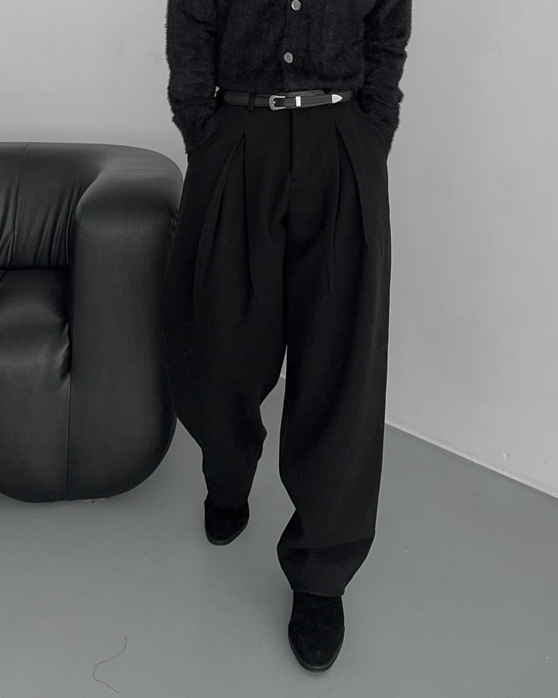 -두터운 울 함유 소재의 슬랙스