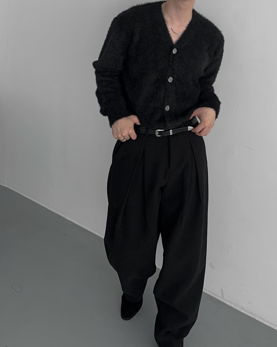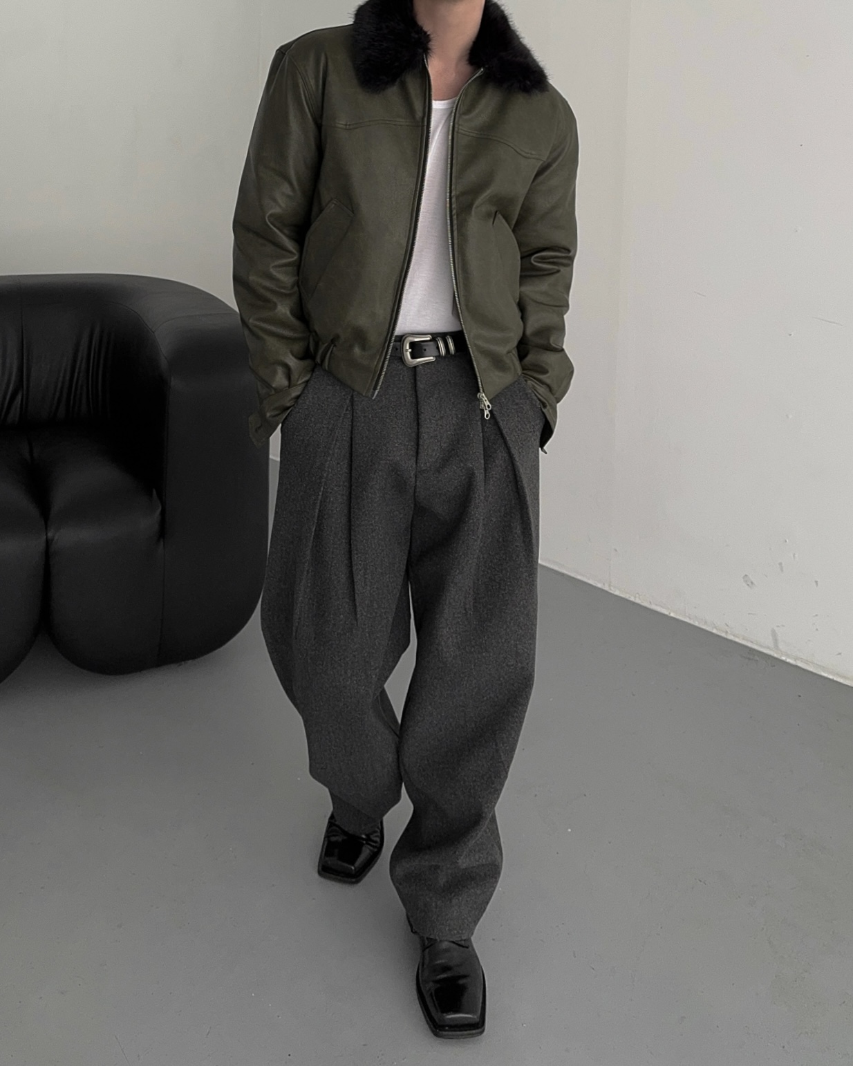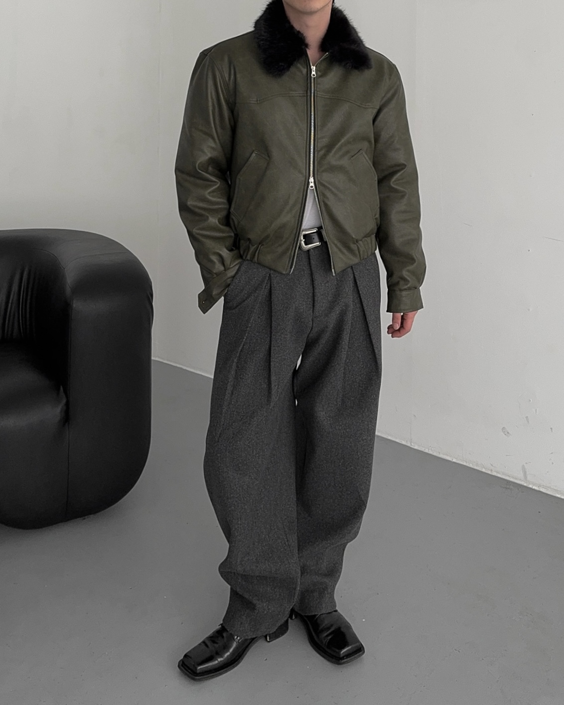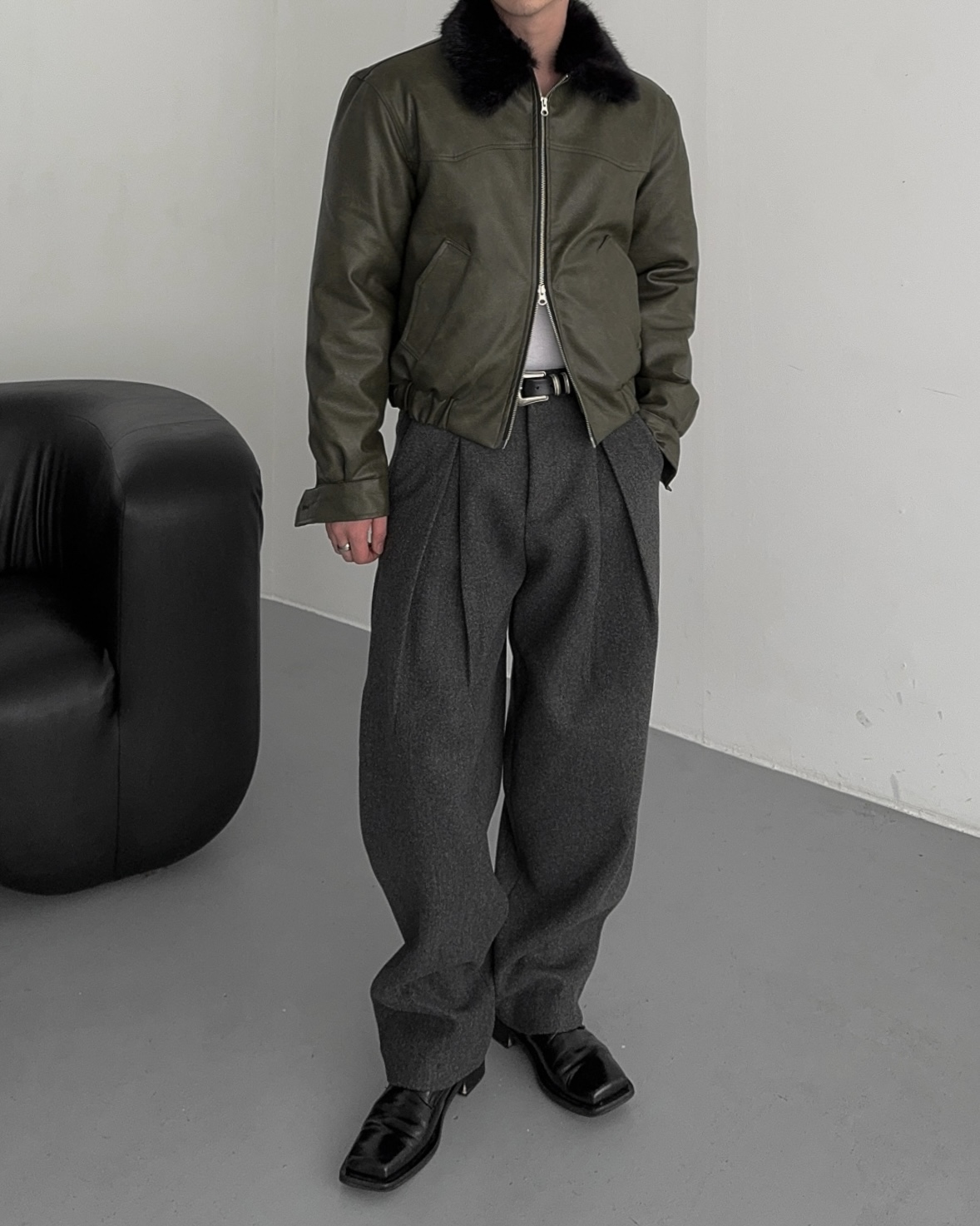 -두터운 울 함유 소재의 슬랙스