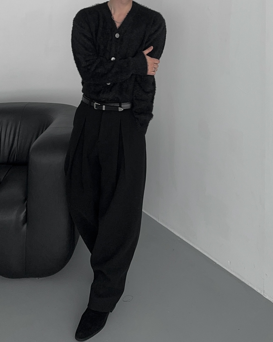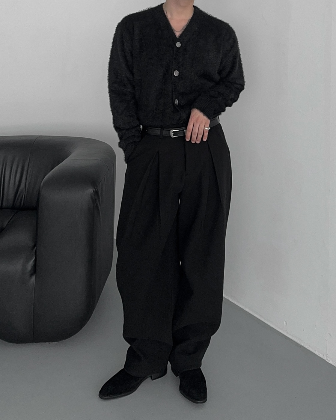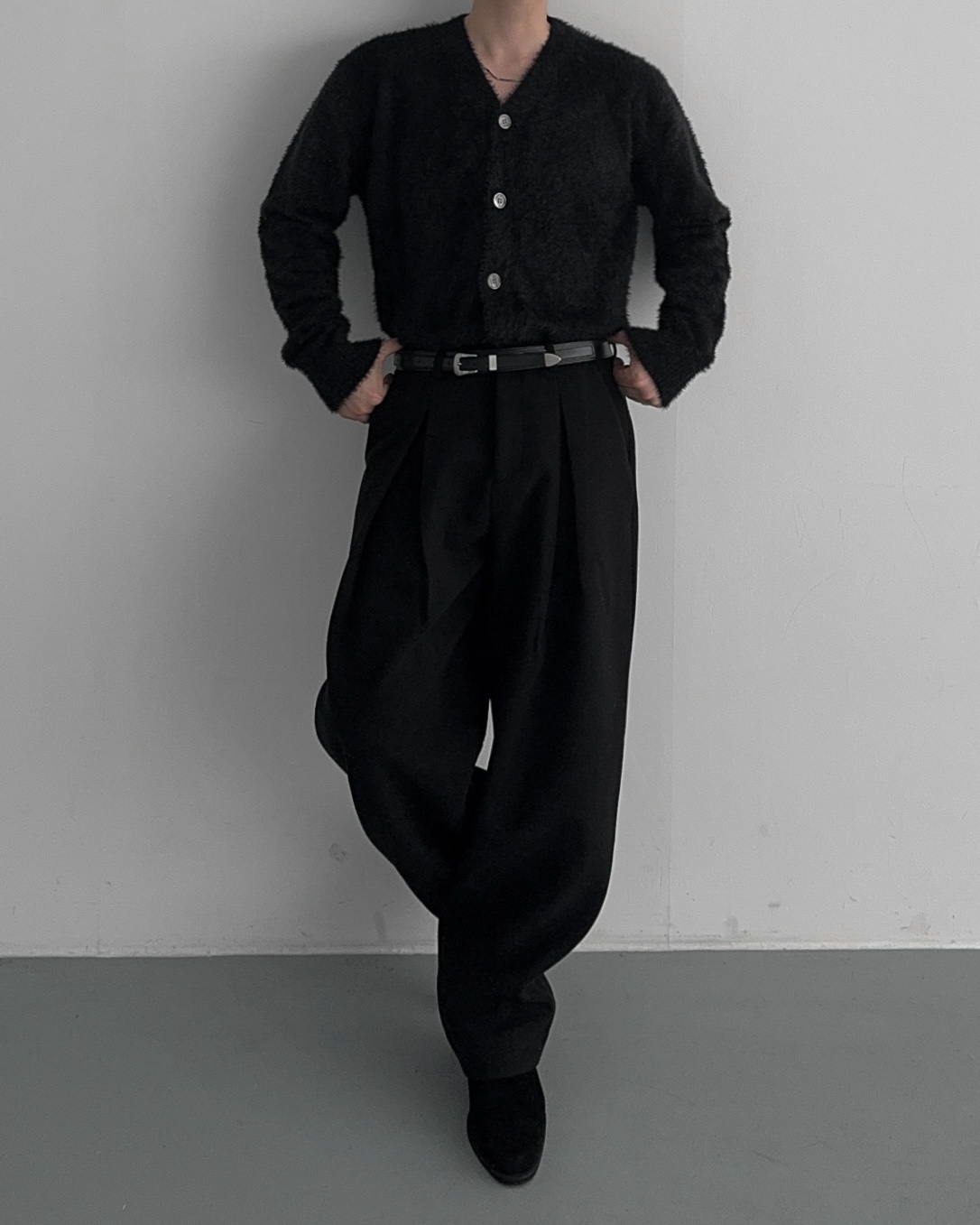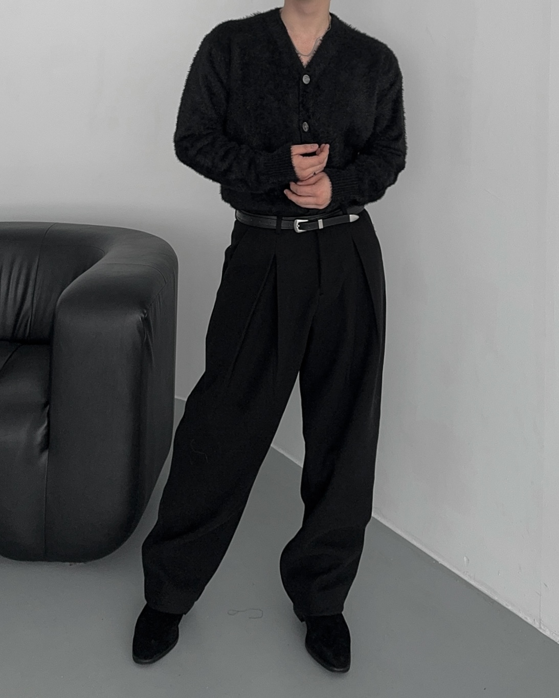 -두터운 울 함유 소재의 슬랙스