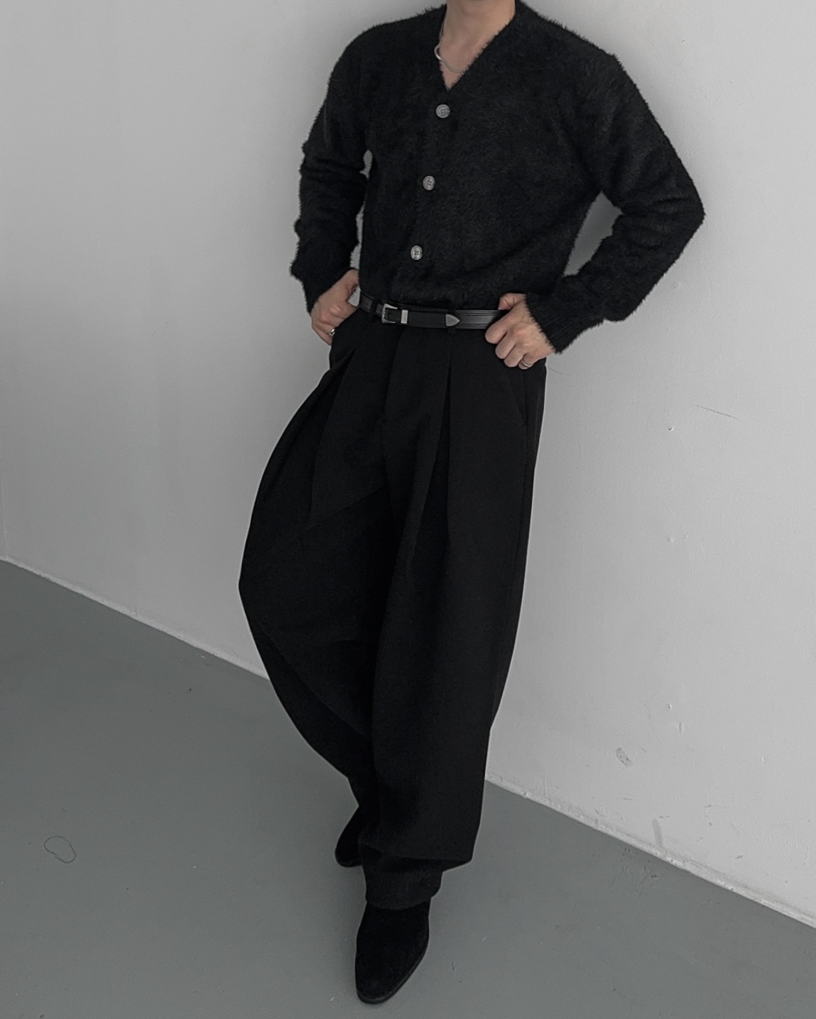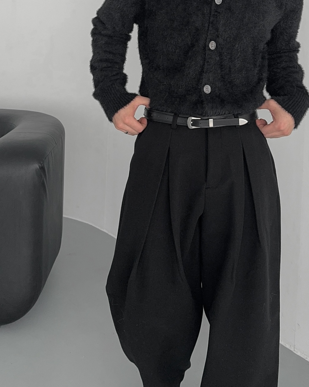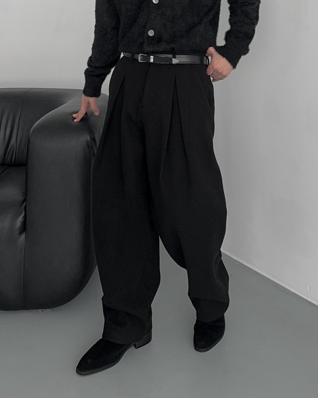 -웨이스트 맞주름 핀턱 디테일과 세미벌룬 실루엣