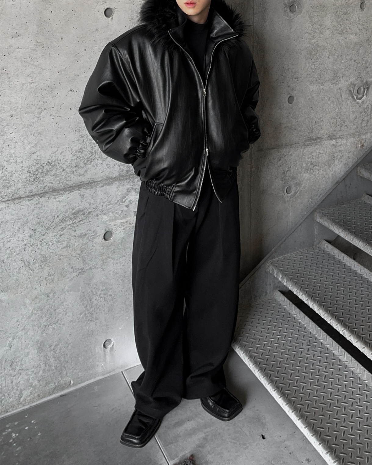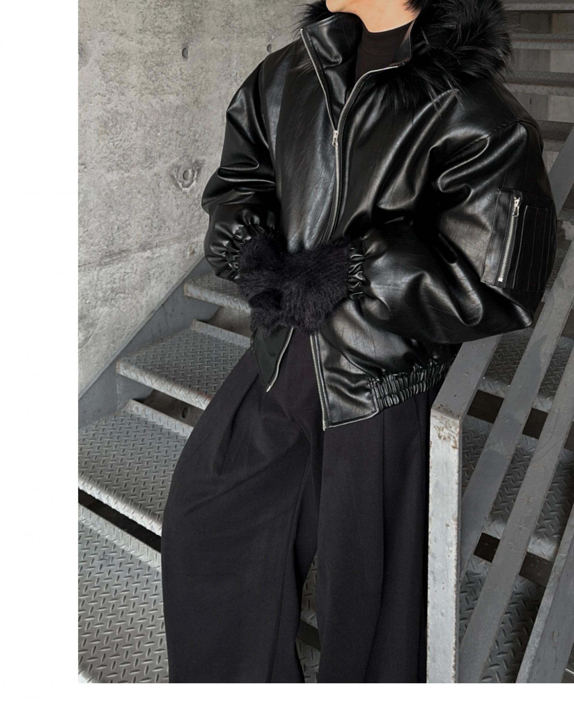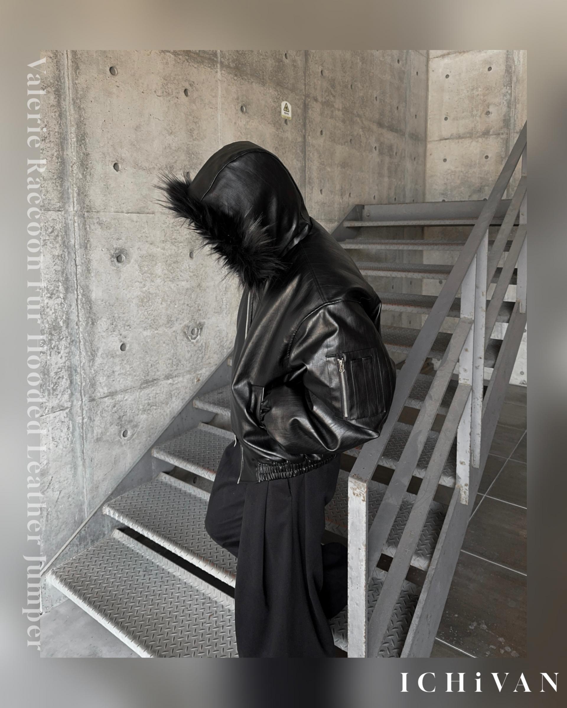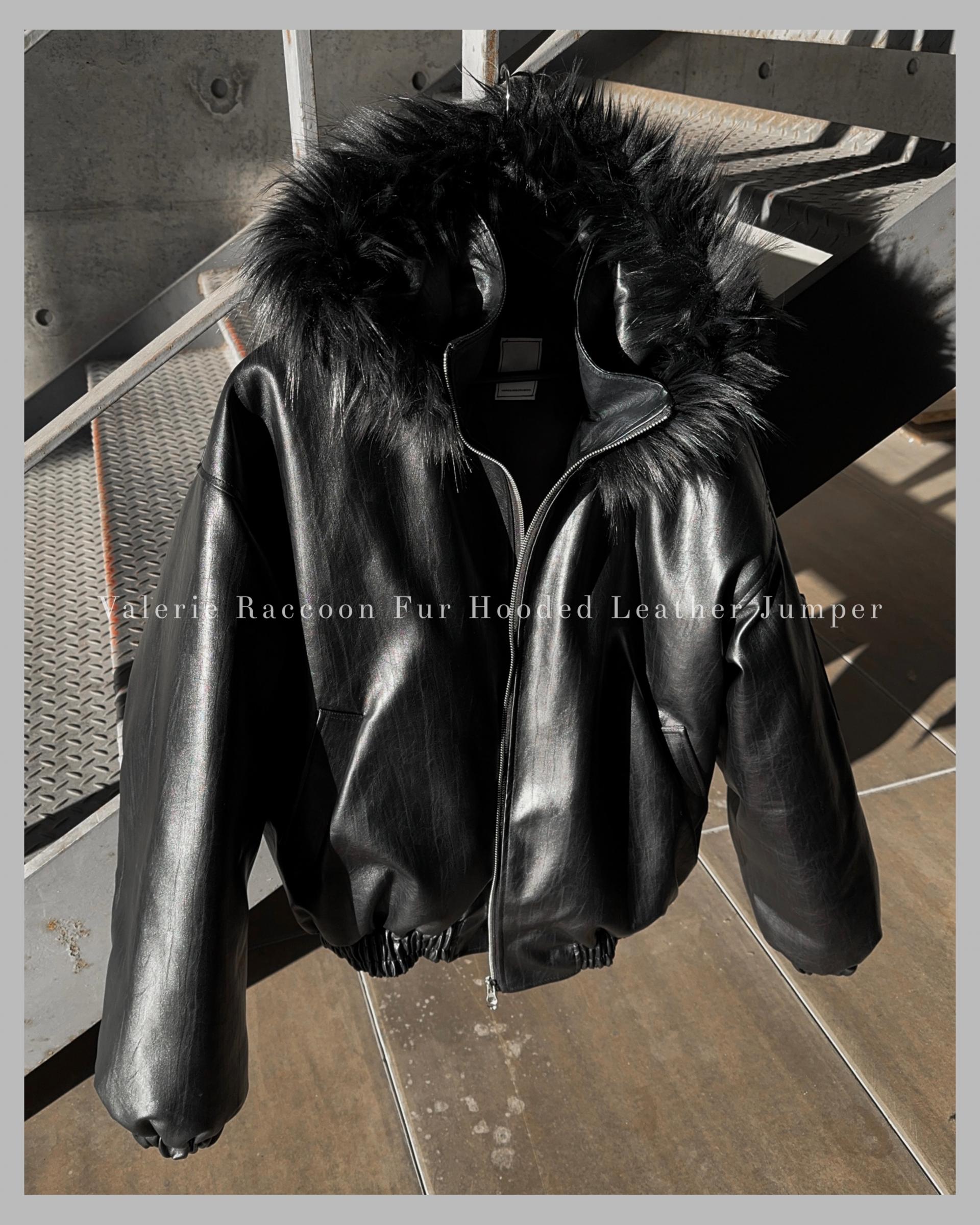 -시크한 올블랙 컬러의 라쿤 레더 점퍼