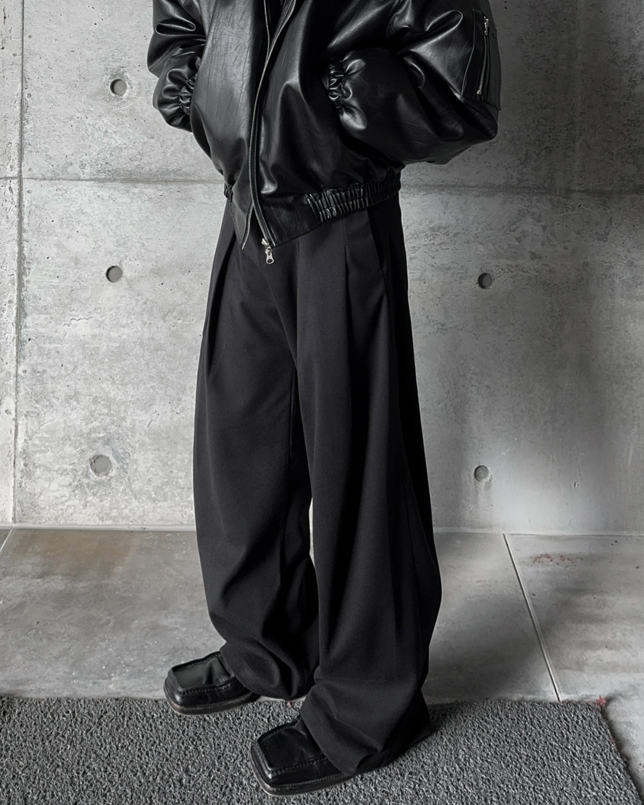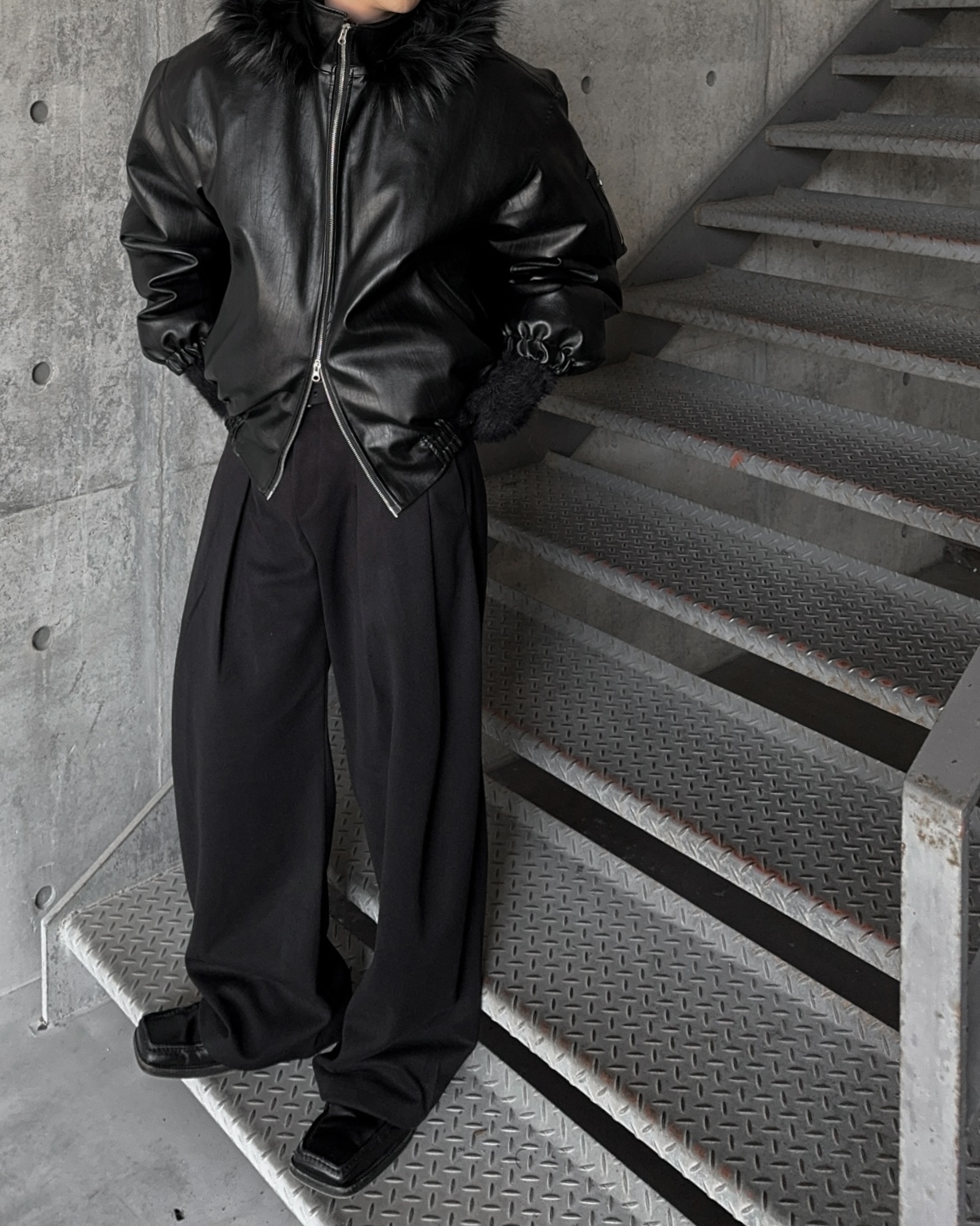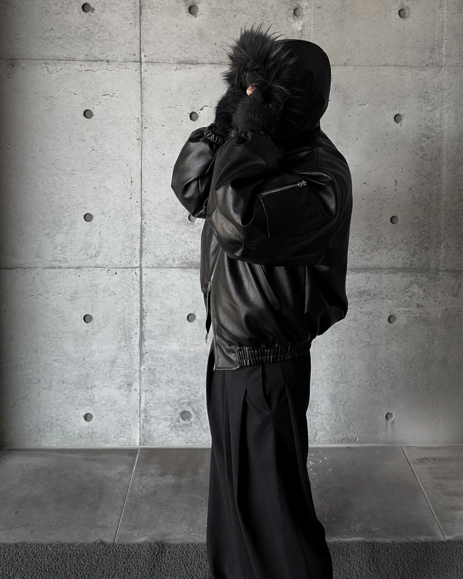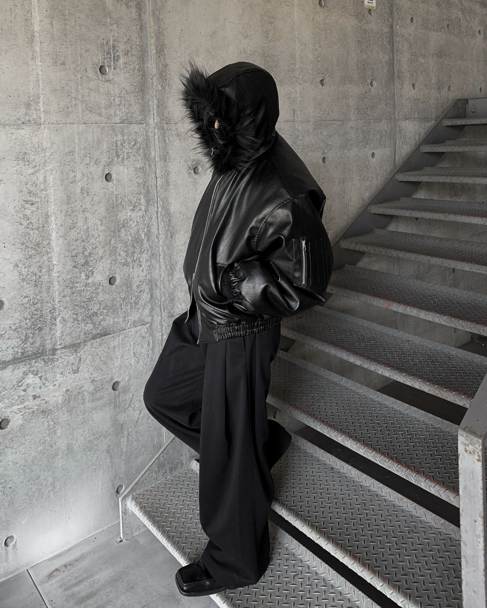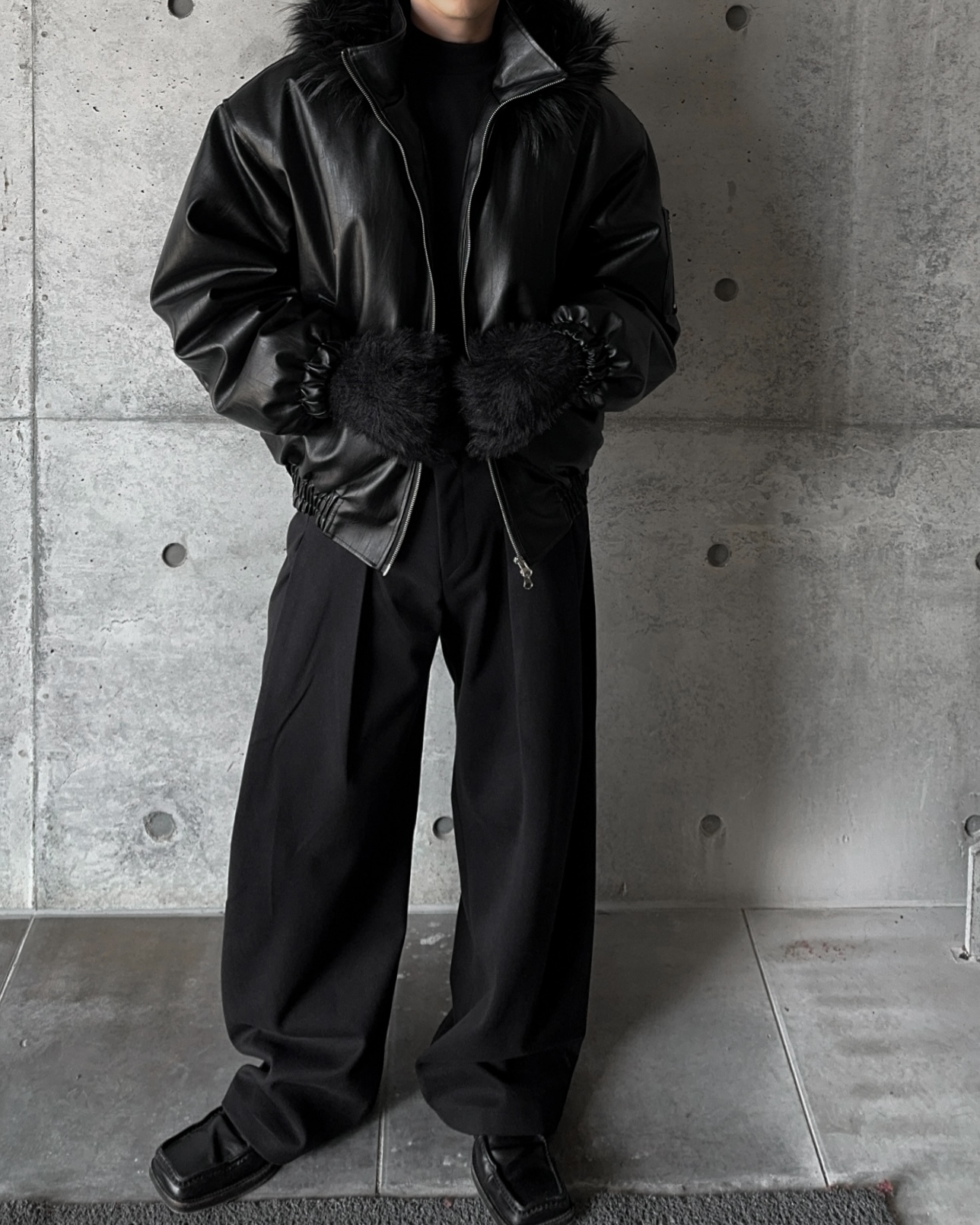 -시크한 올블랙 컬러의 라쿤 레더 점퍼