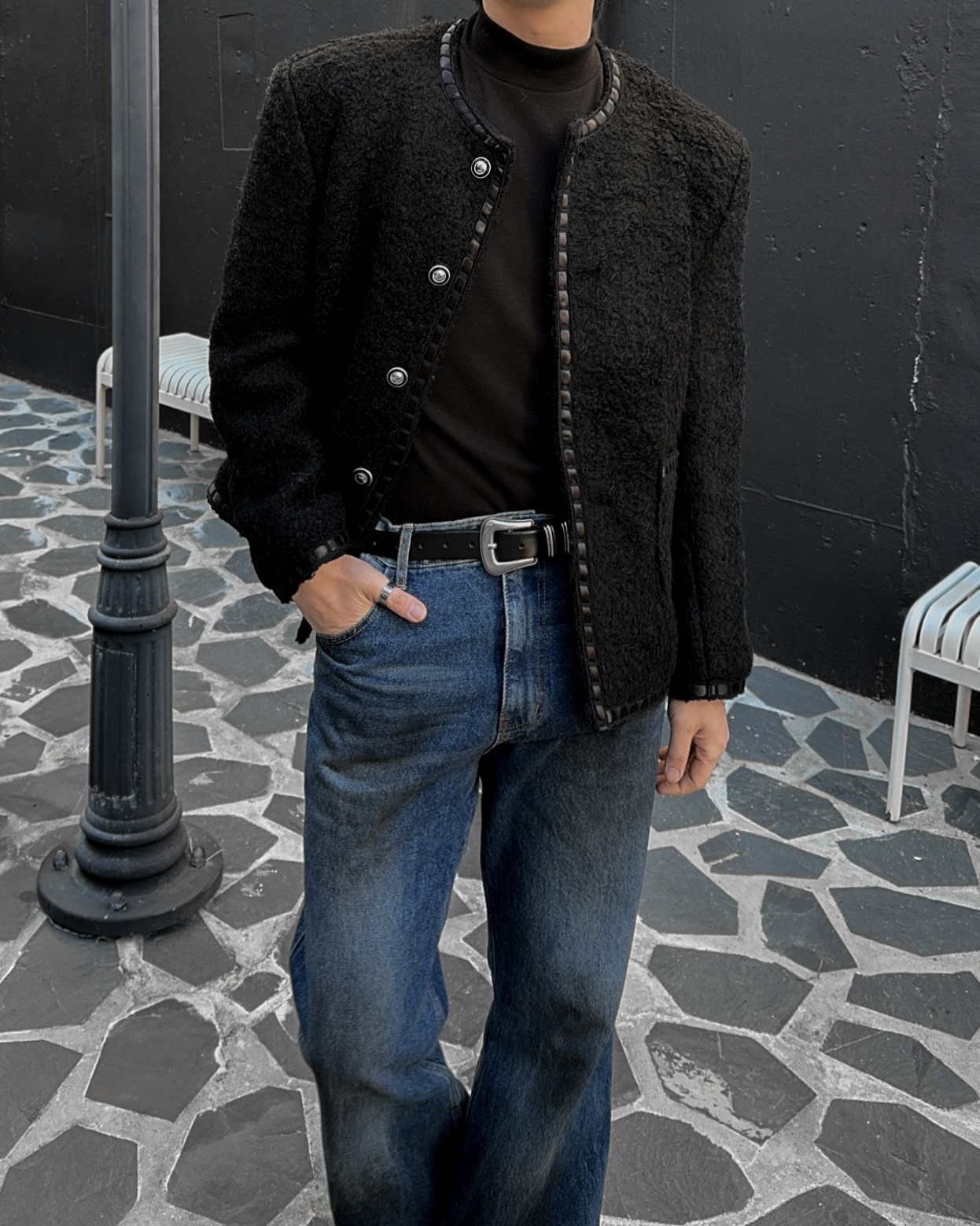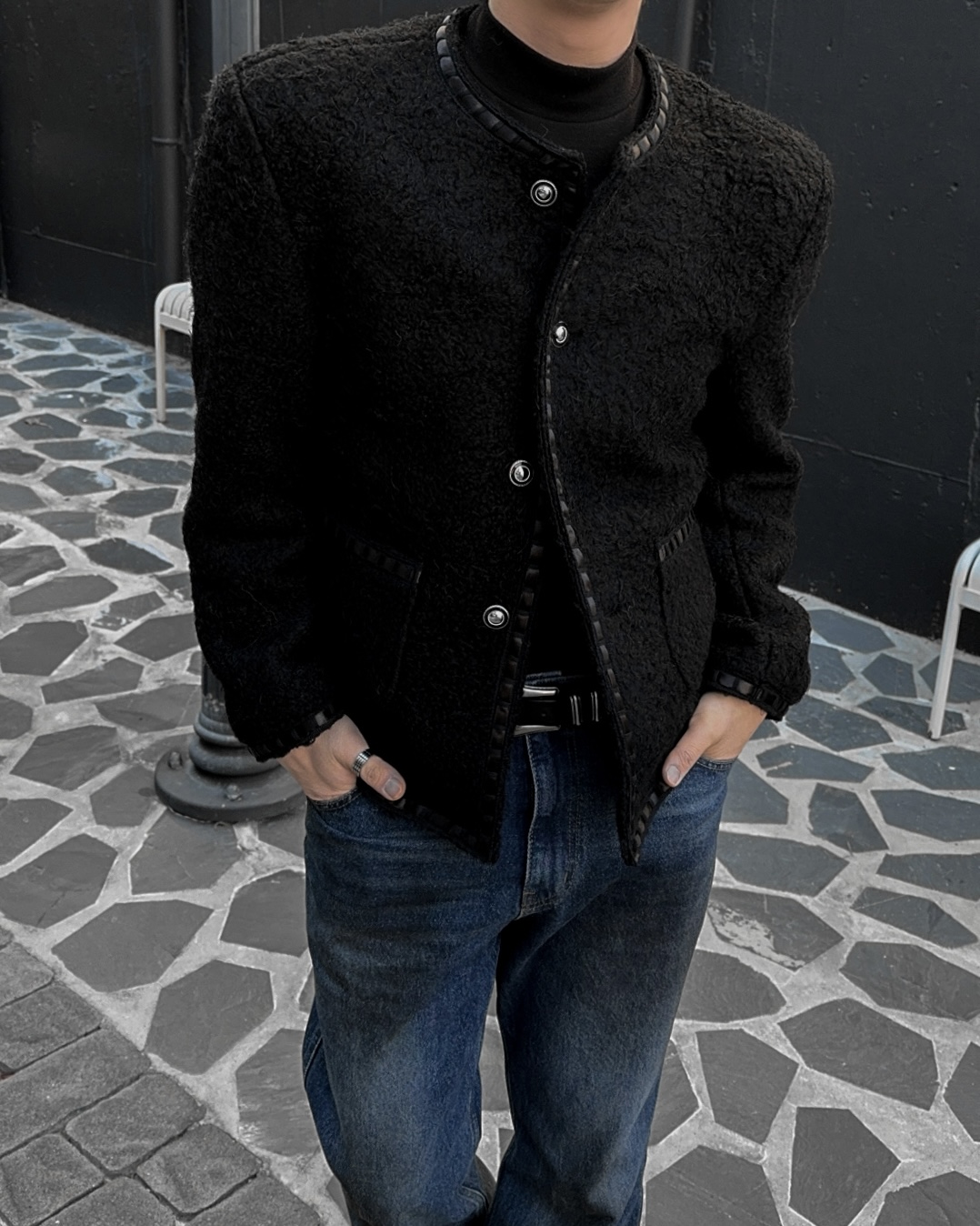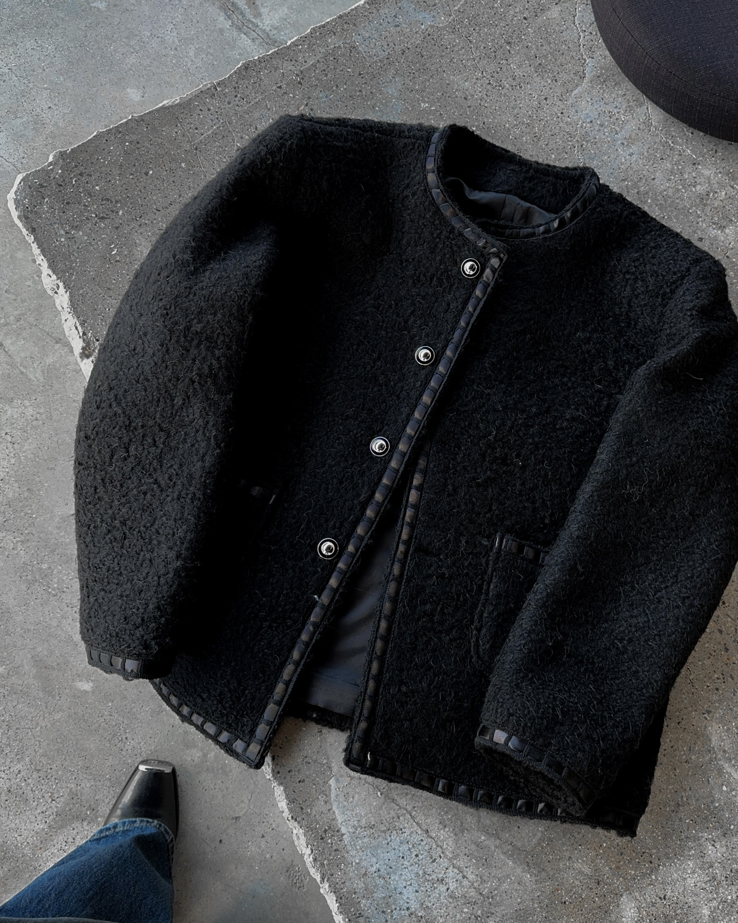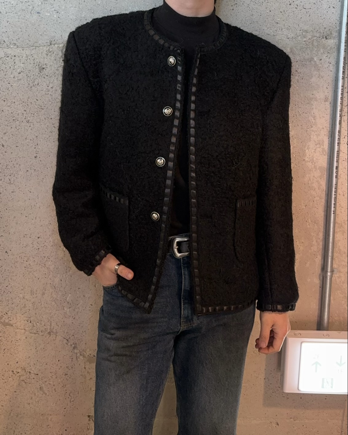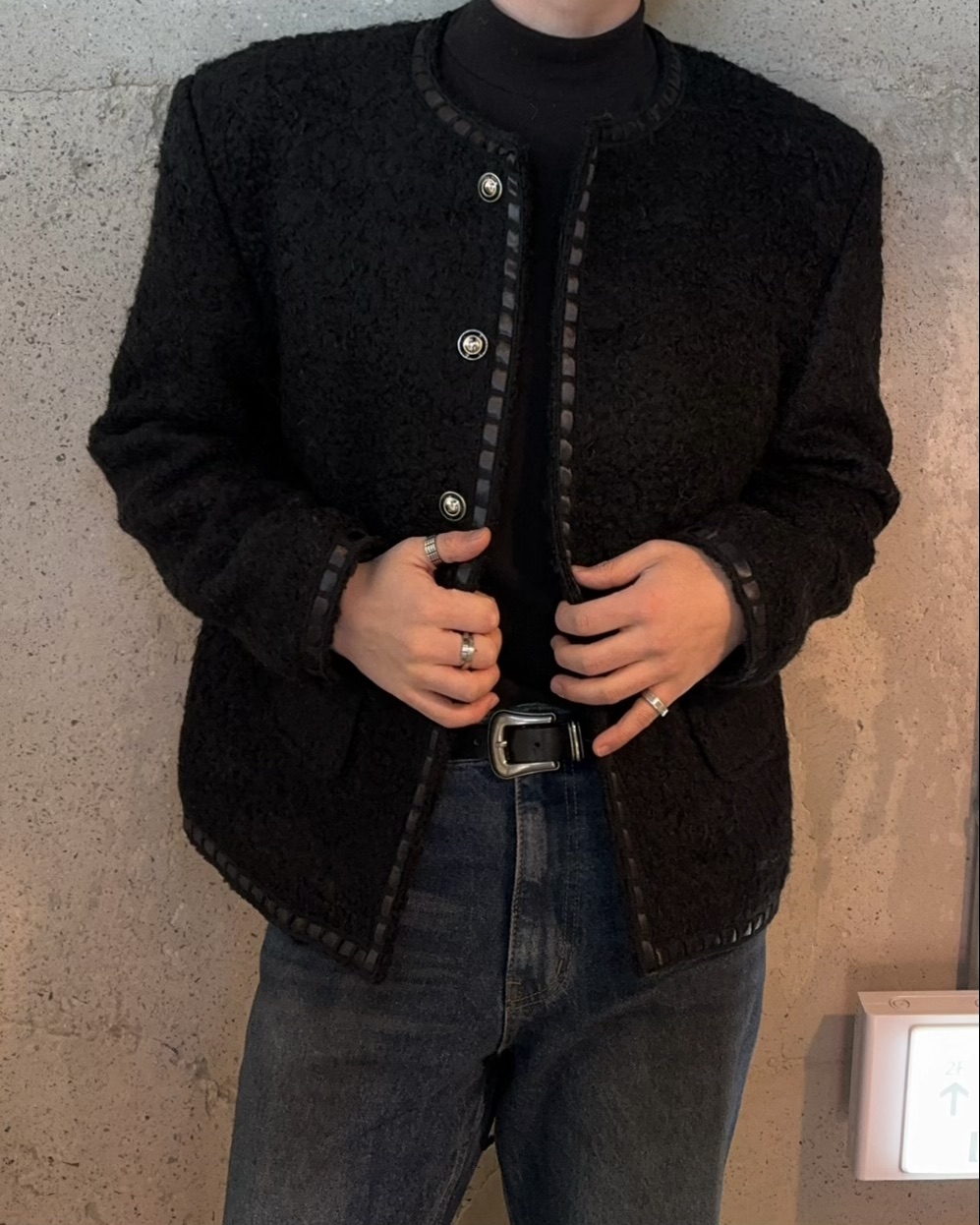 -유니크한 부클 원단으로 제작된 트위드 자켓