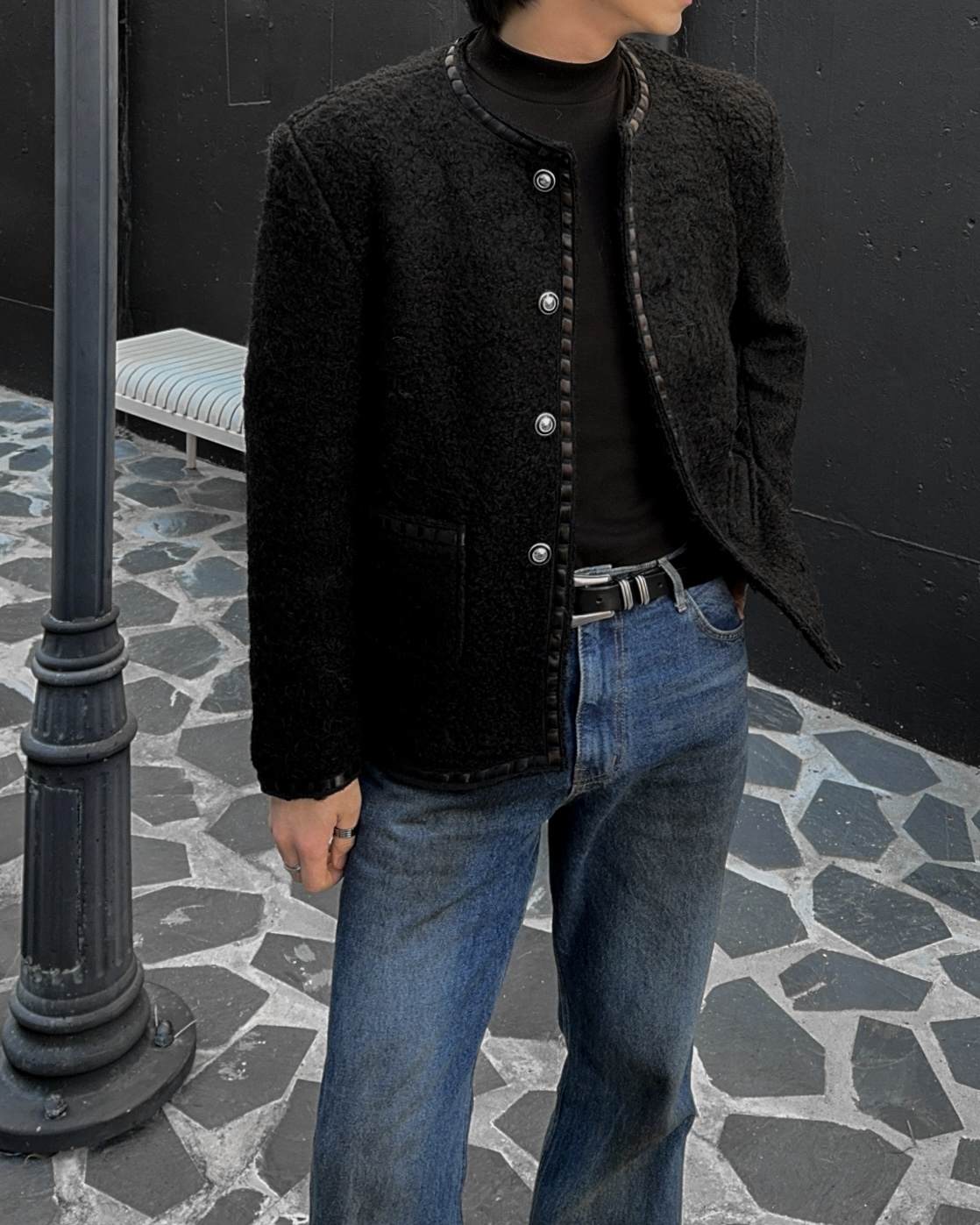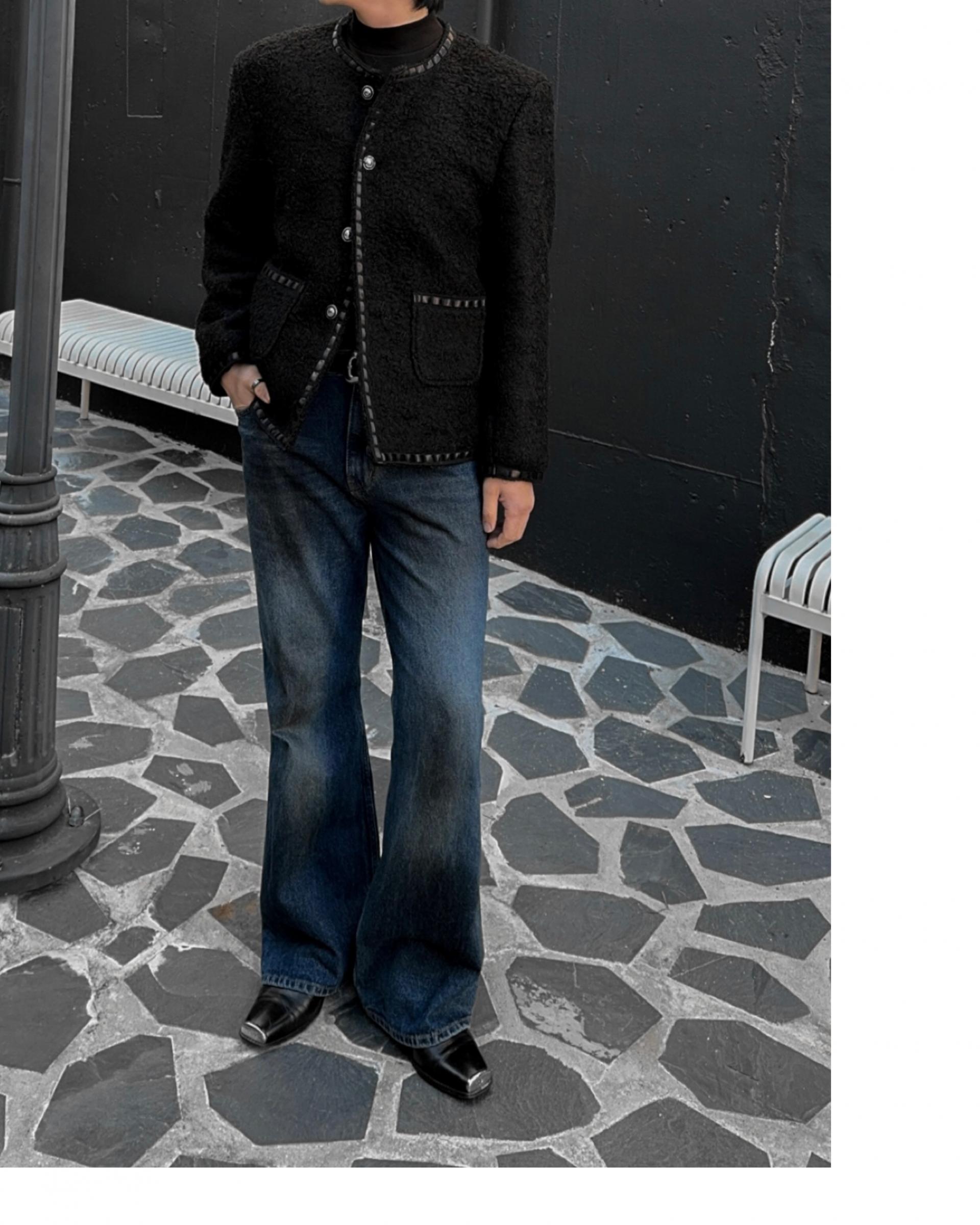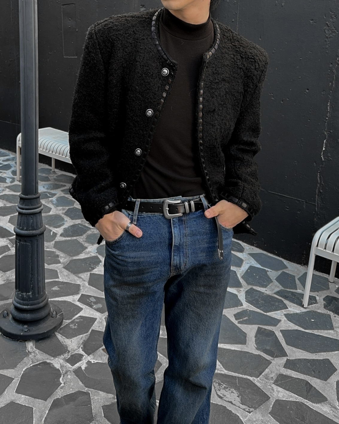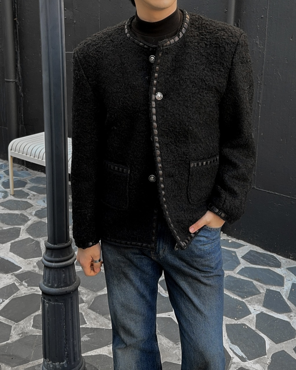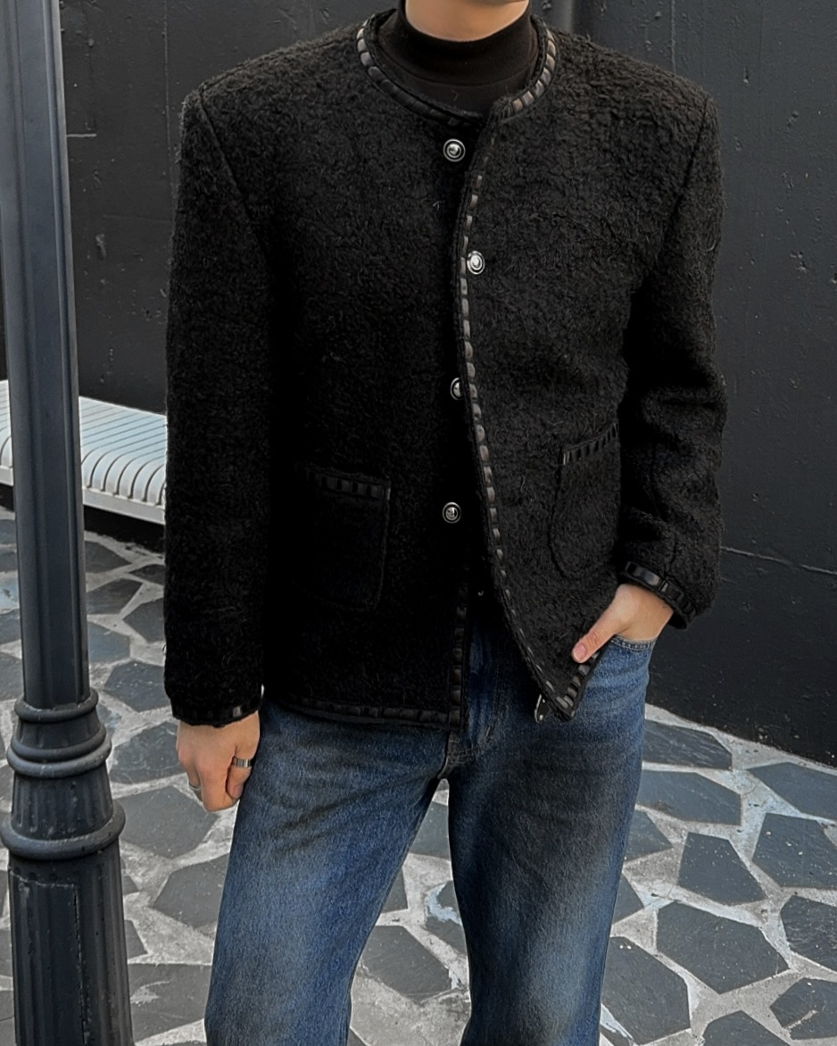 -유니크한 부클 원단으로 제작된 트위드 자켓