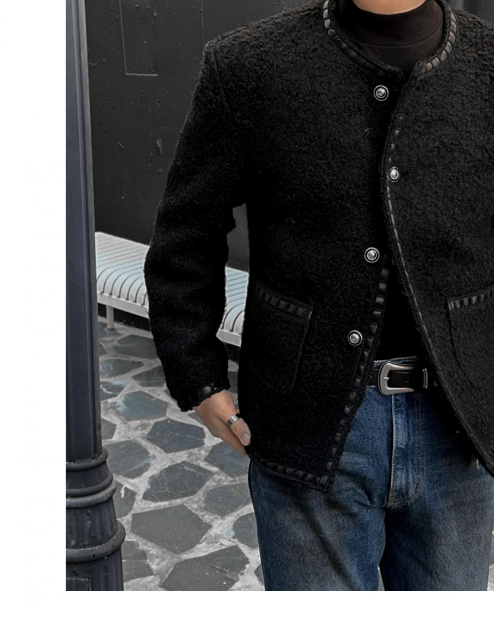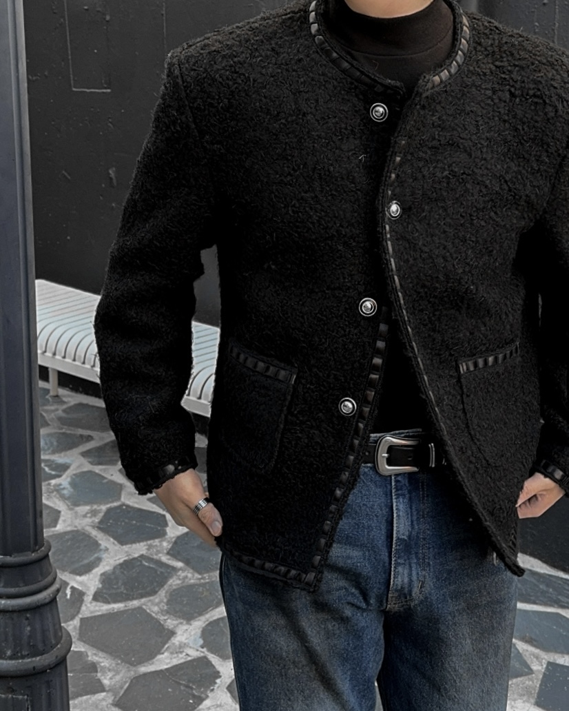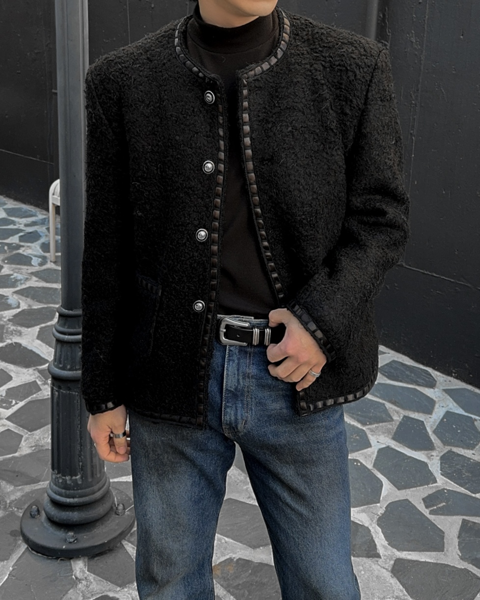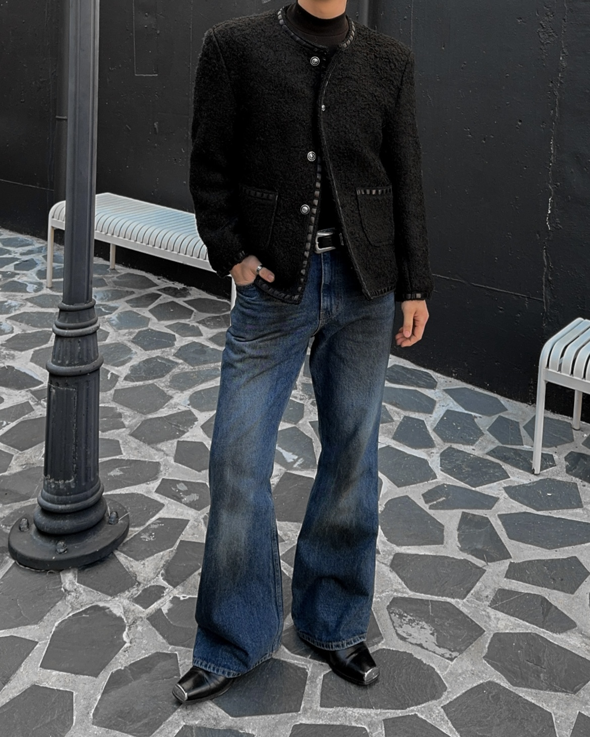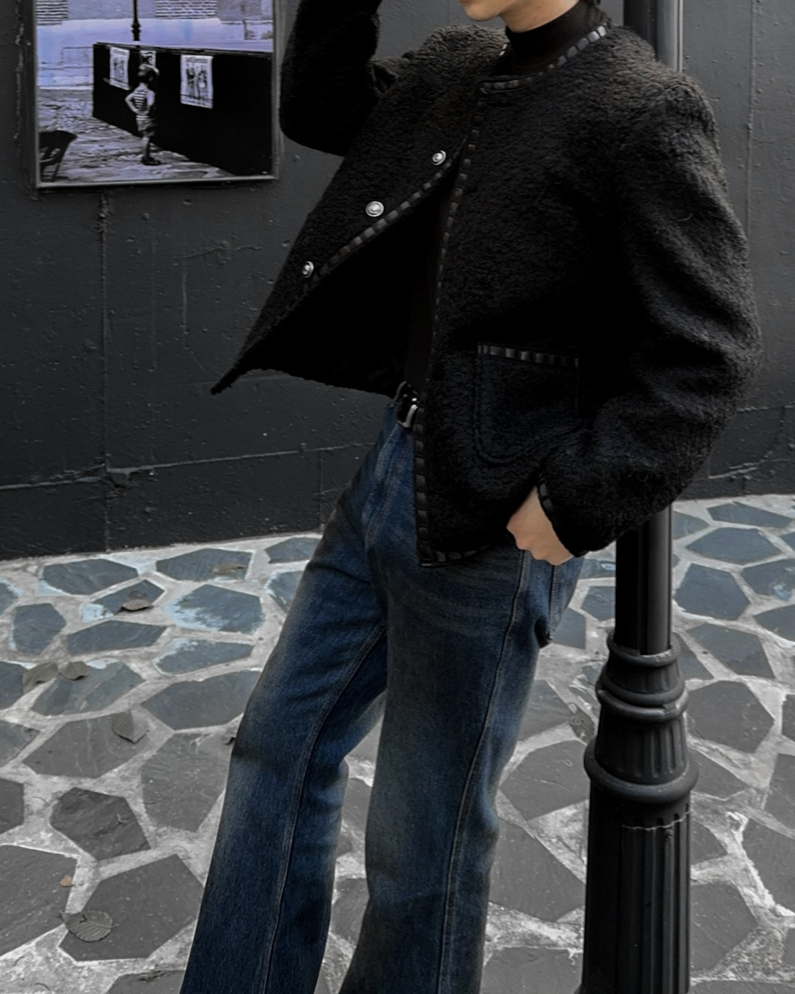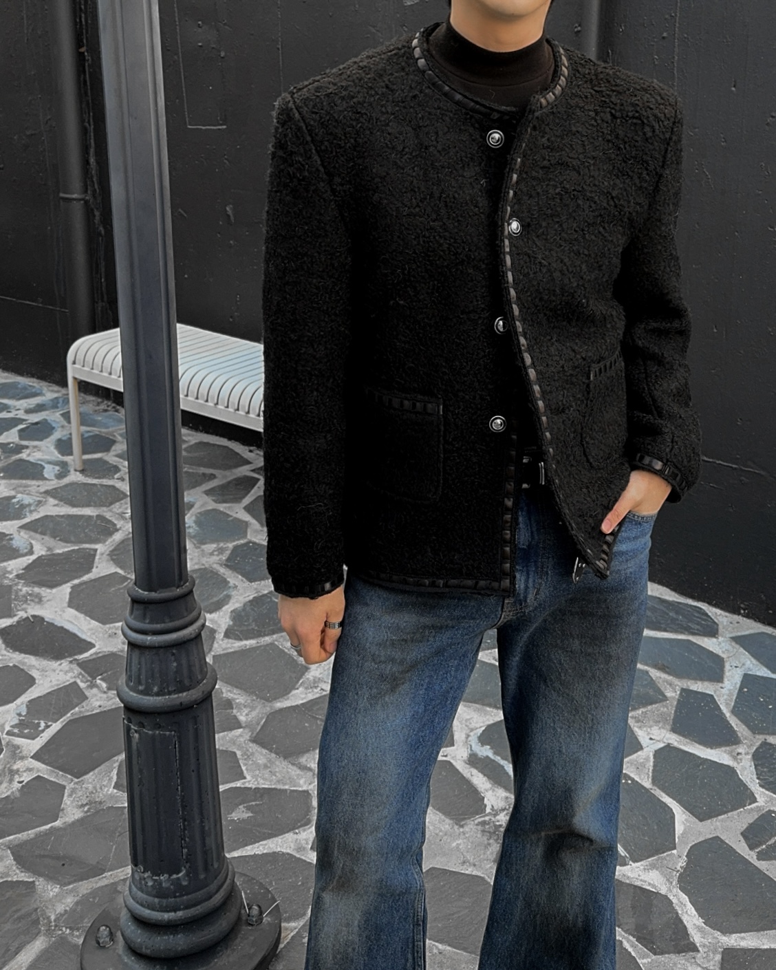 -유니크한 부클 원단으로 제작된 트위드 자켓