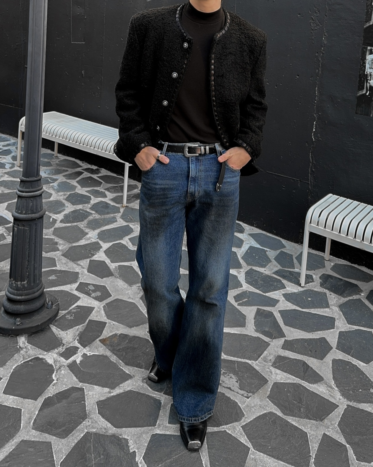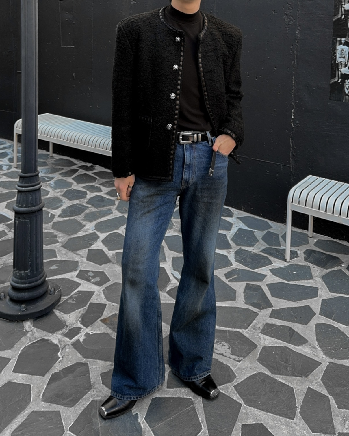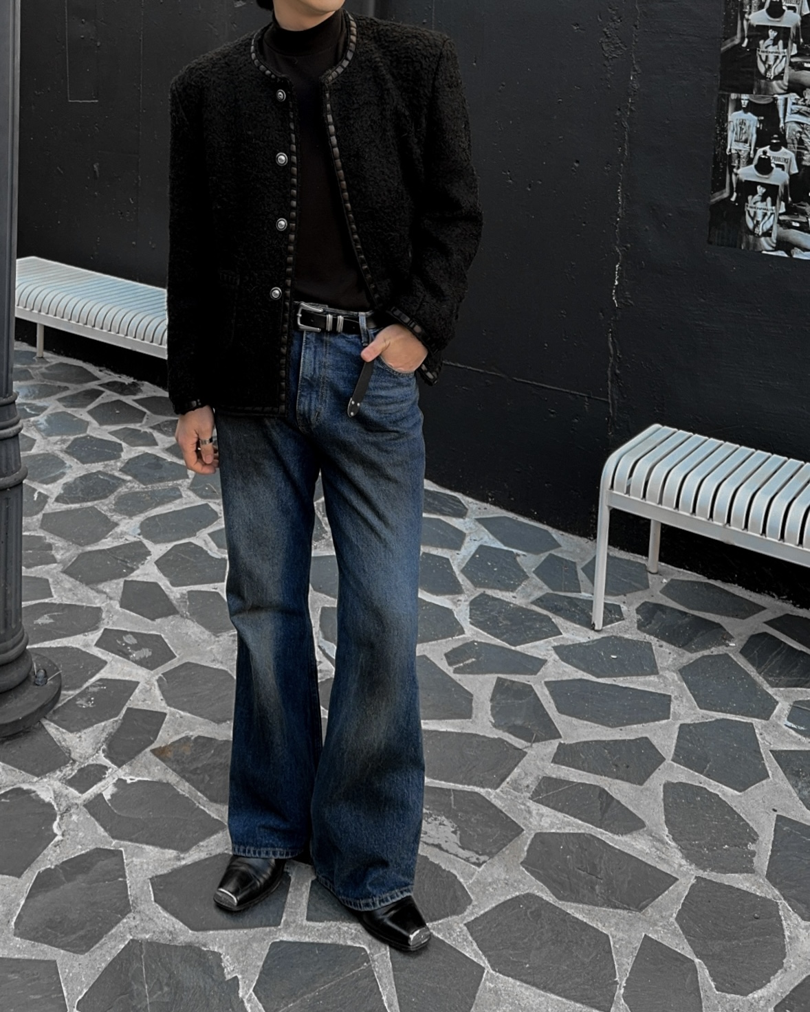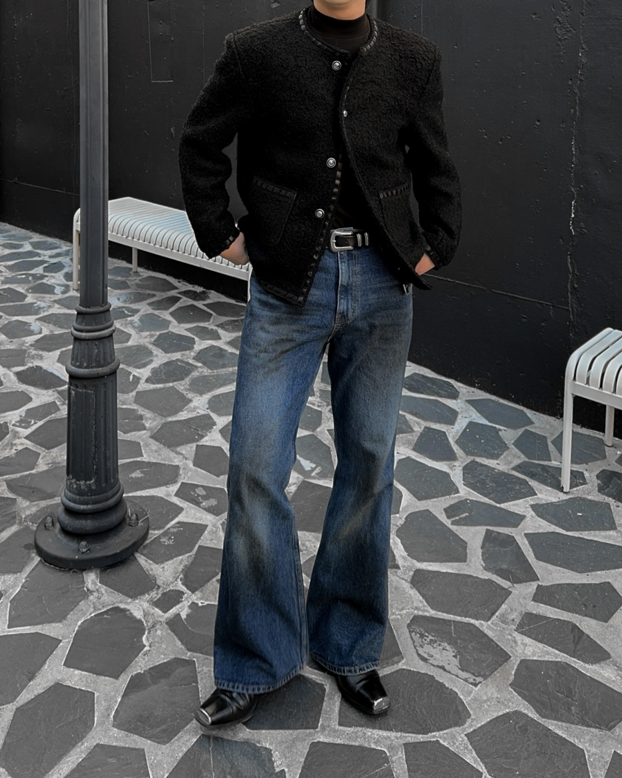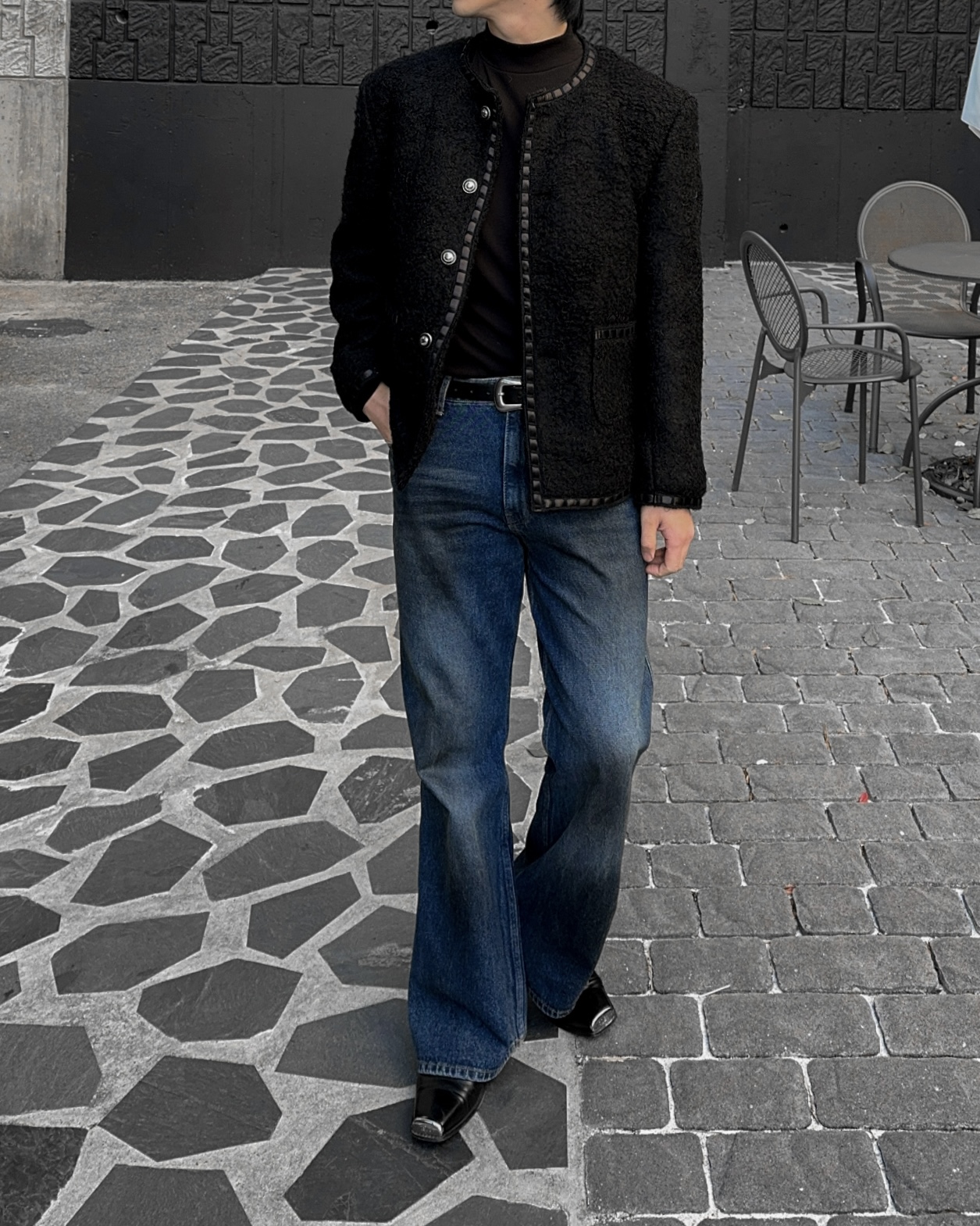 -유니크한 부클 원단으로 제작된 트위드 자켓
