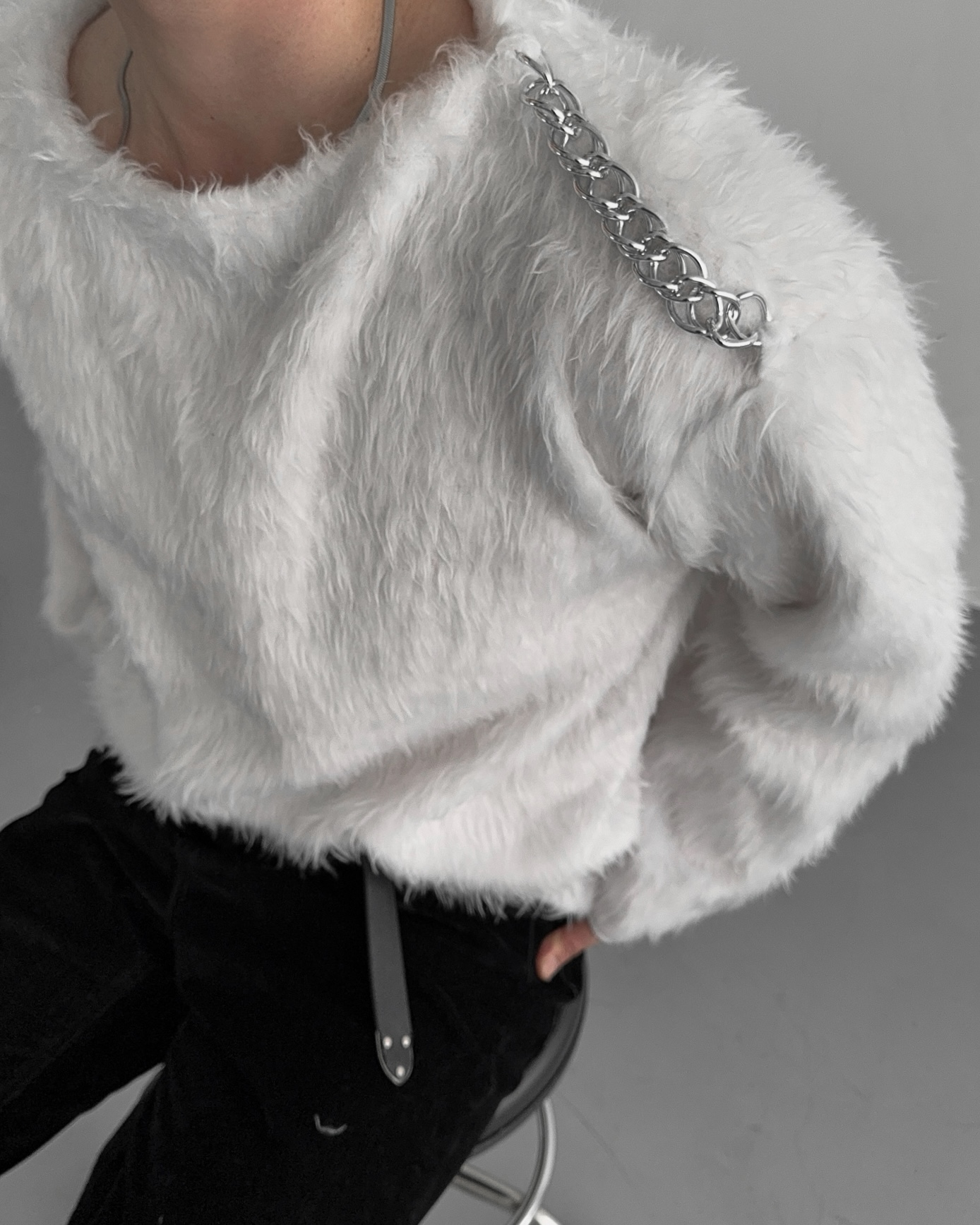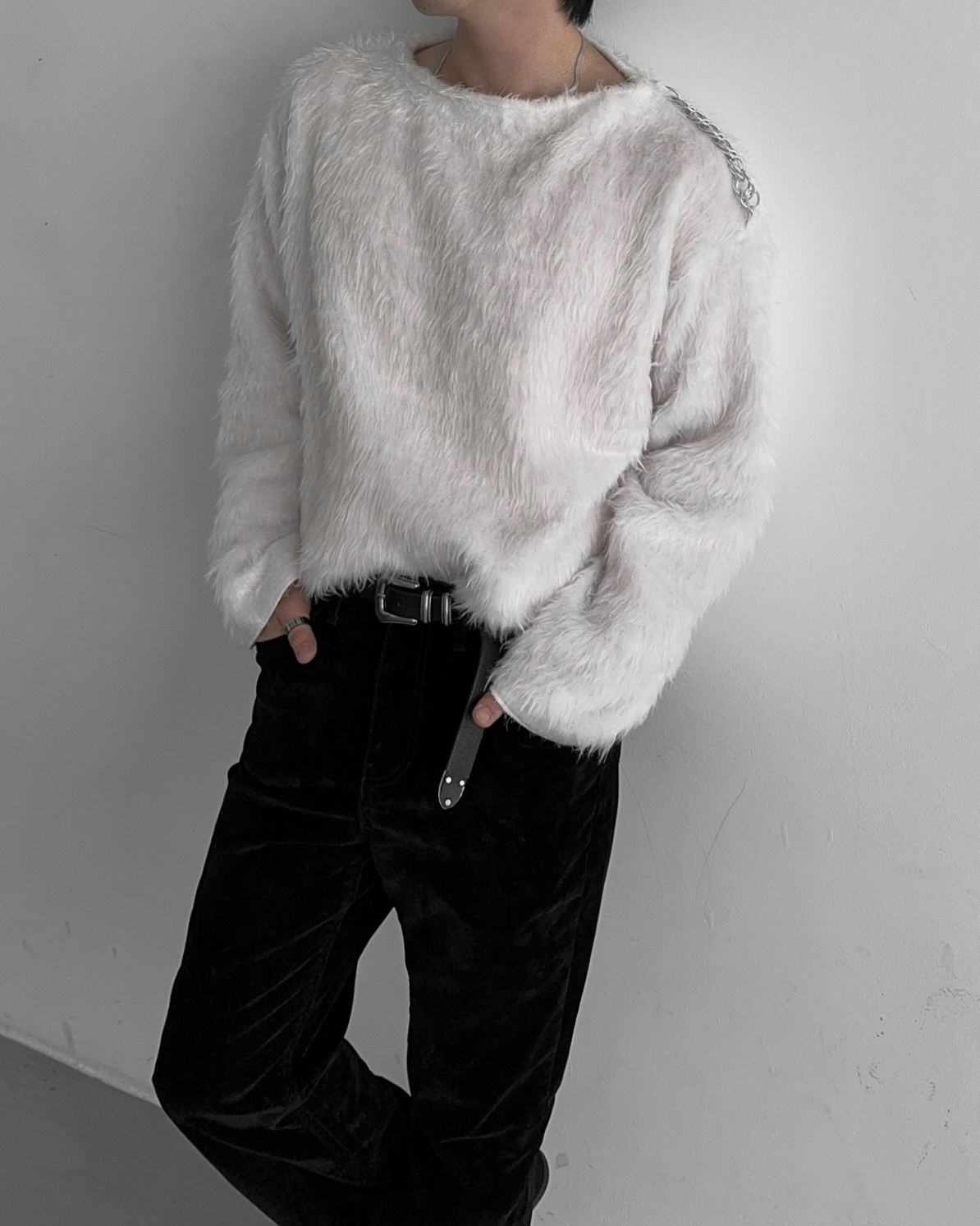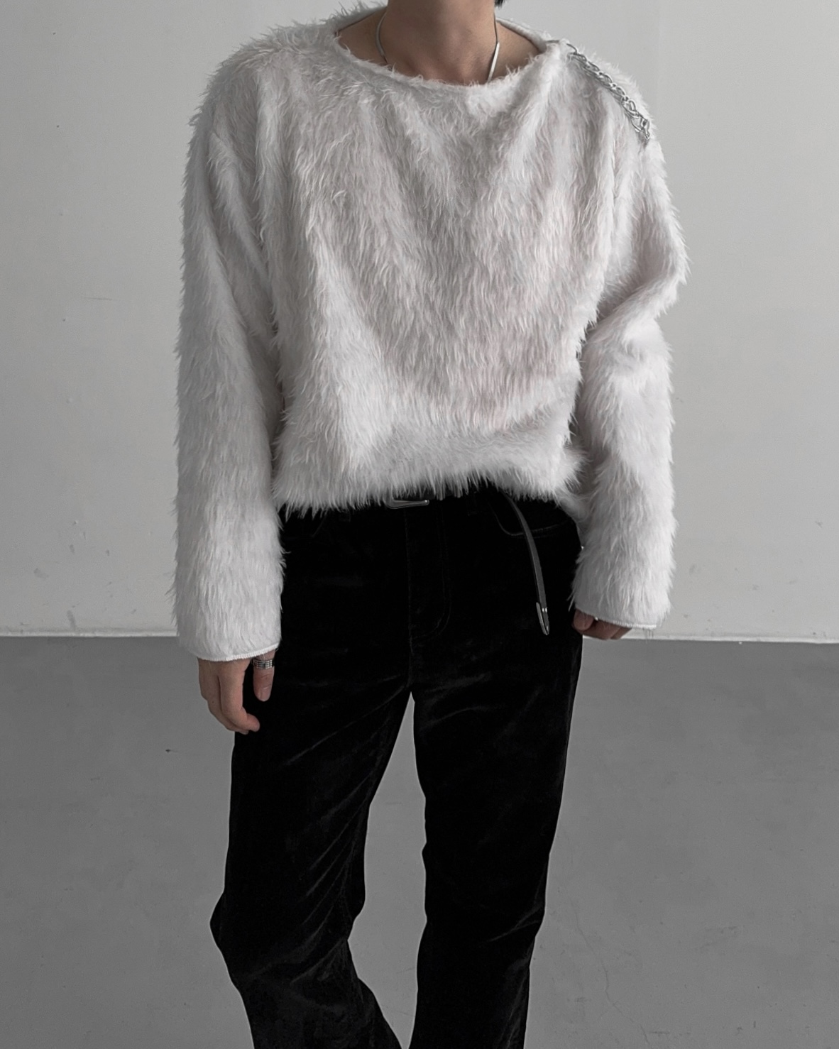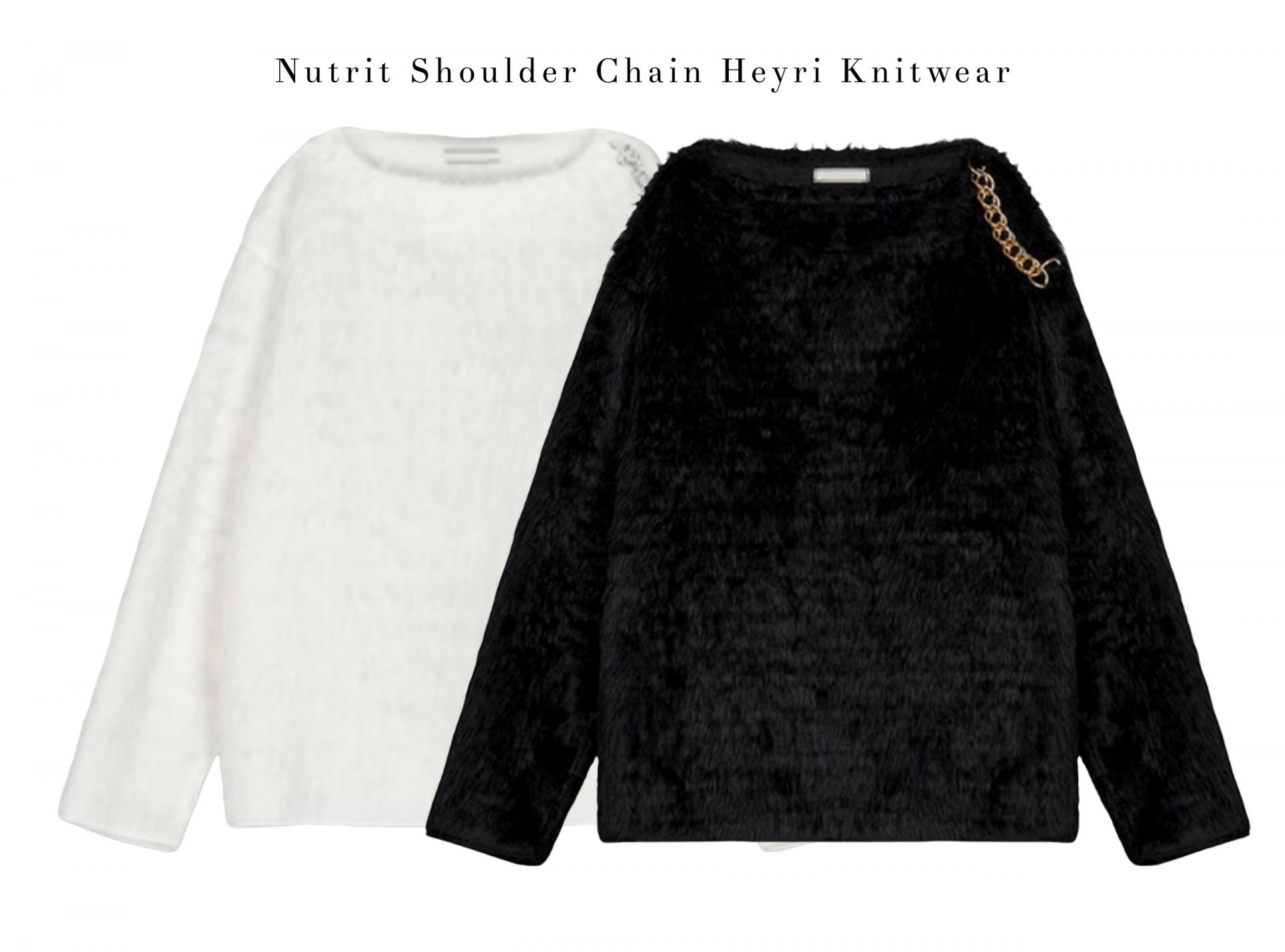 -숄더 라인 체인 디테일로 유니크한 디자인