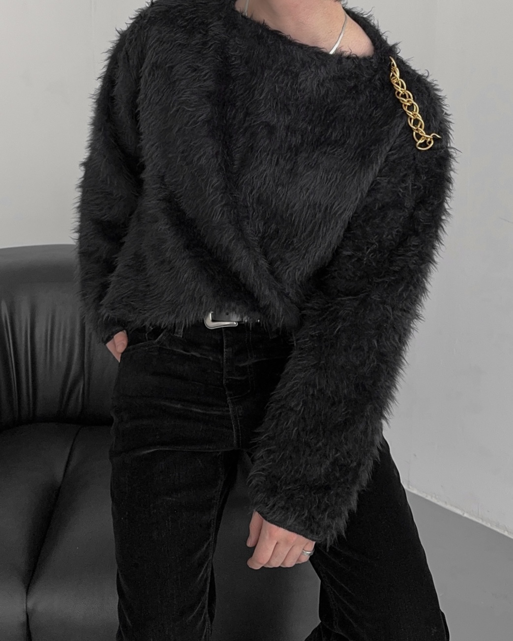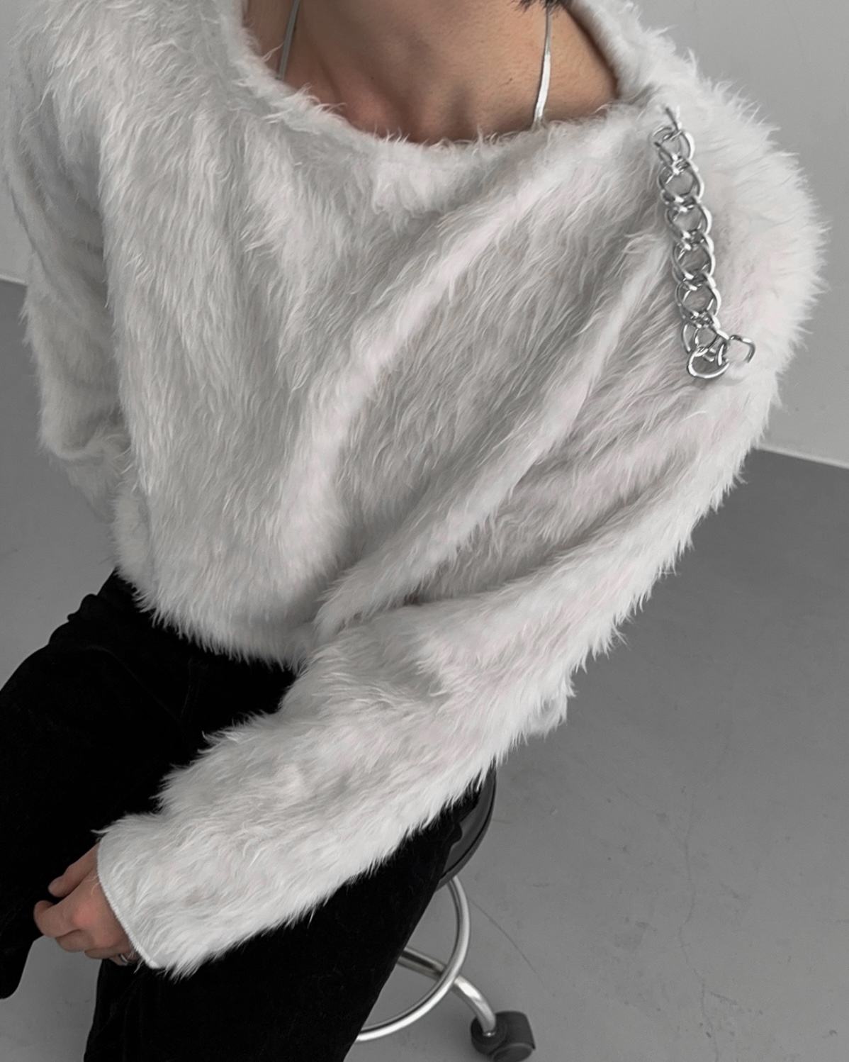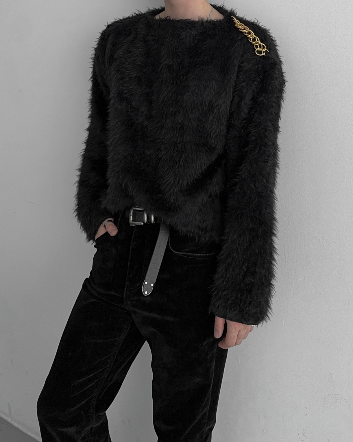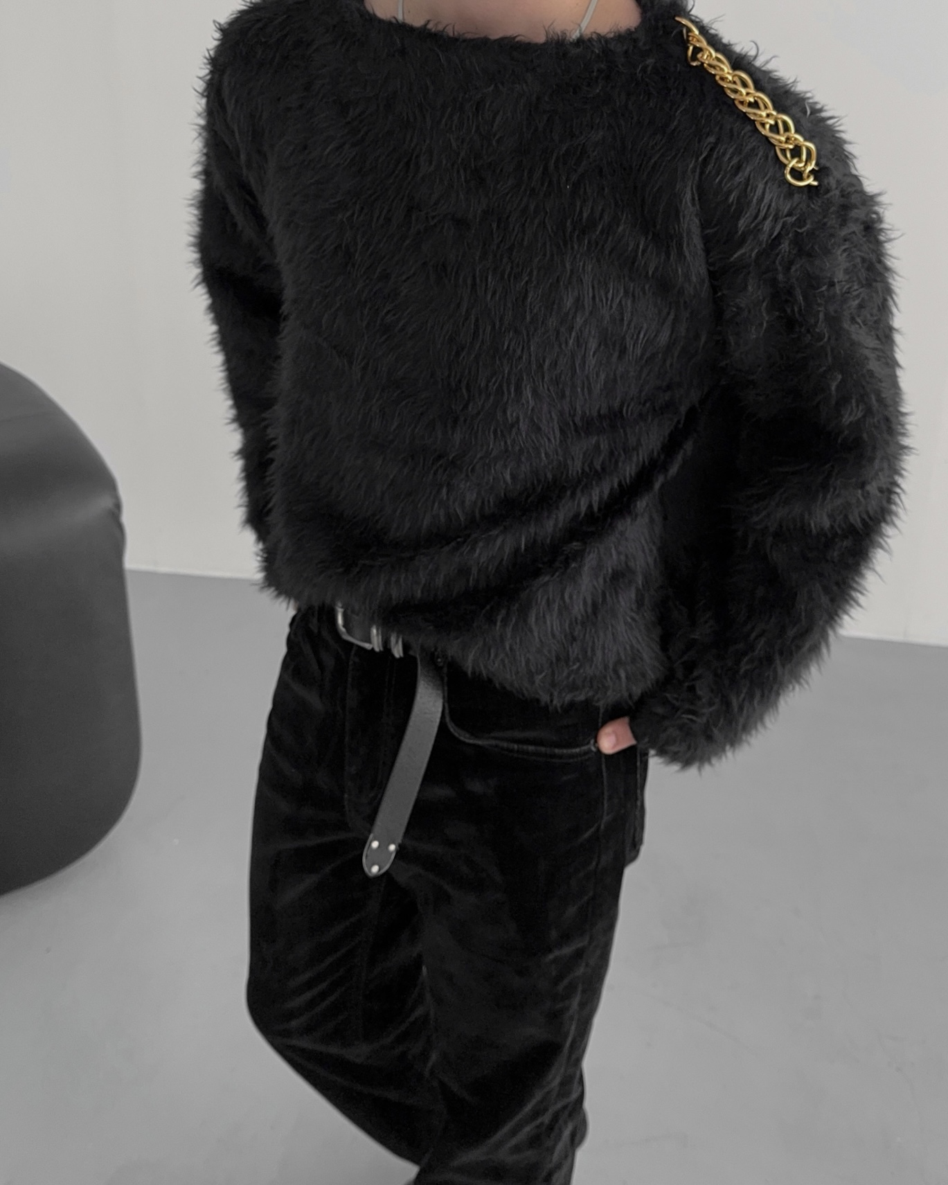 -숄더 라인 체인 디테일로 유니크한 디자인