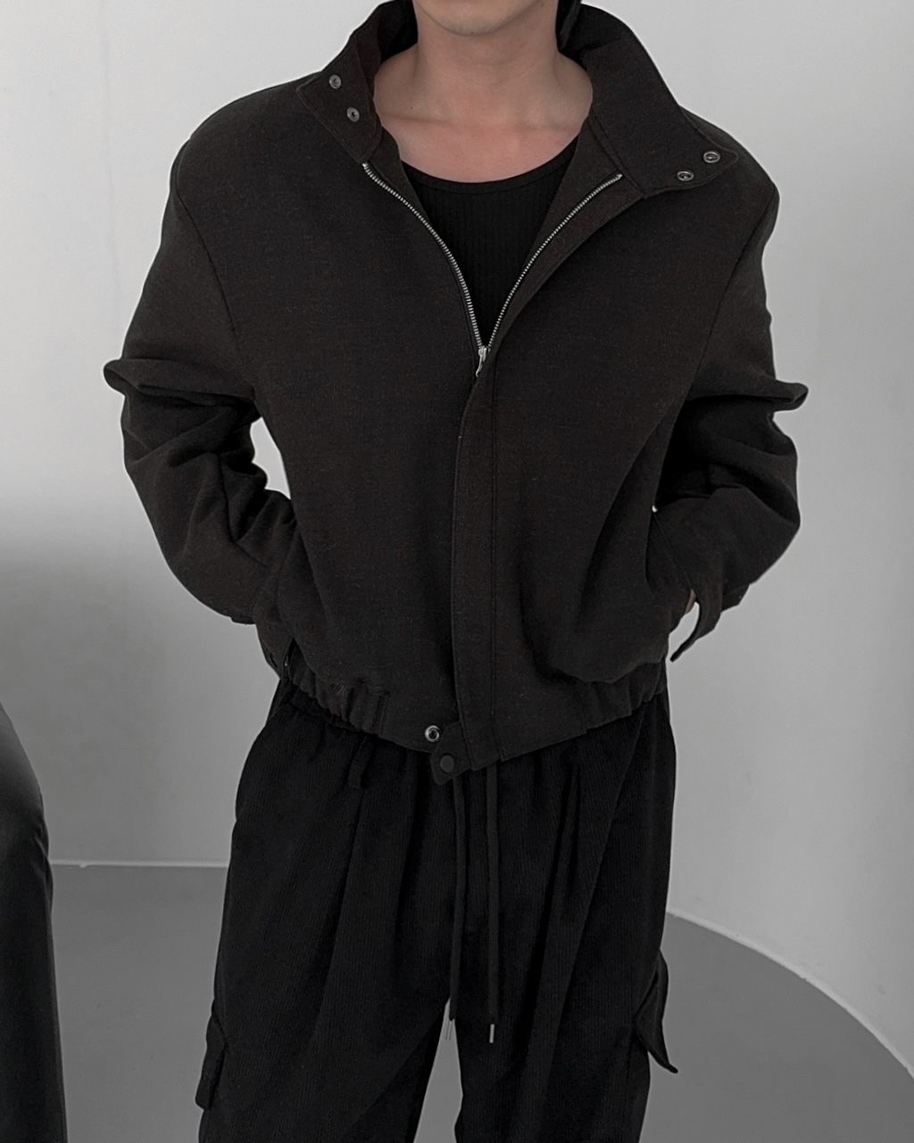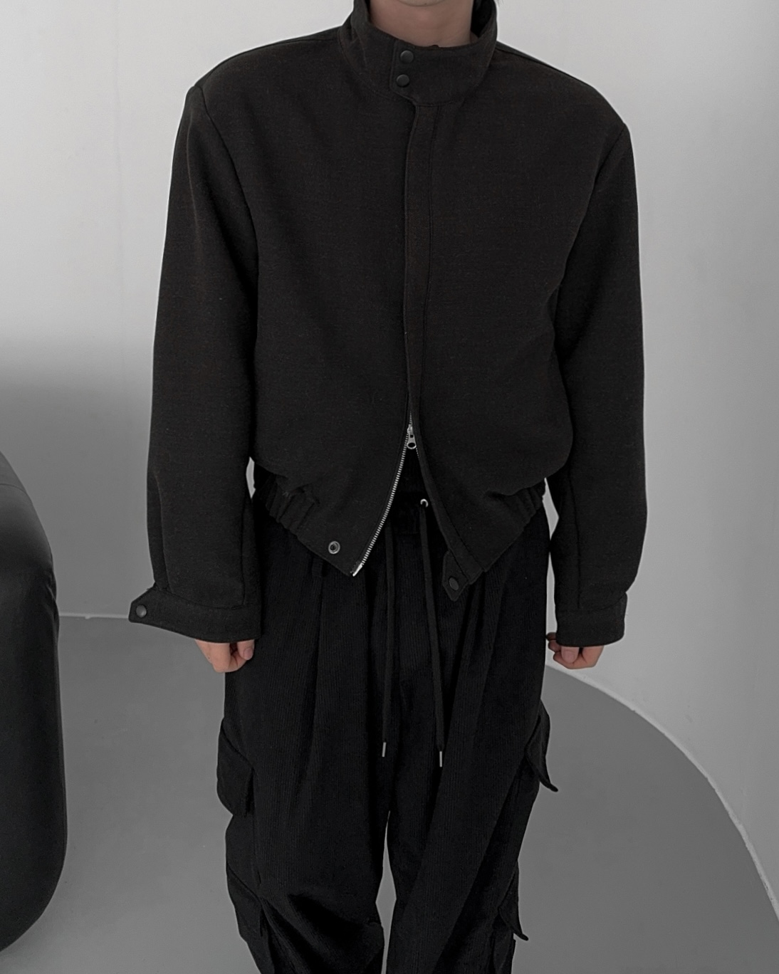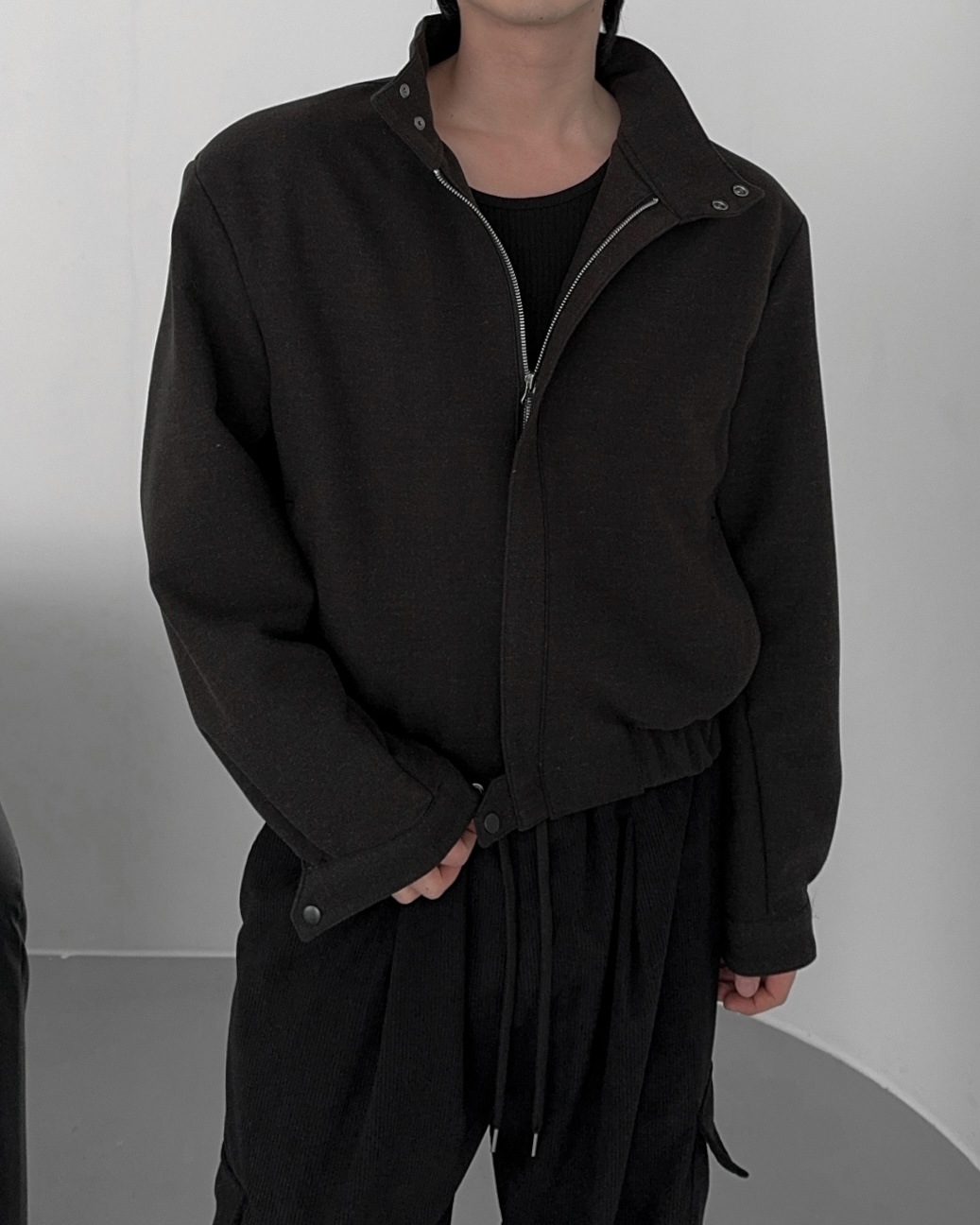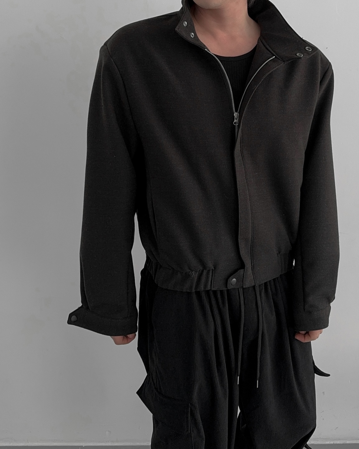 -밑단 시보리 , 스냅단추로 안정된 핏감