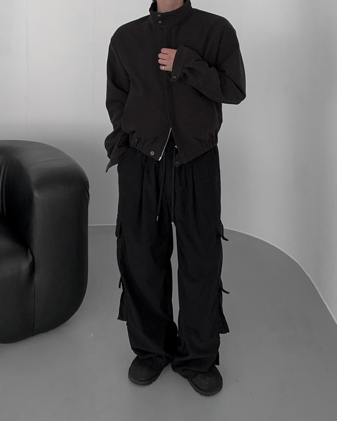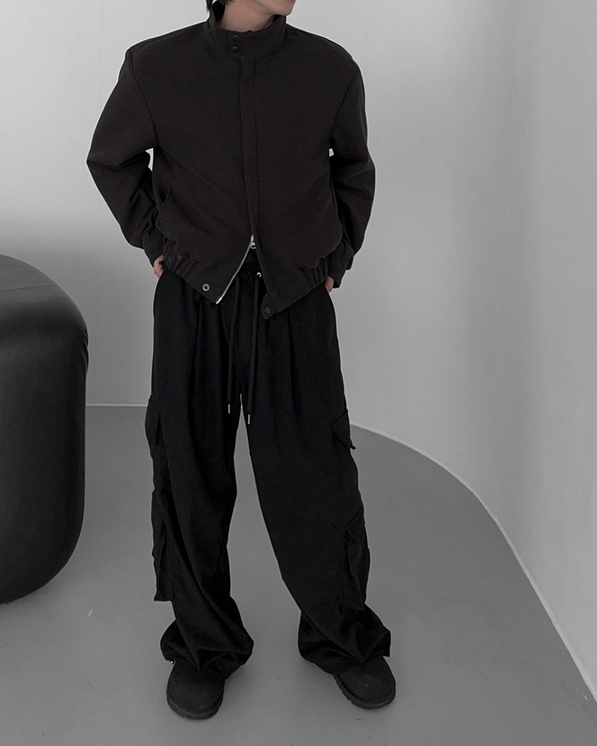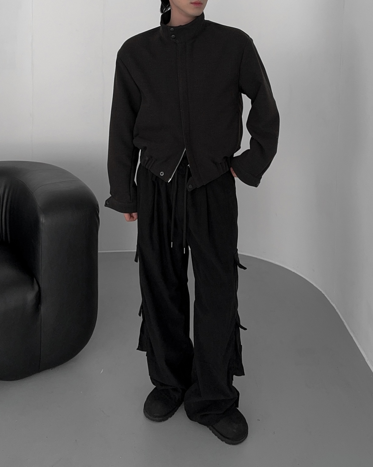 -밑단 시보리 , 스냅단추로 안정된 핏감