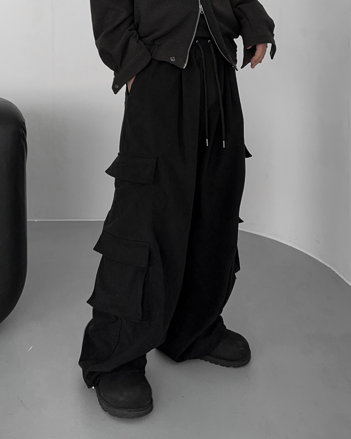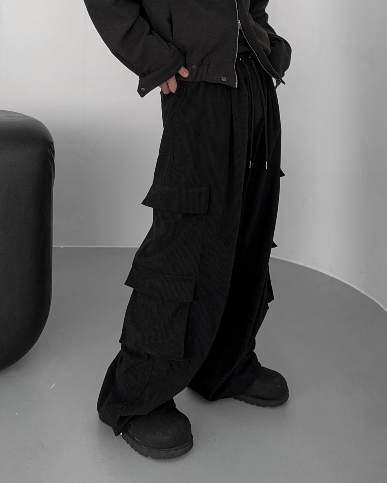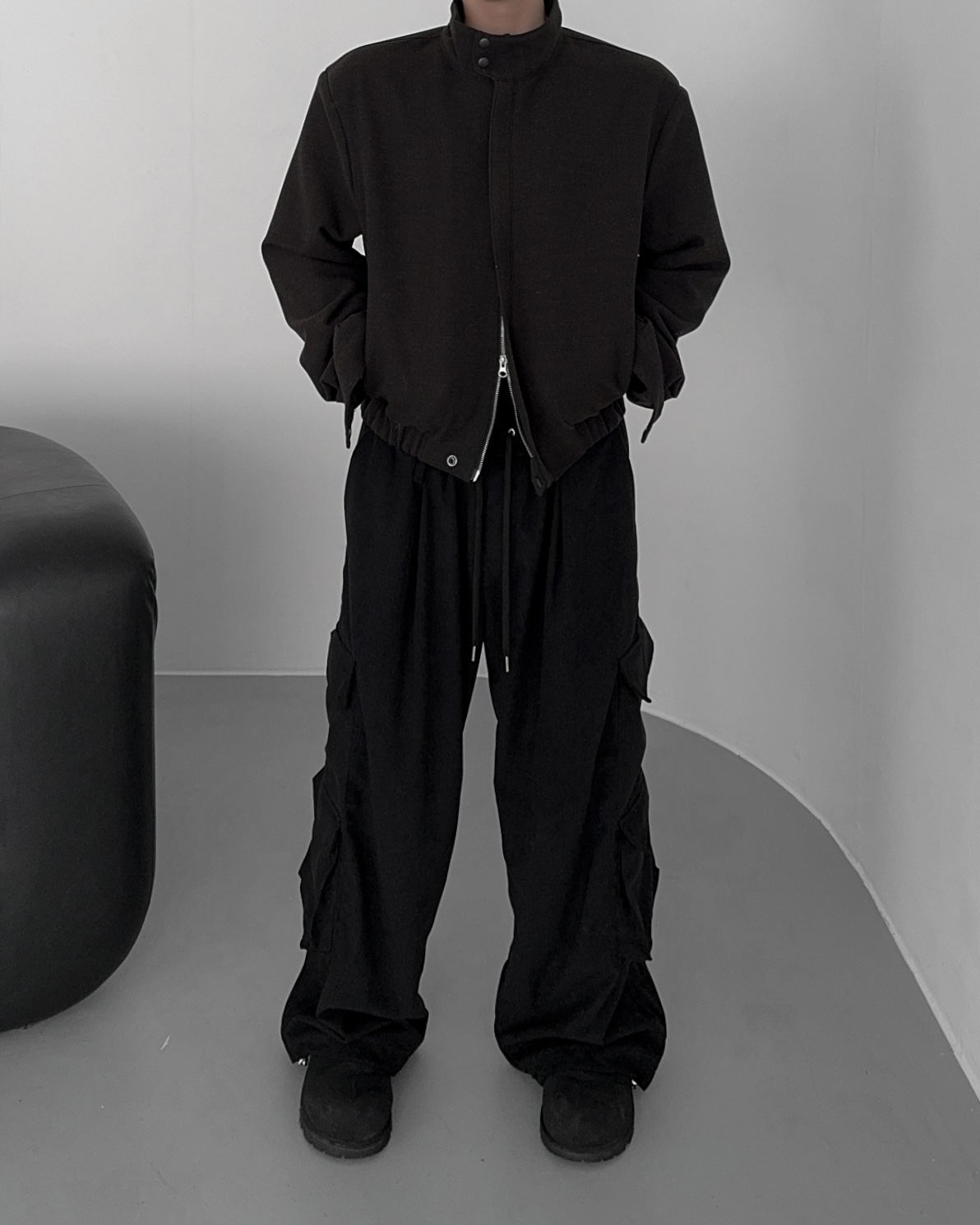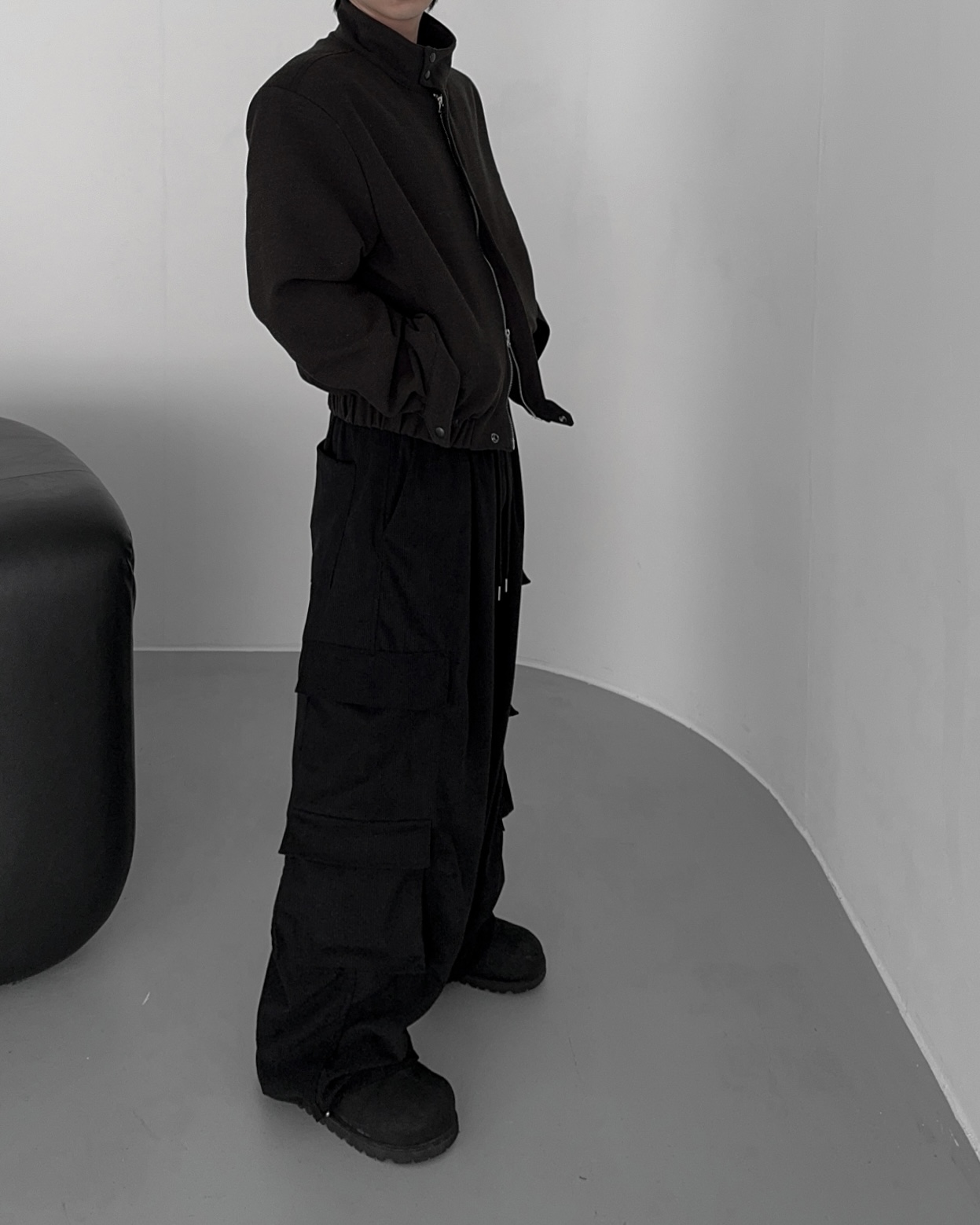 -밑단 시보리 , 스냅단추로 안정된 핏감