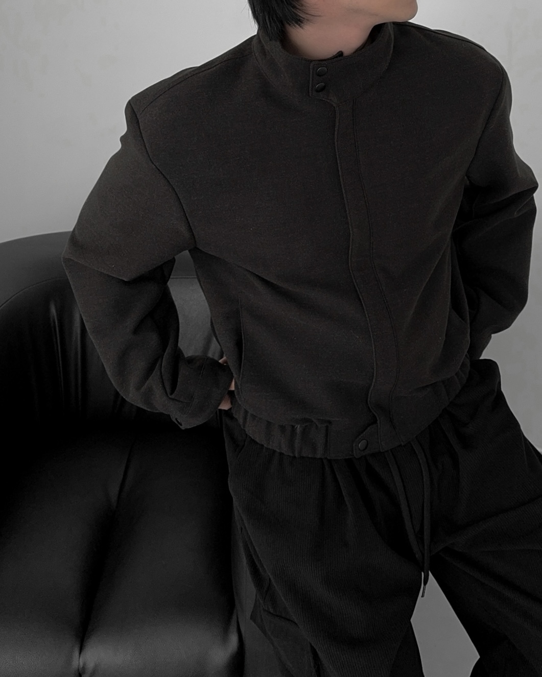 -넥라인 스냅 버튼으로 하이넥 연출 가능
