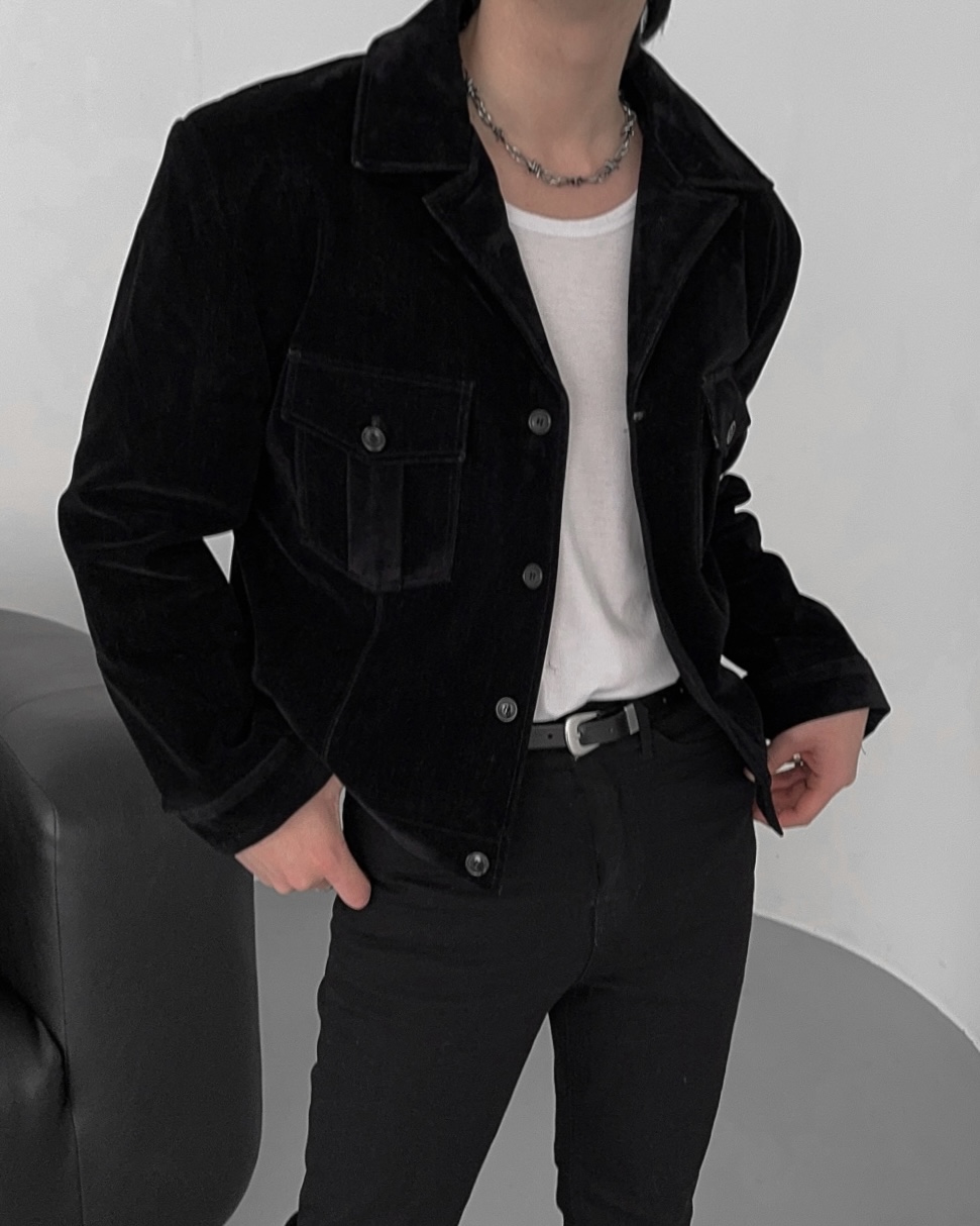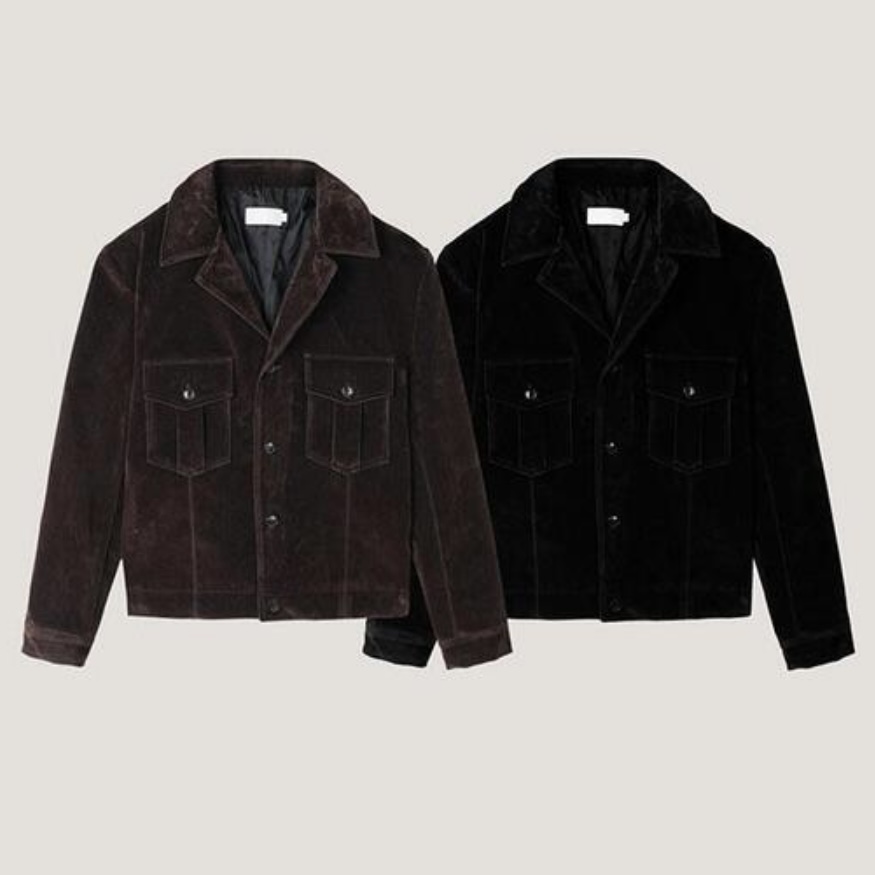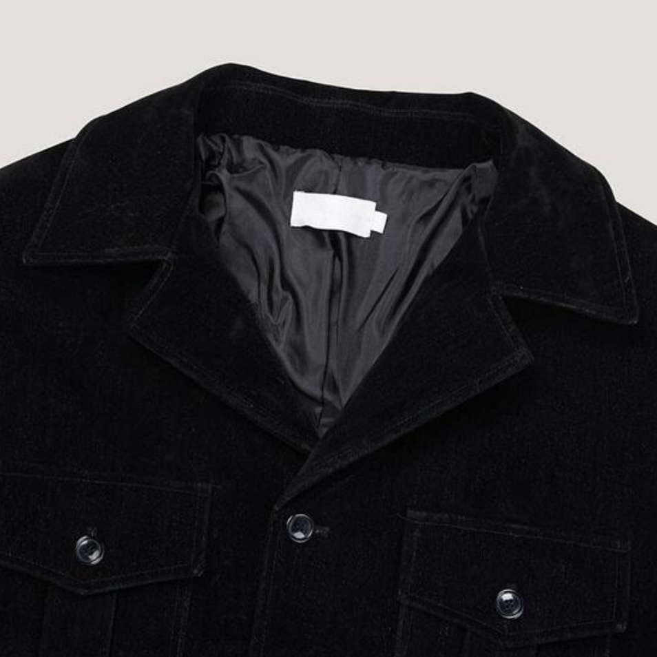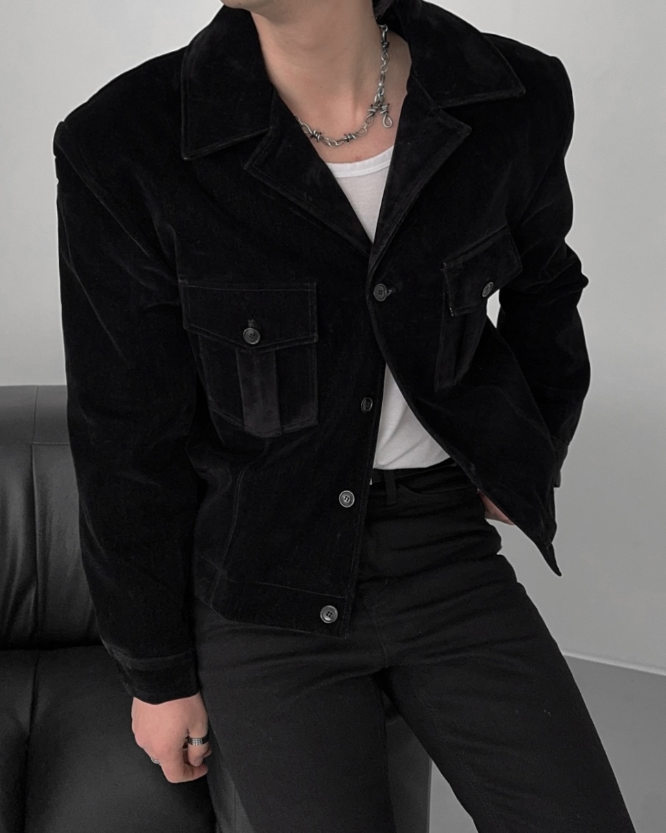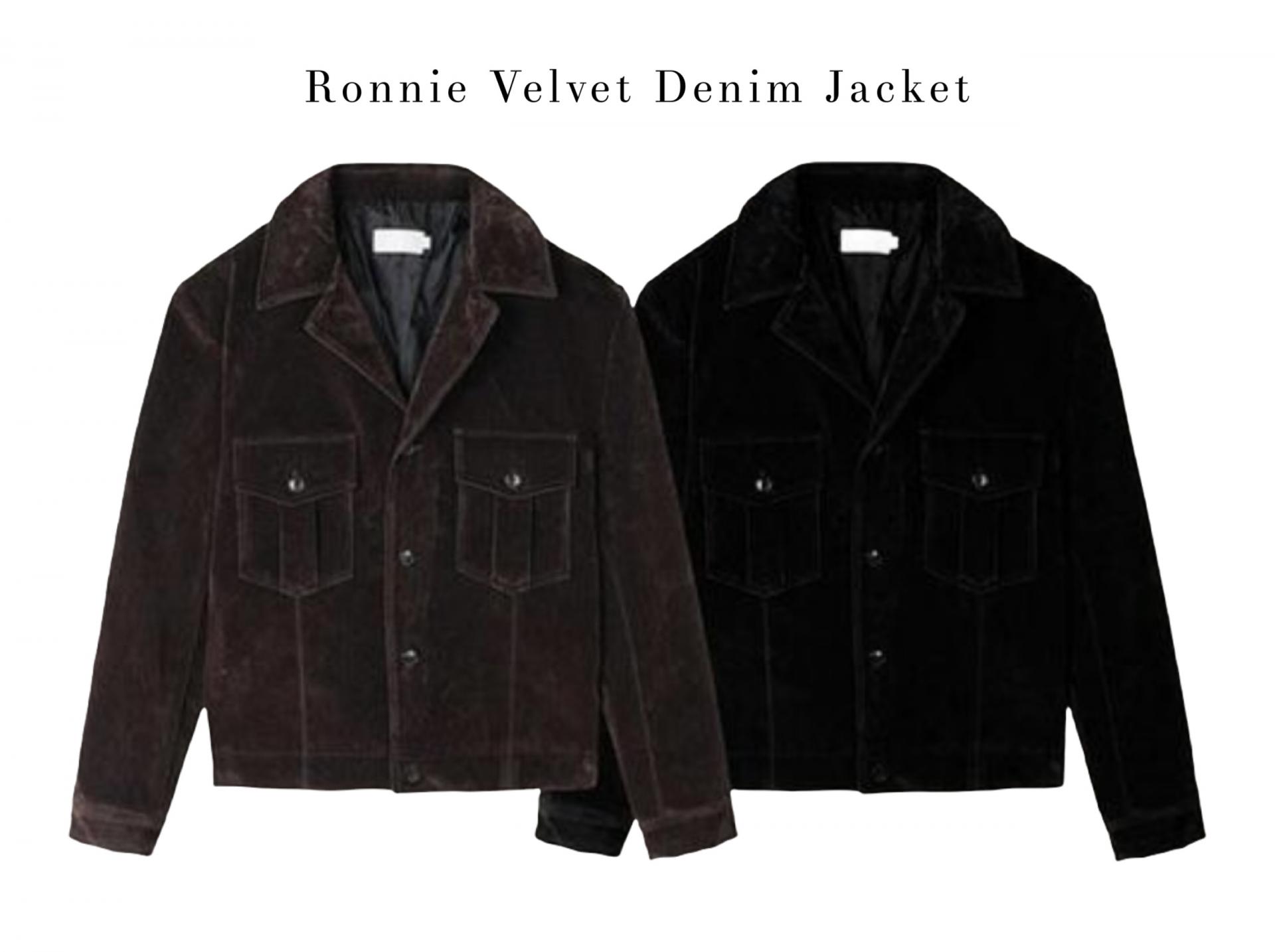 -탄탄한 데님 소재로 제작된 벨벳 질감의 자켓
