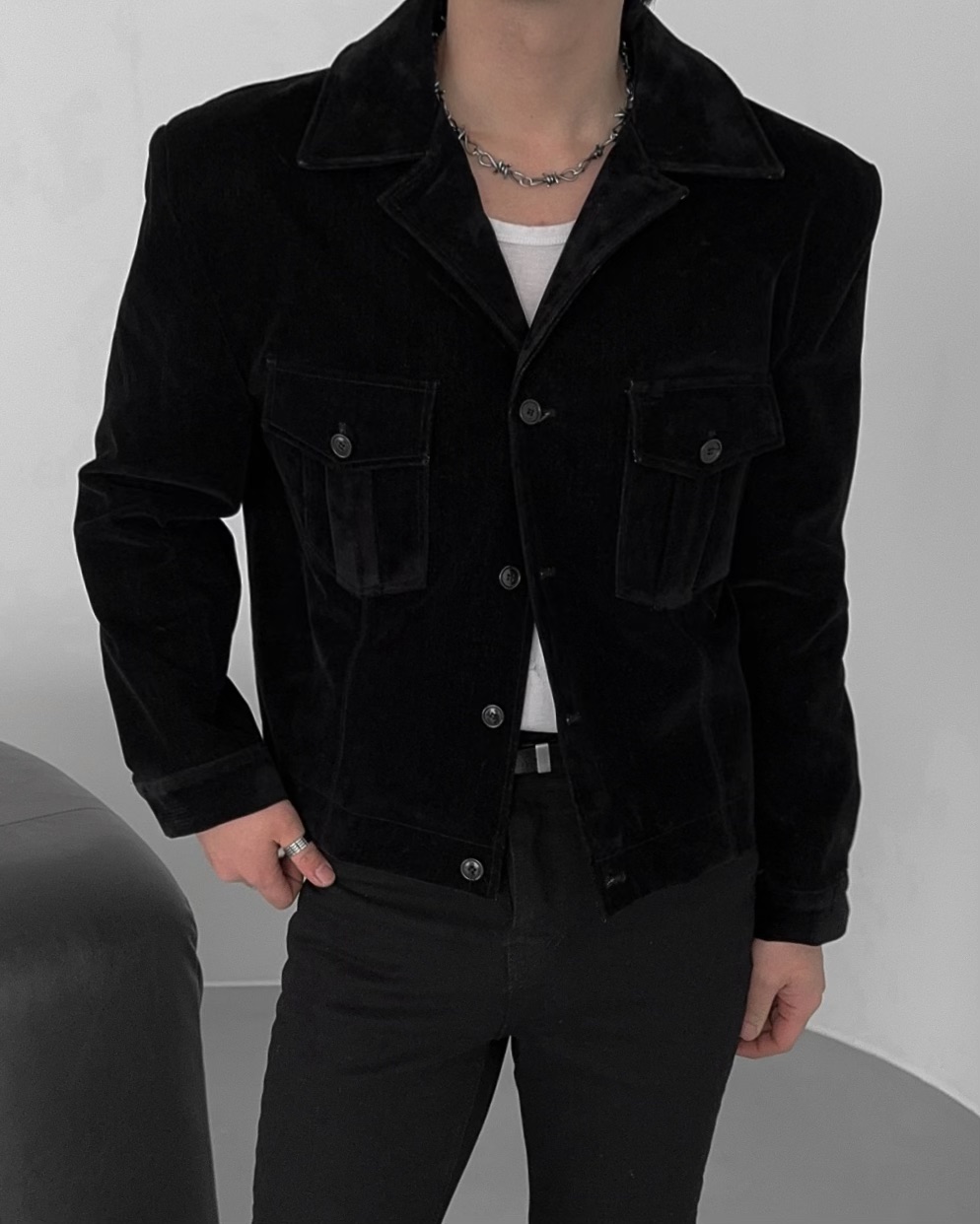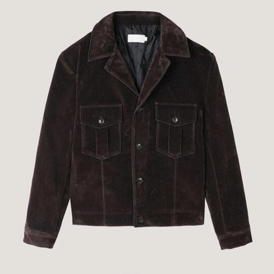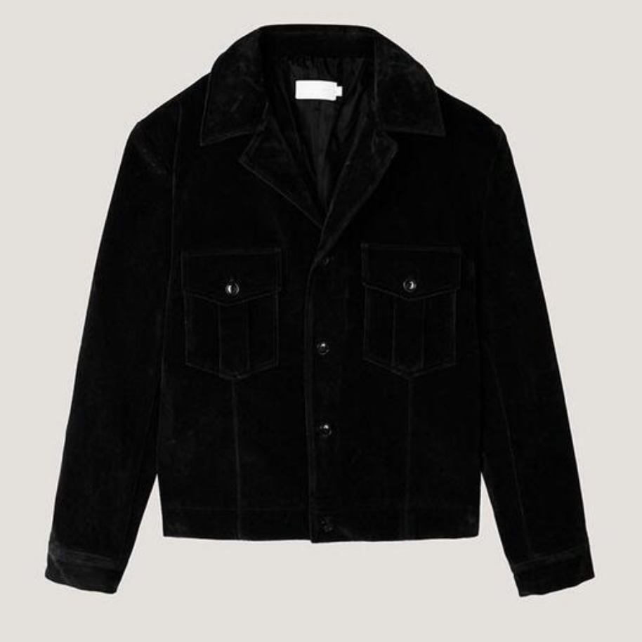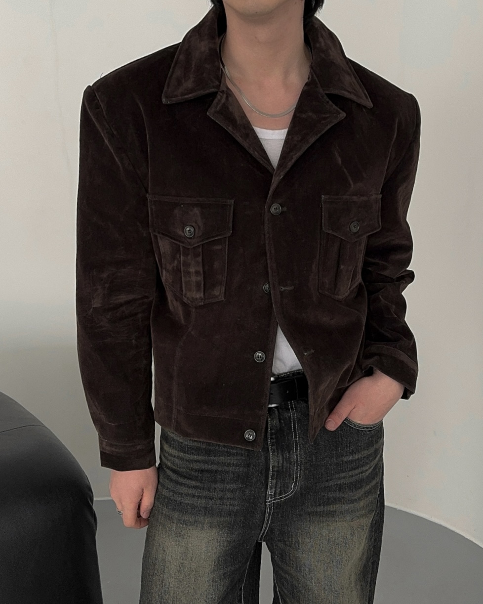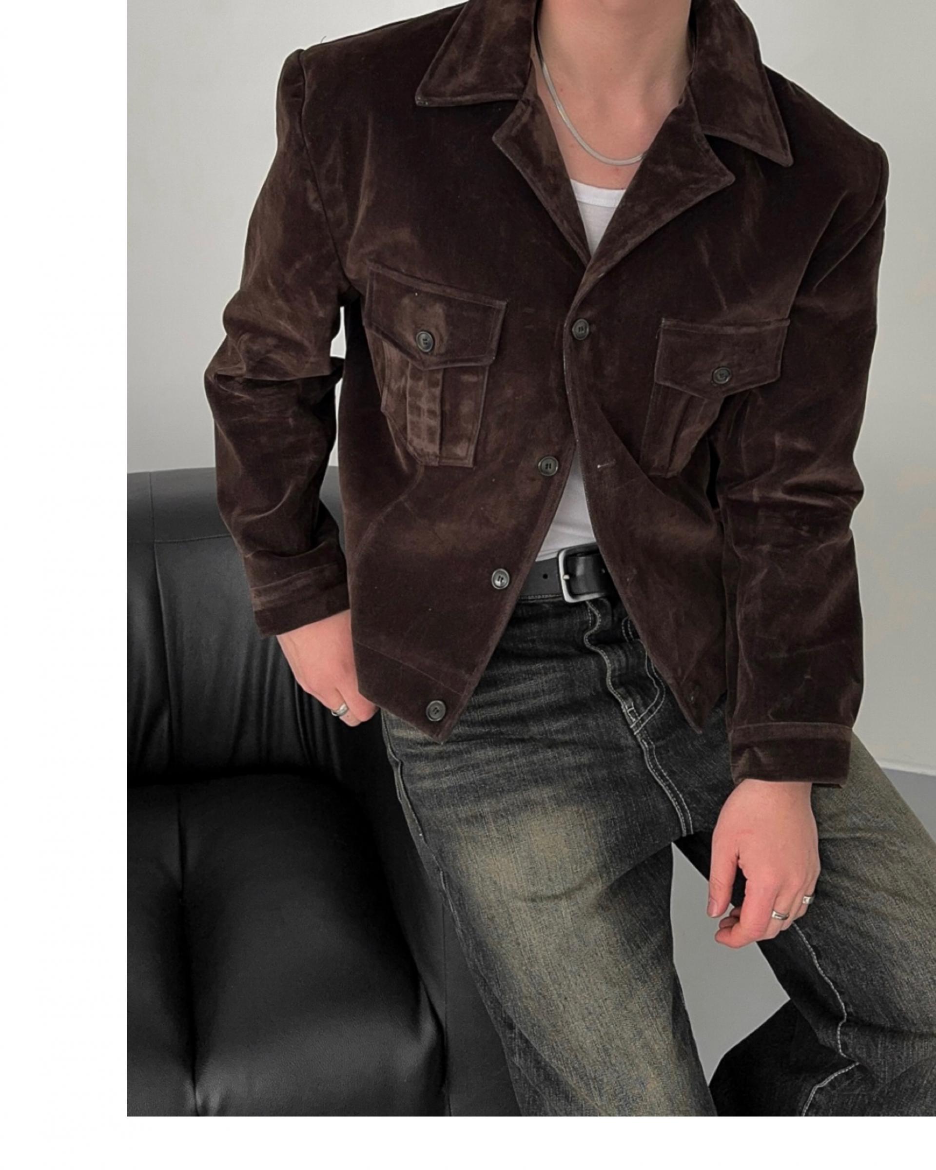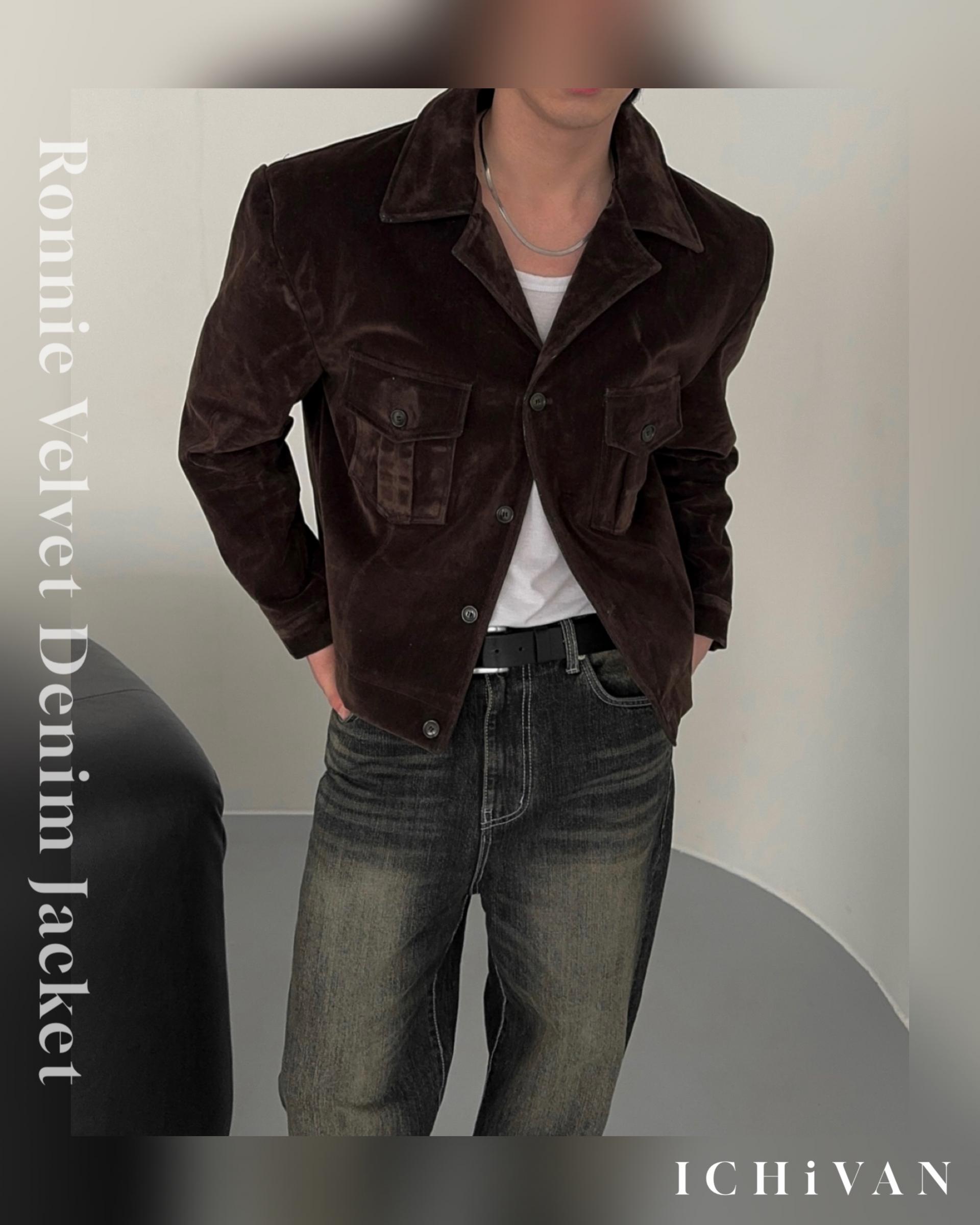 -탄탄한 데님 소재로 제작된 벨벳 질감의 자켓