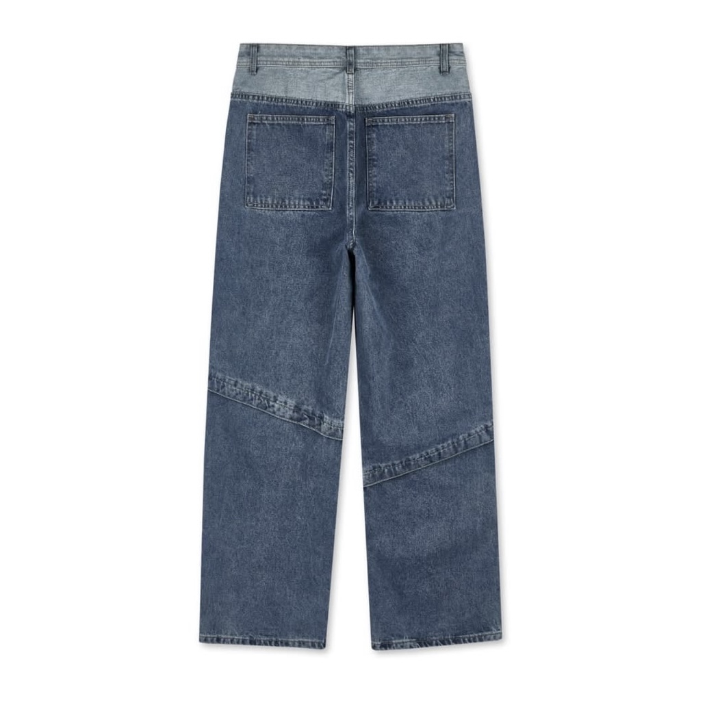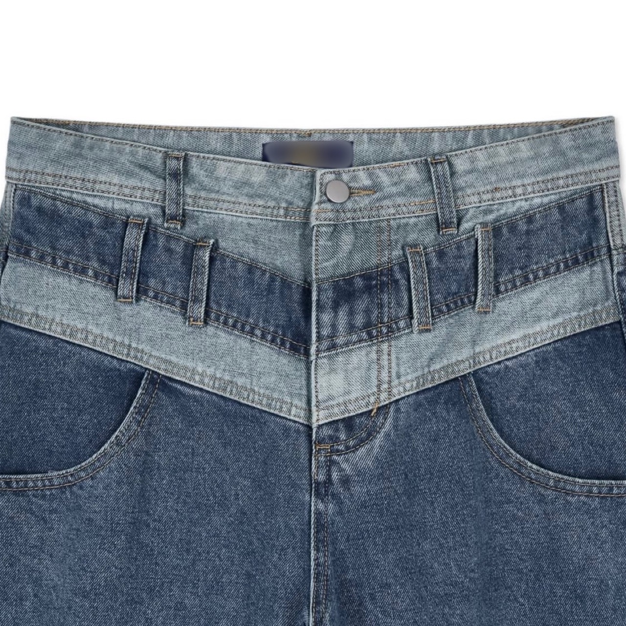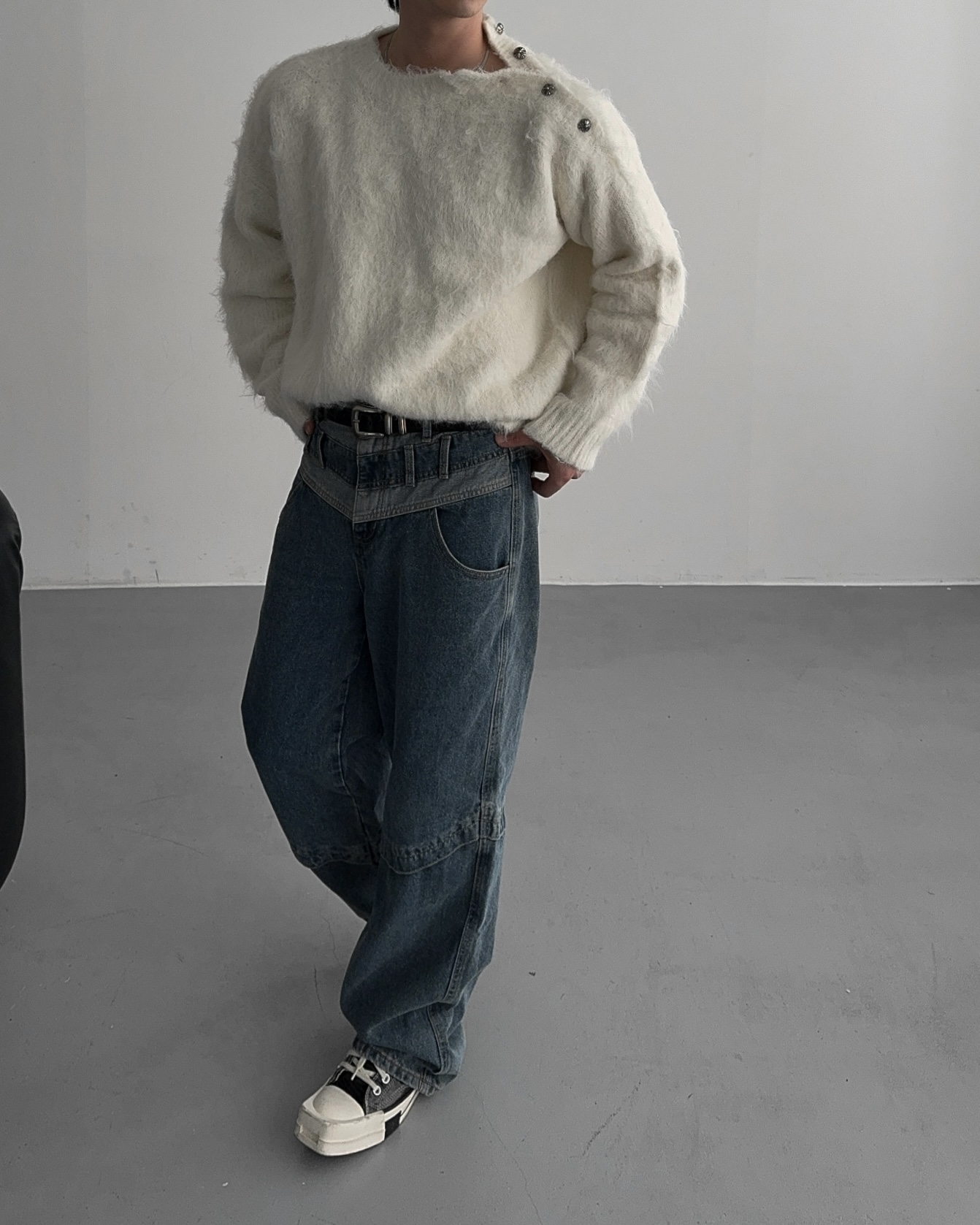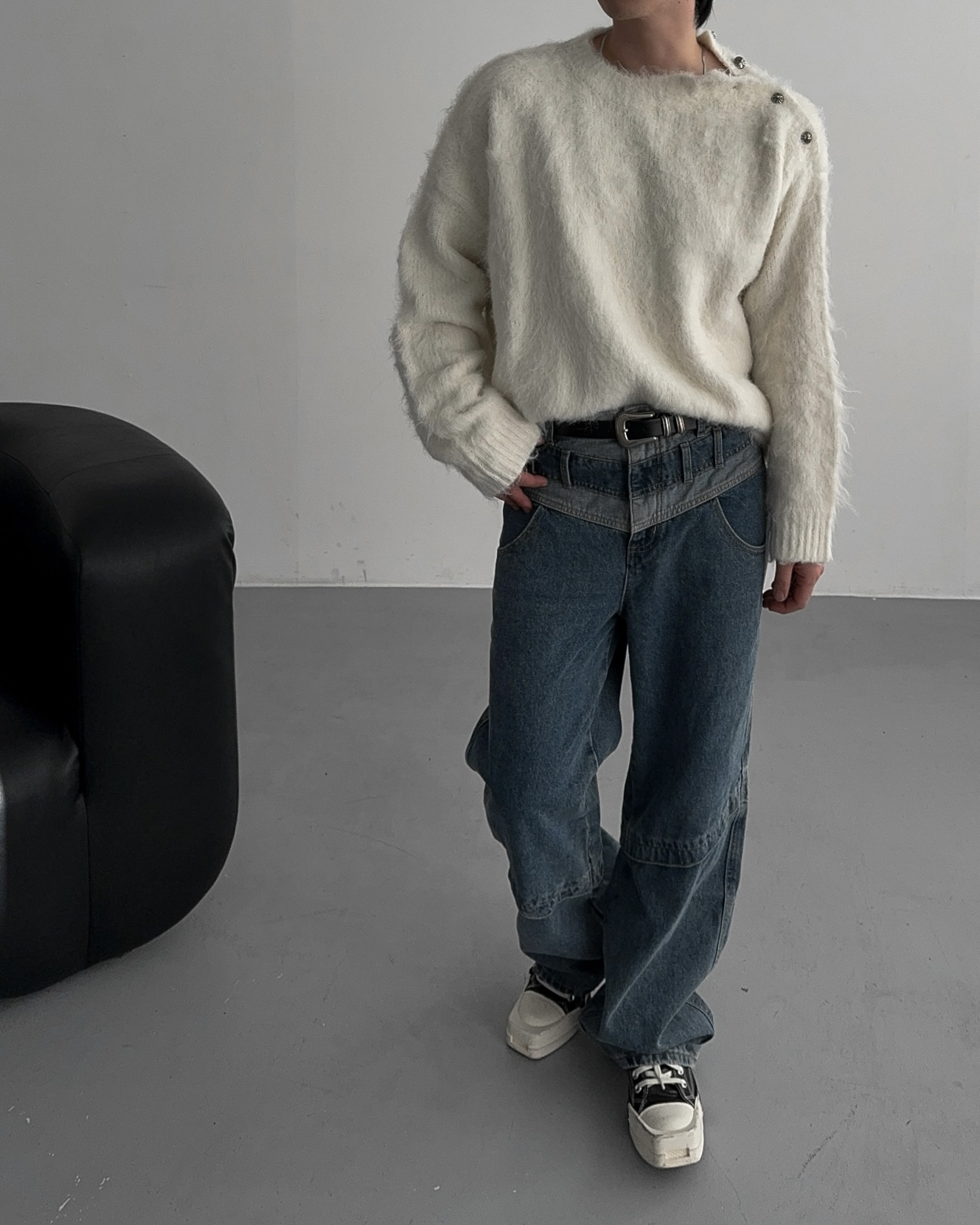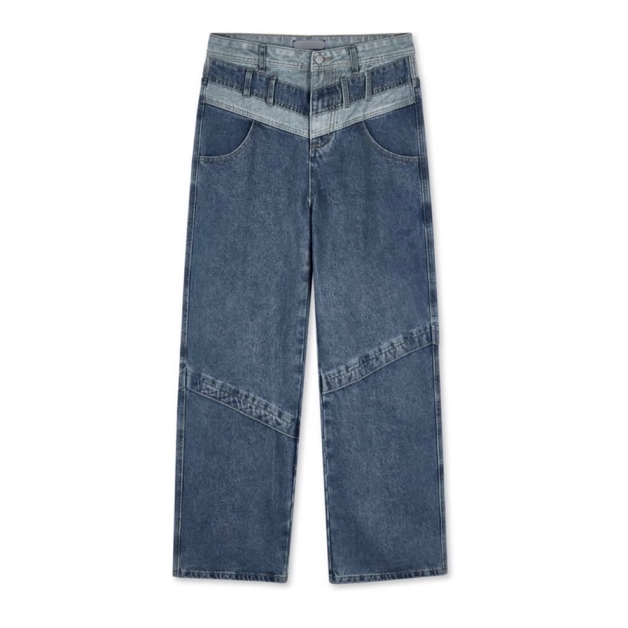 -벨트 레이어드 라인 연출의 데님 팬츠