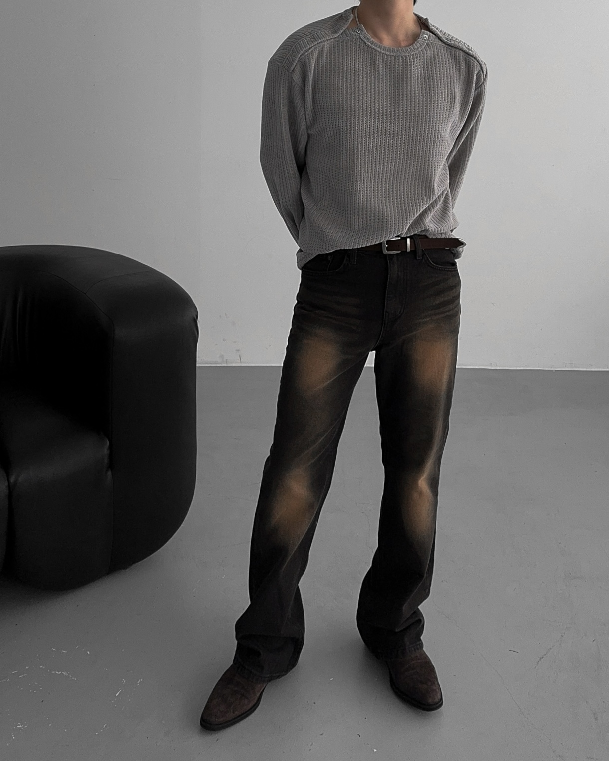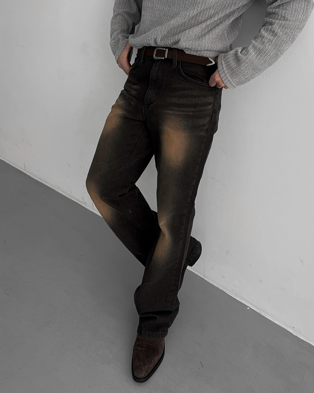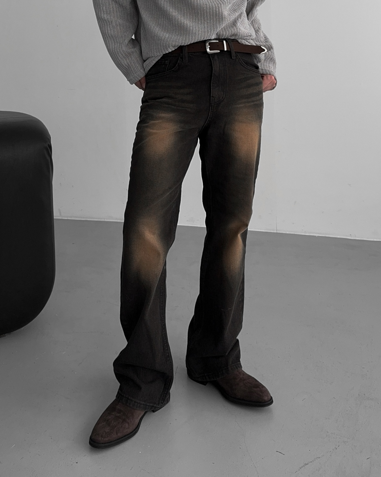 -탄탄한 데님 원단의 세미부츠컷 팬츠