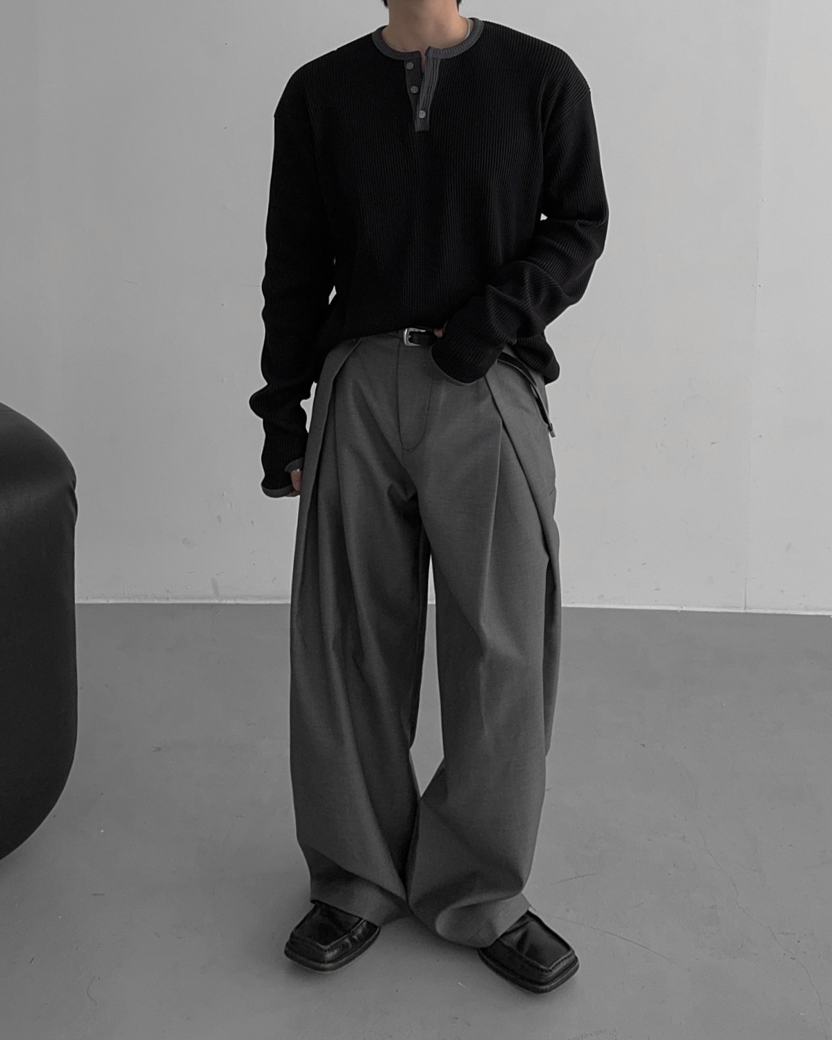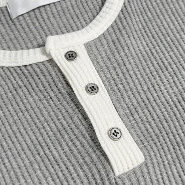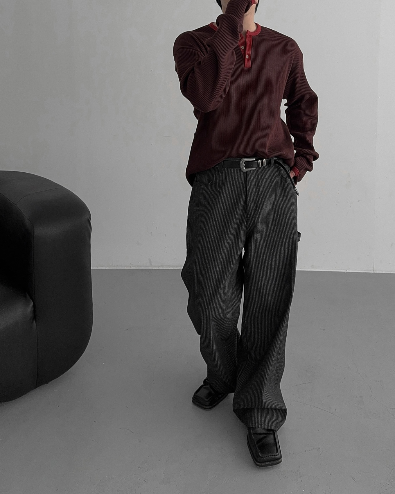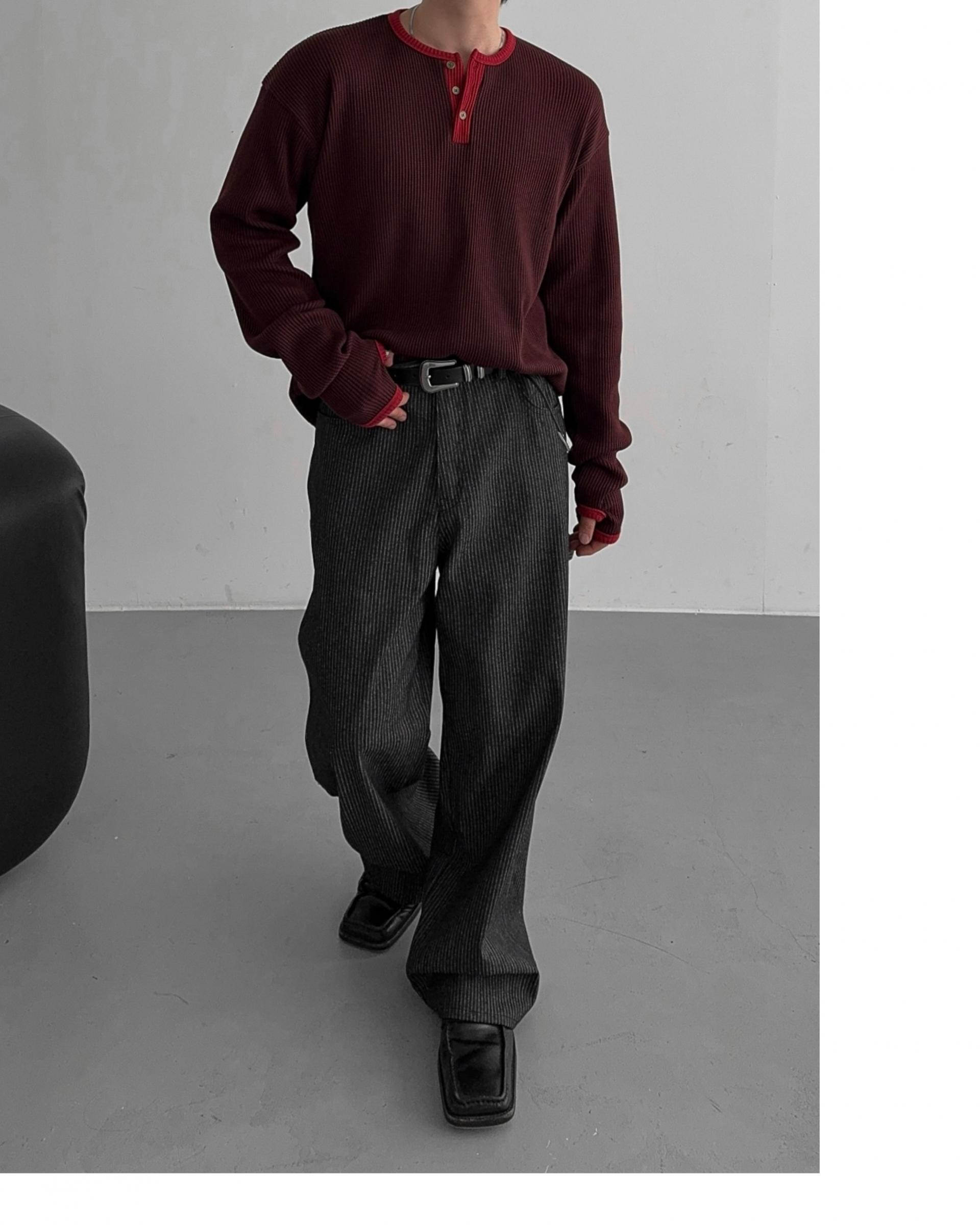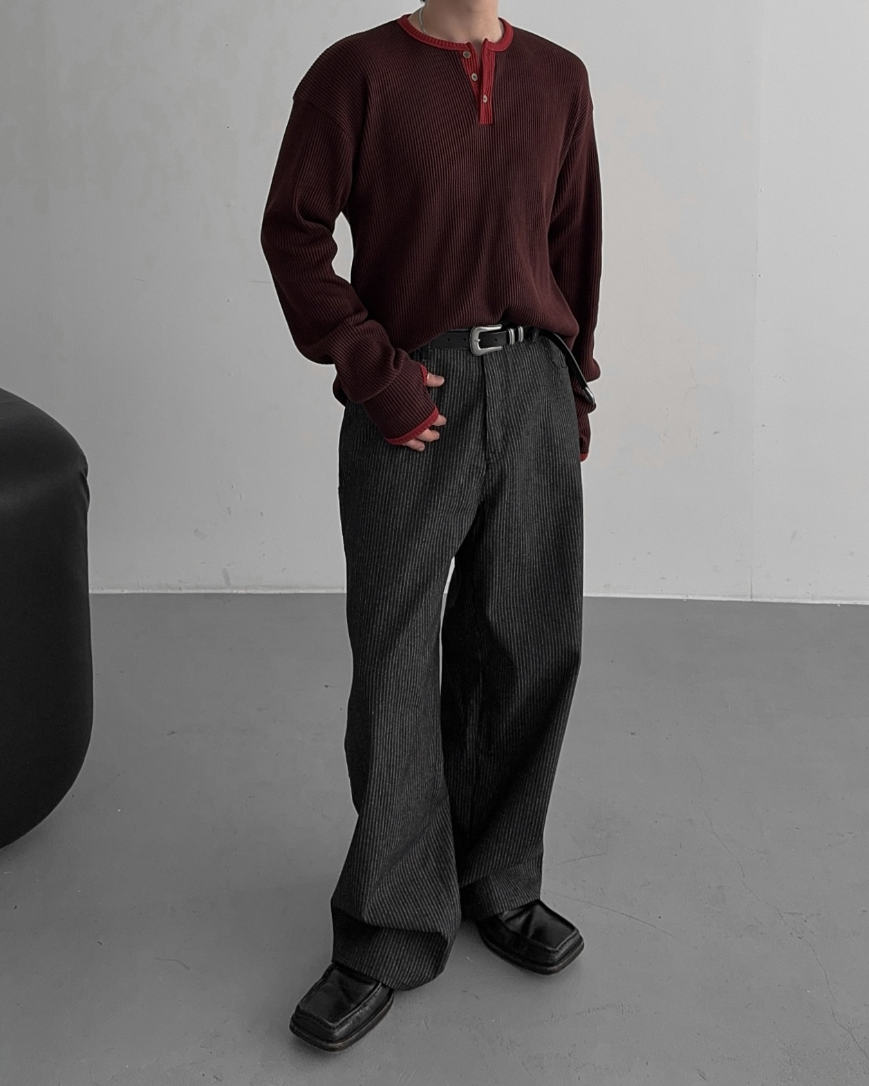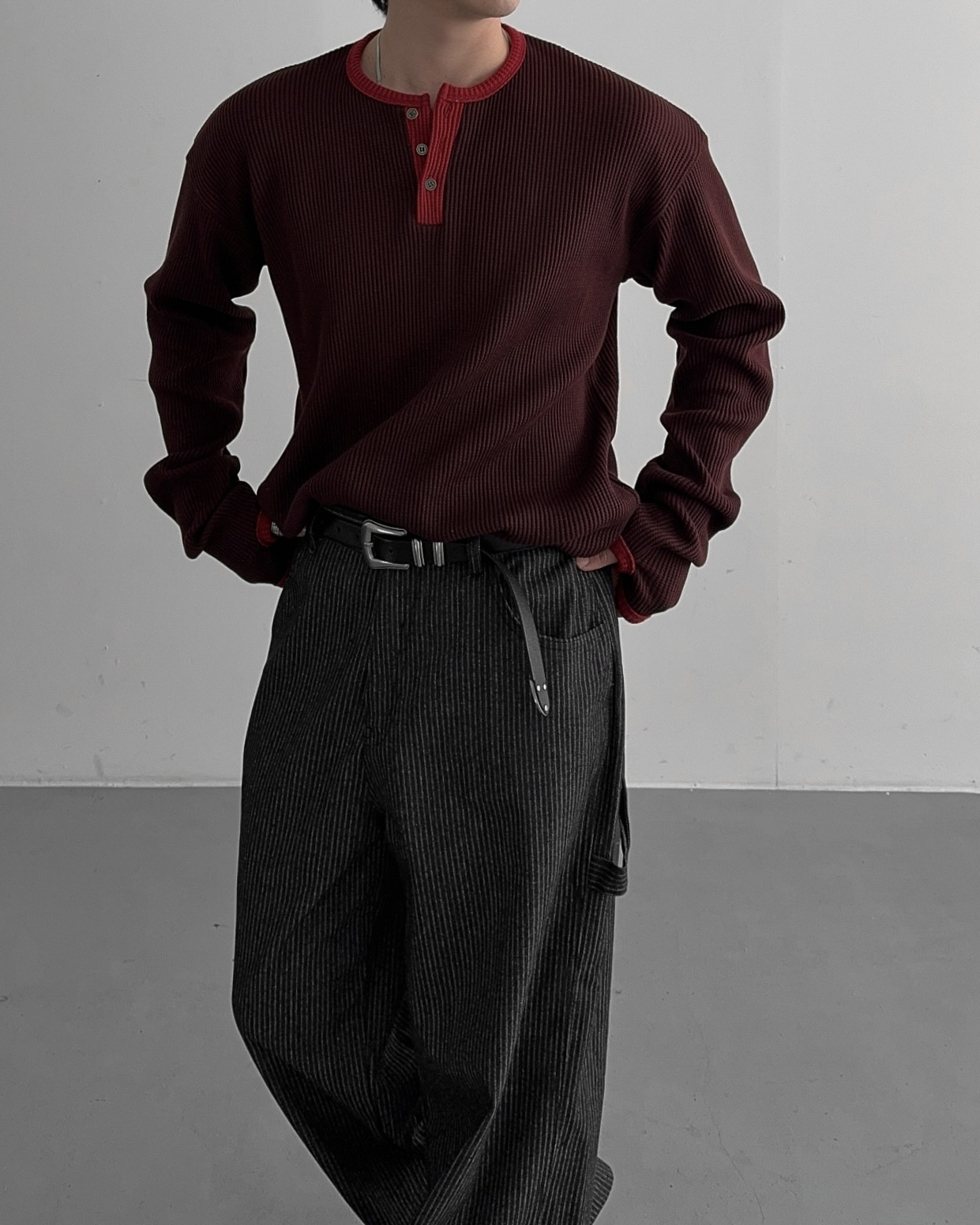 -촘촘한 와플 소재의 헨리넥 티셔츠
