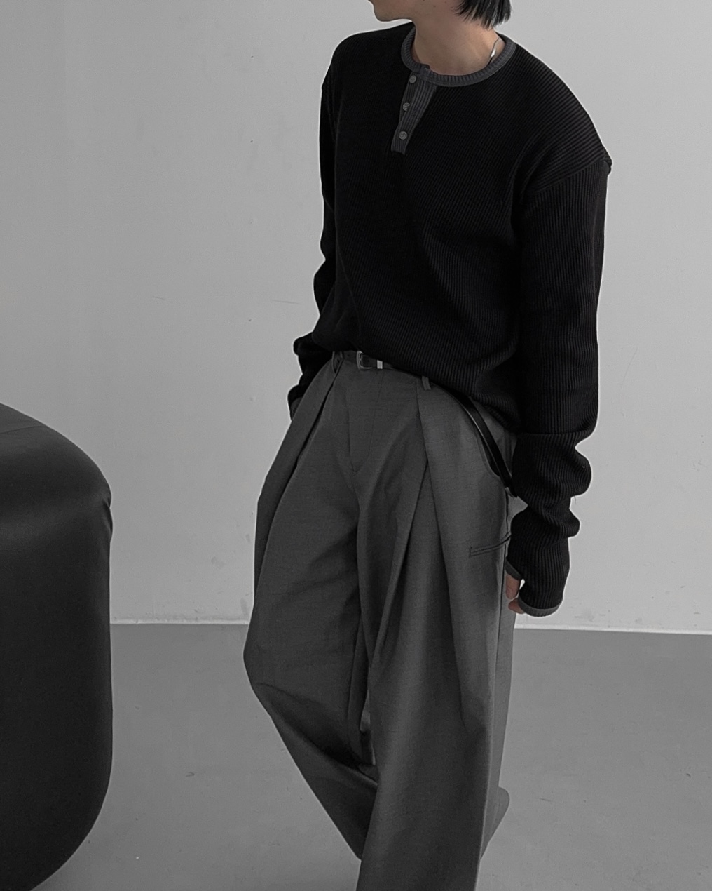 -헨리넥 , 소매 부분 은은한 배색 디테일