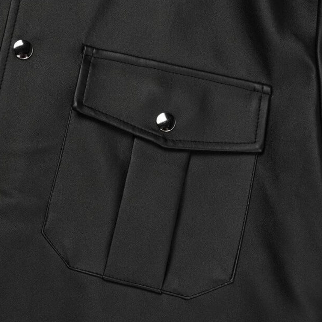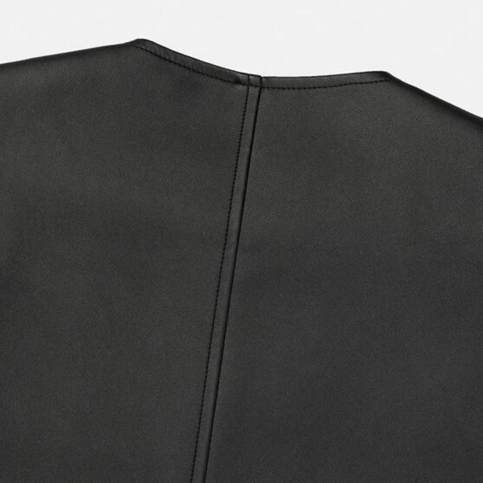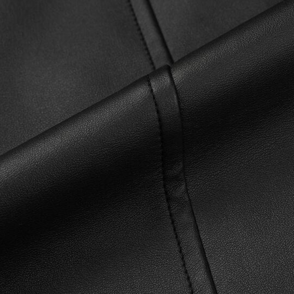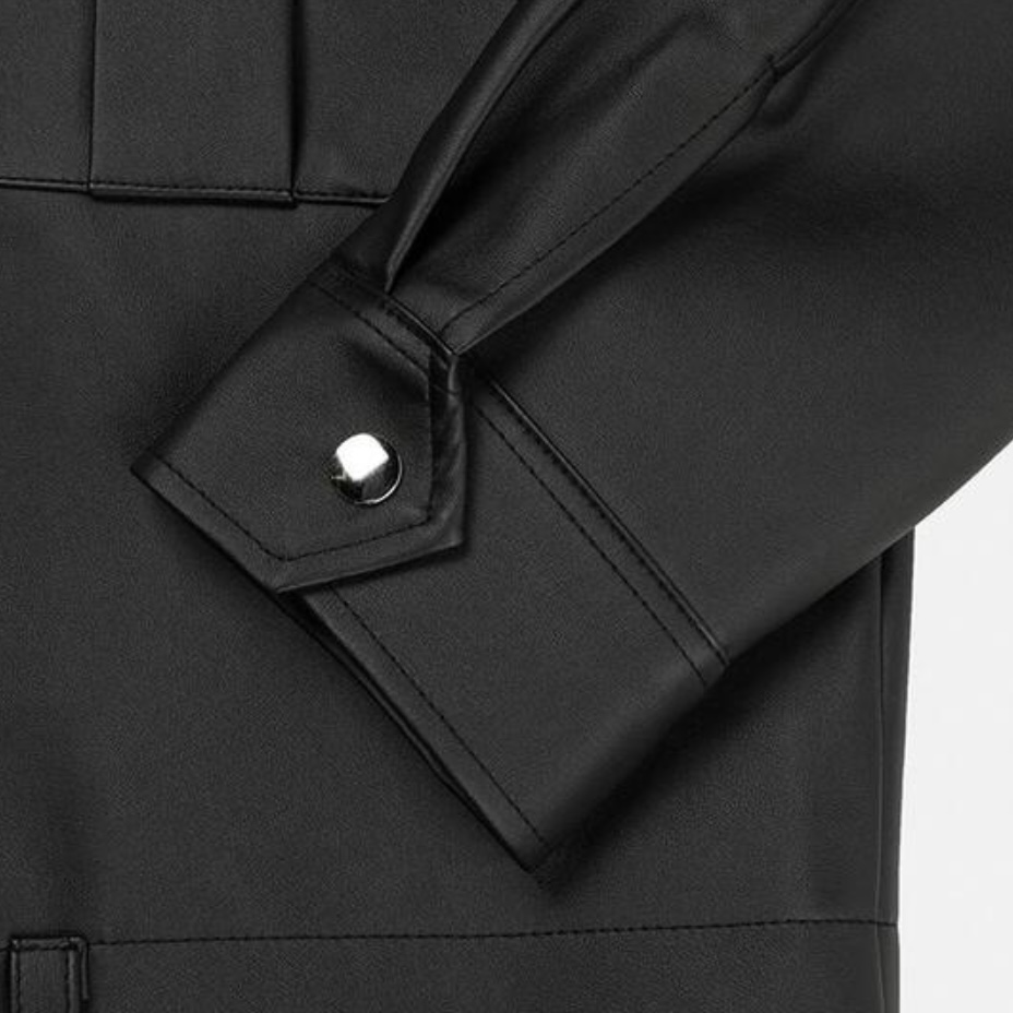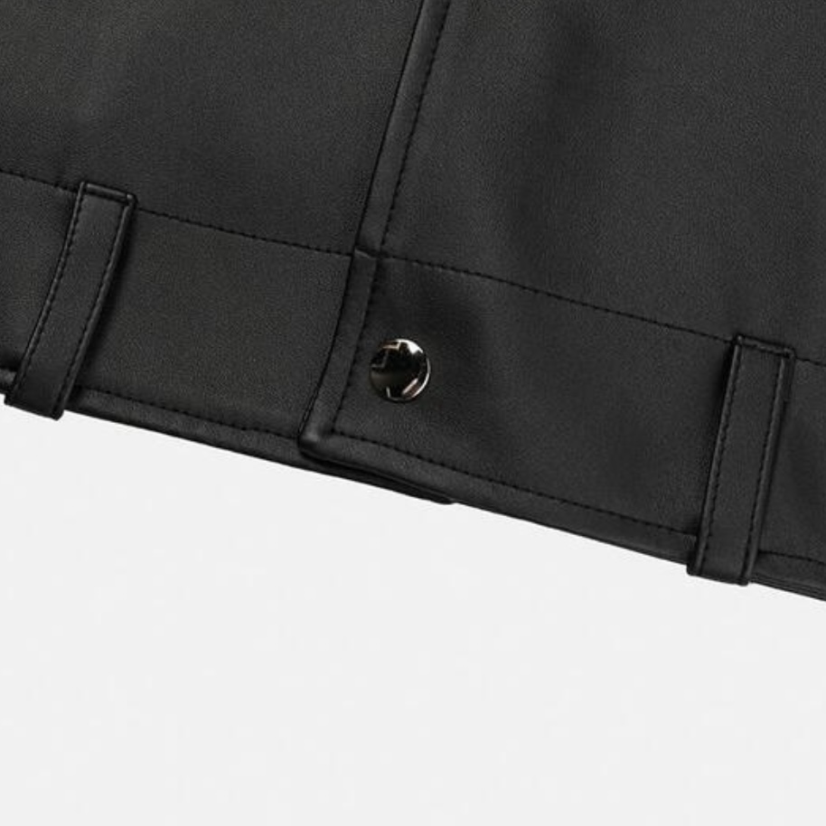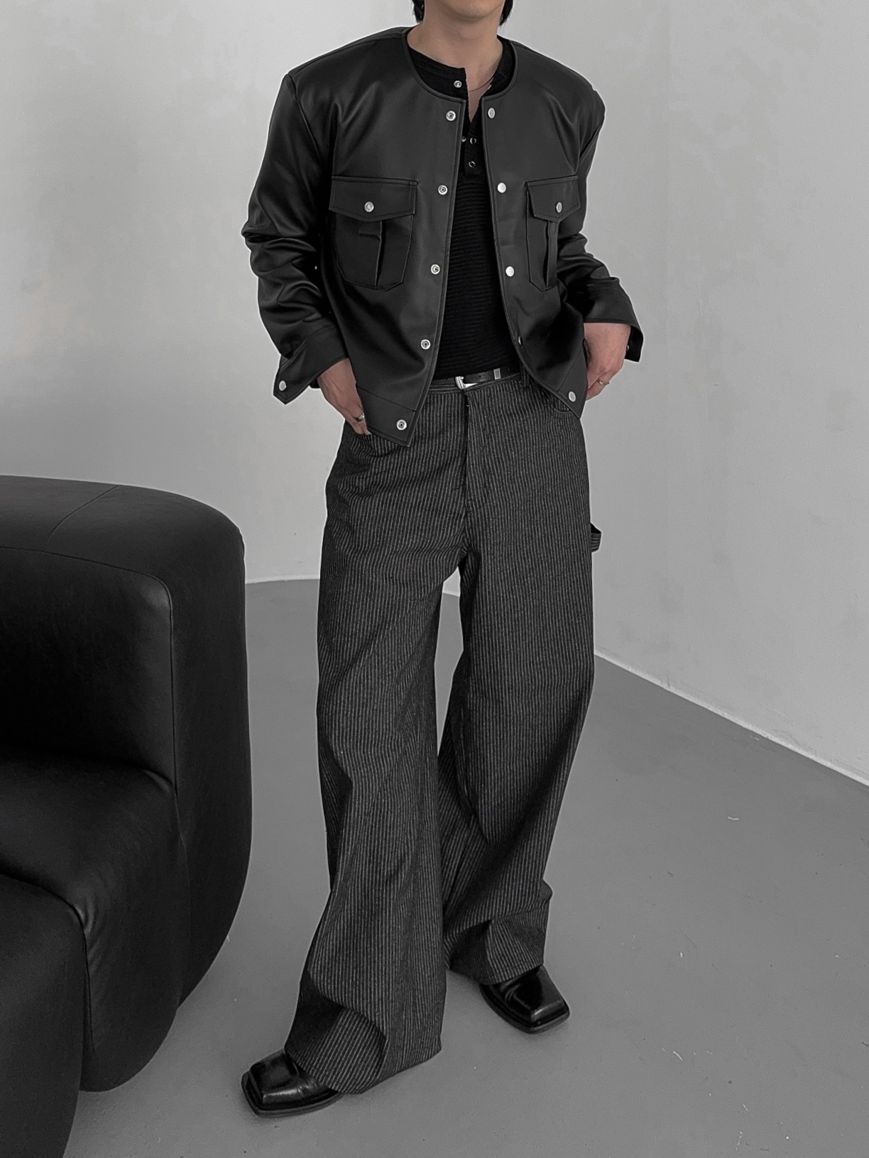-깔끔한 카라리스 라운드넥 디자인의 레더 자켓