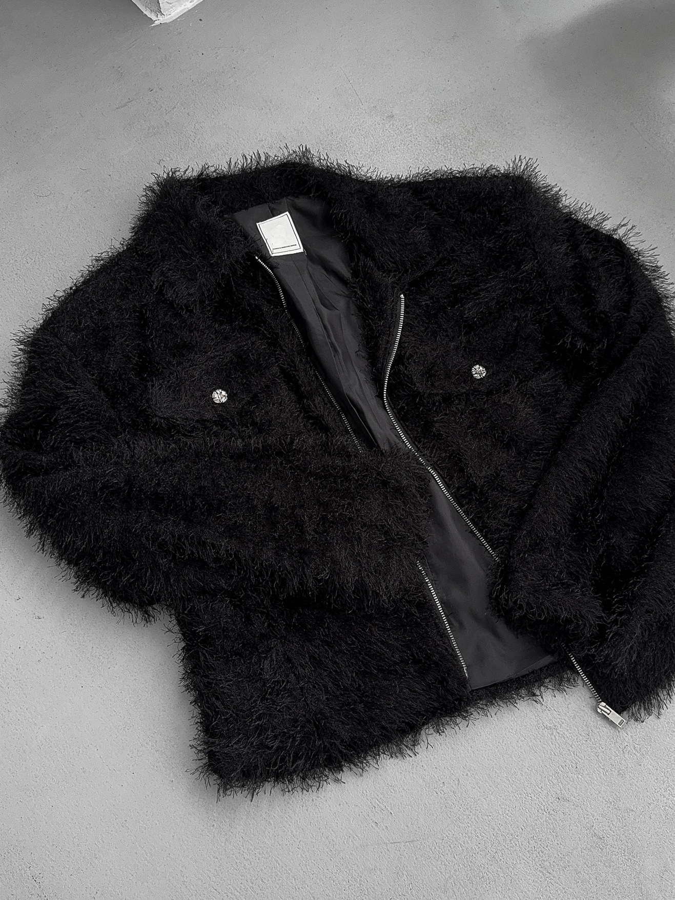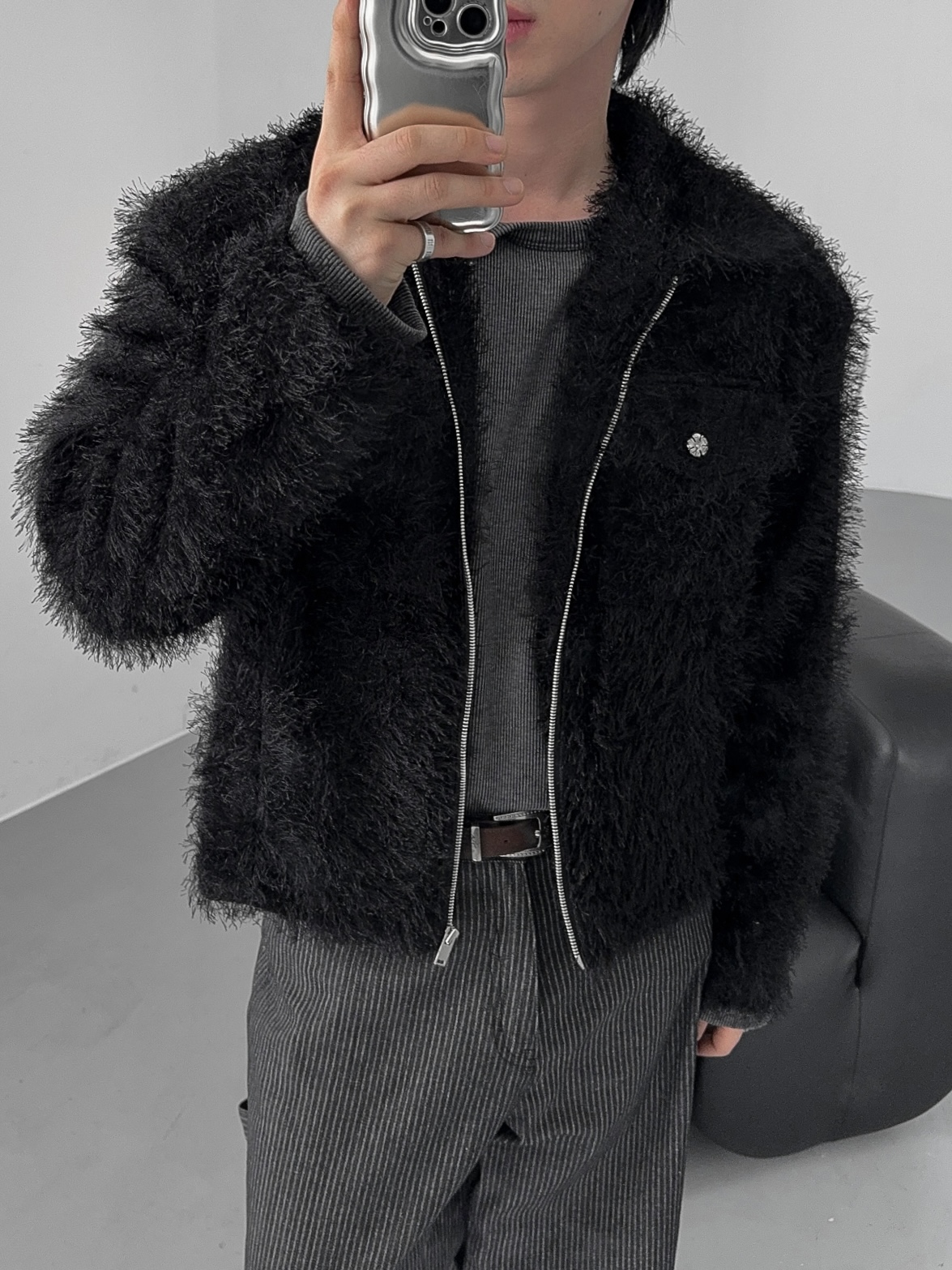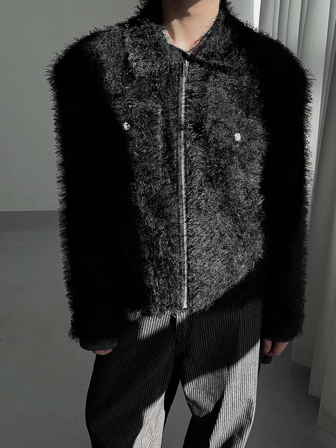 -부드러운 헤어리 소재로 제작된 퍼 자켓
