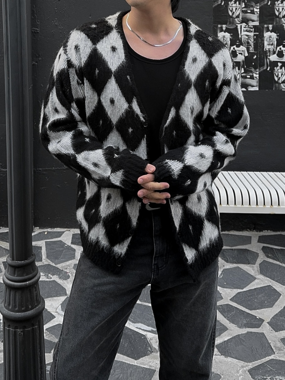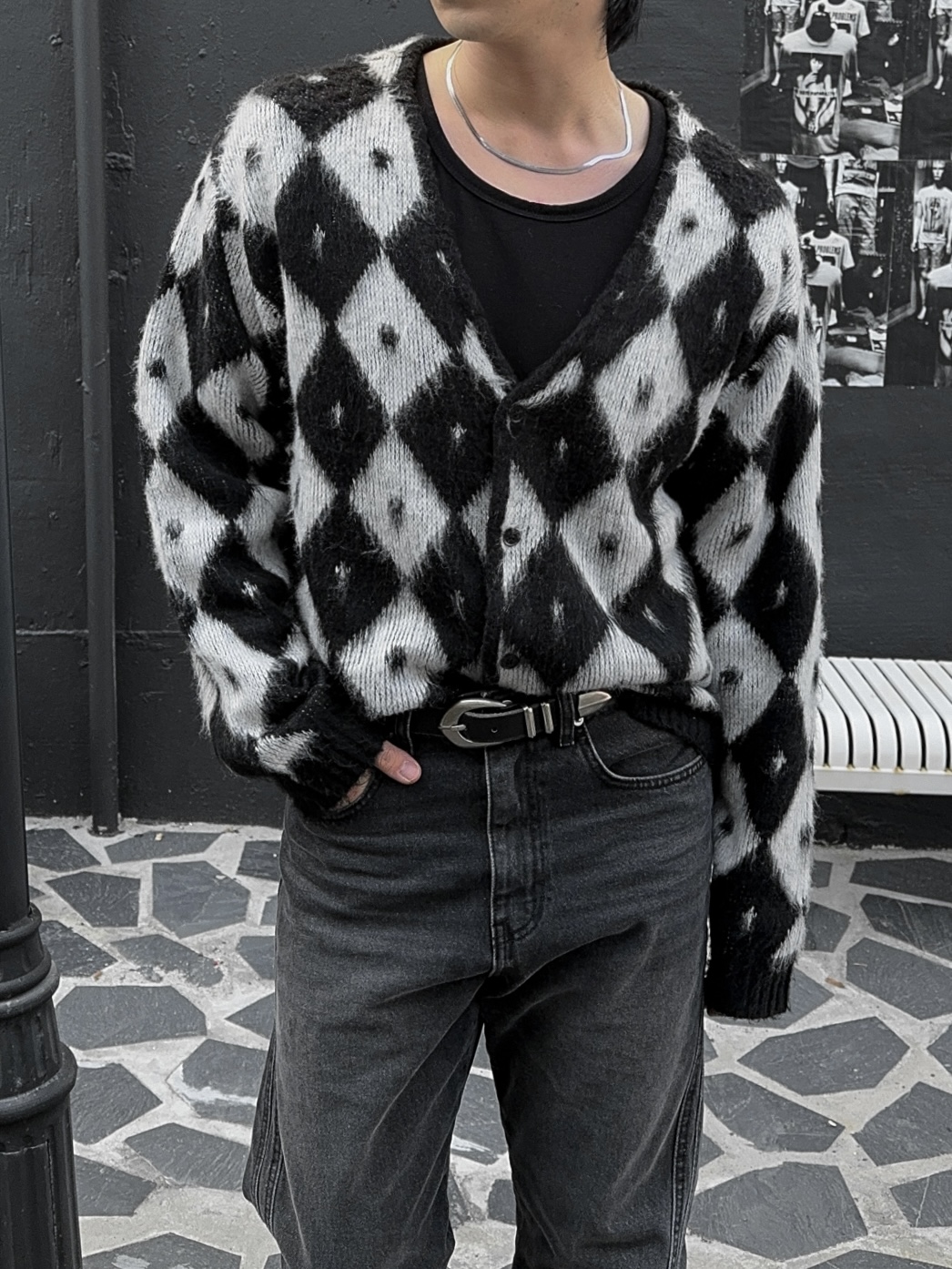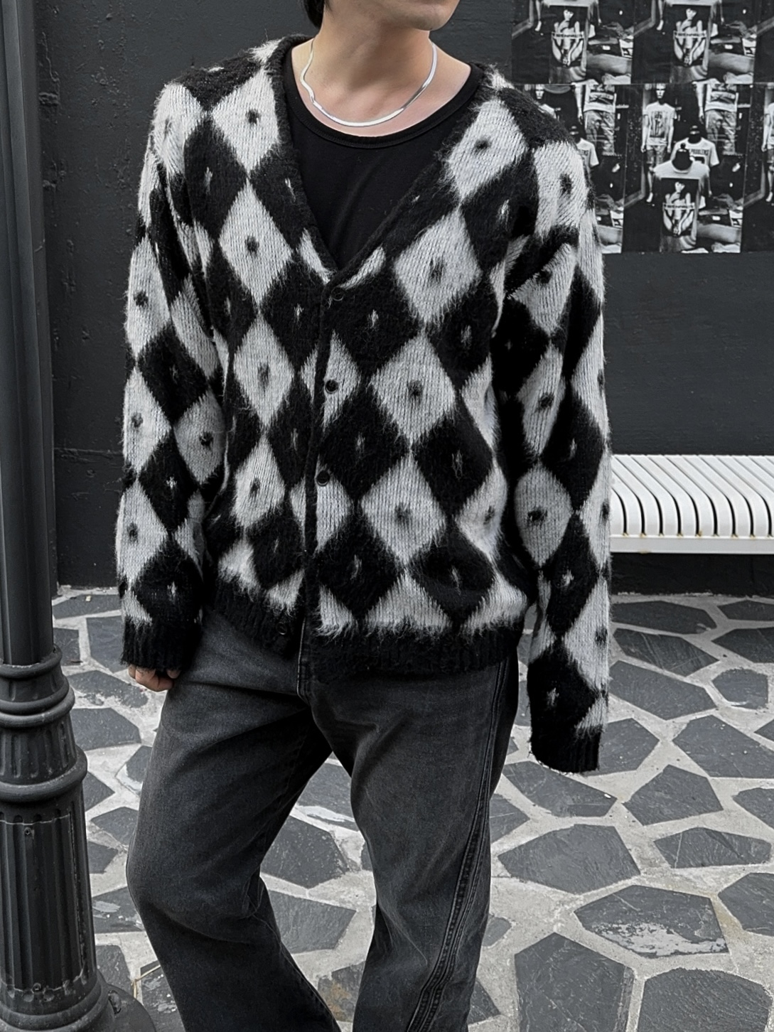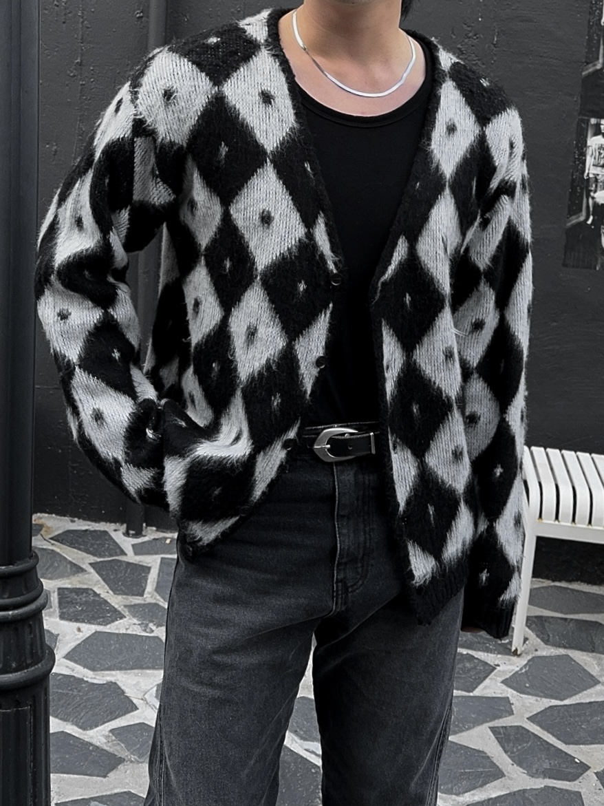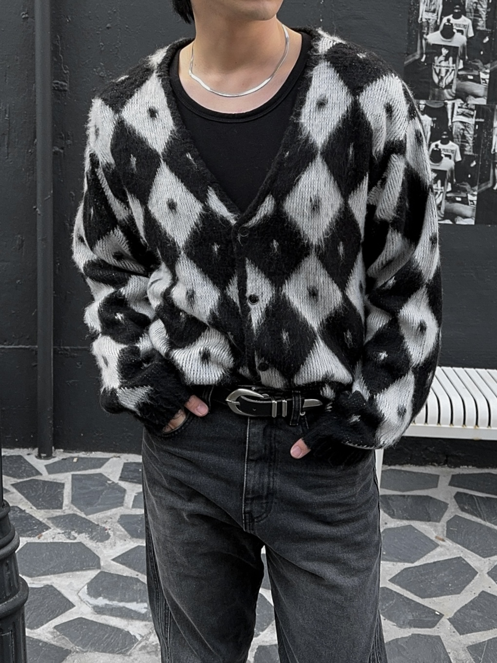 -간절기 포인트로 착용하기 좋은 다이아 패턴 가디건