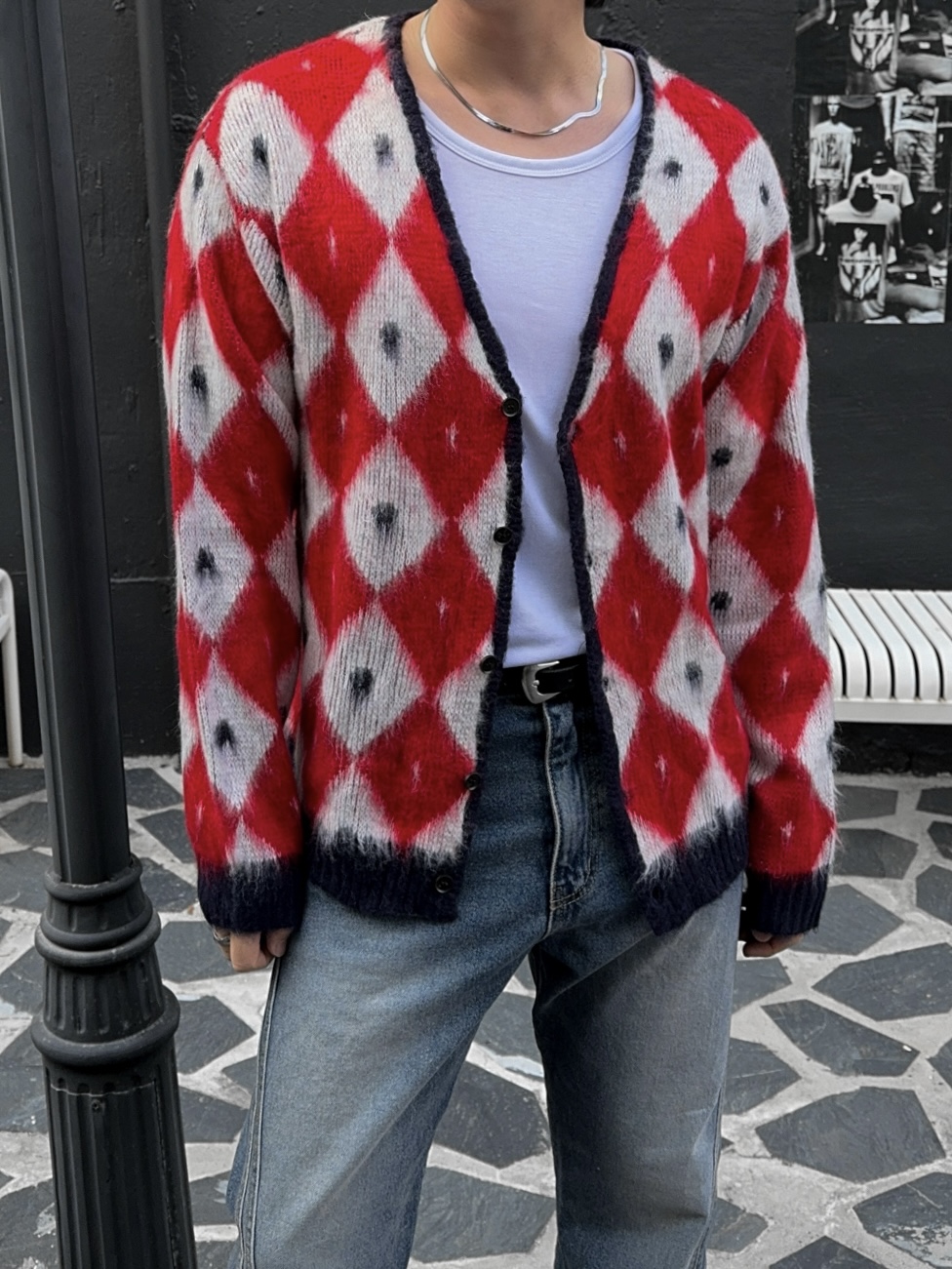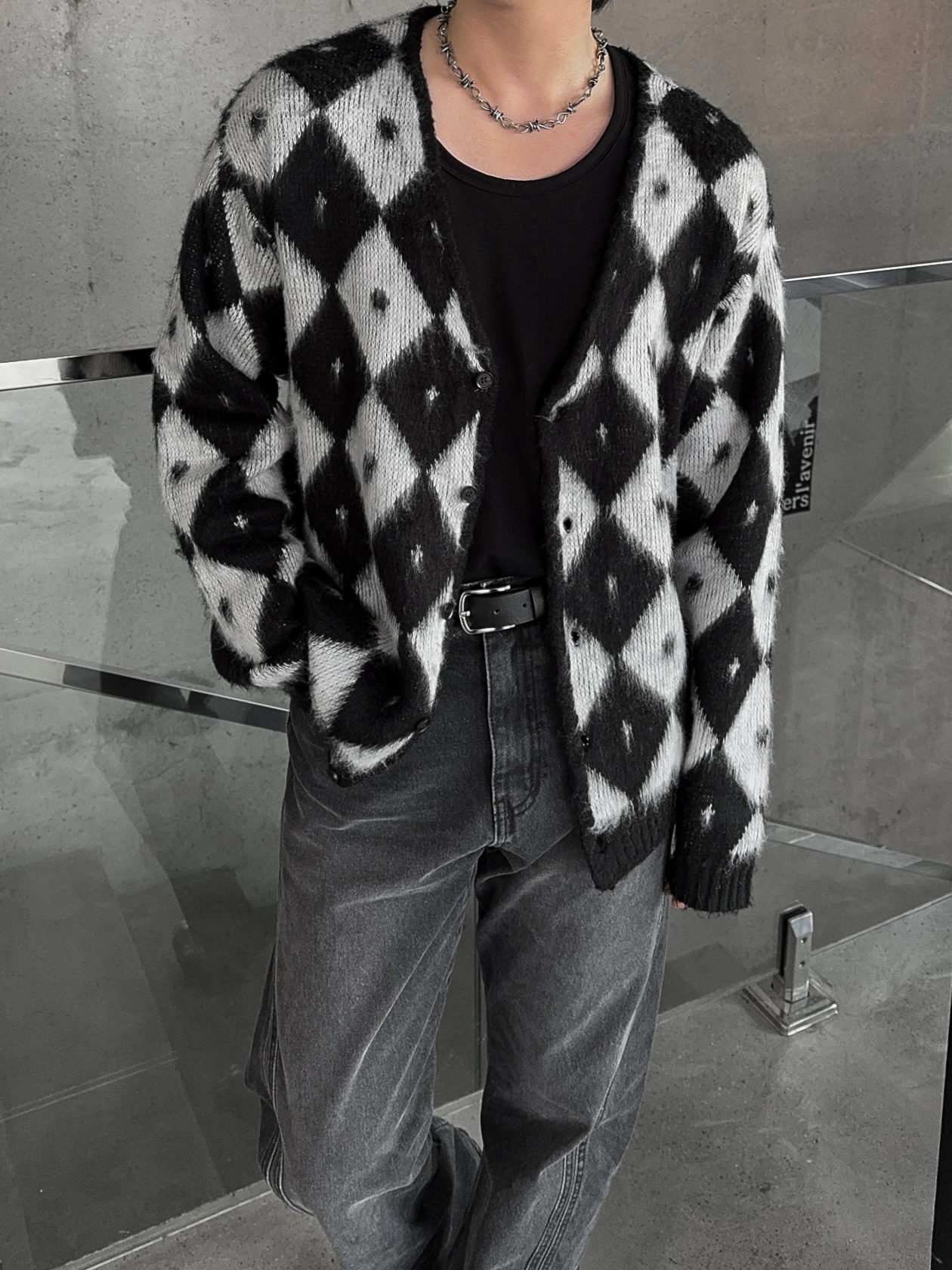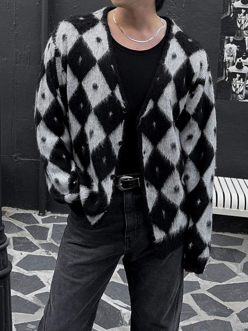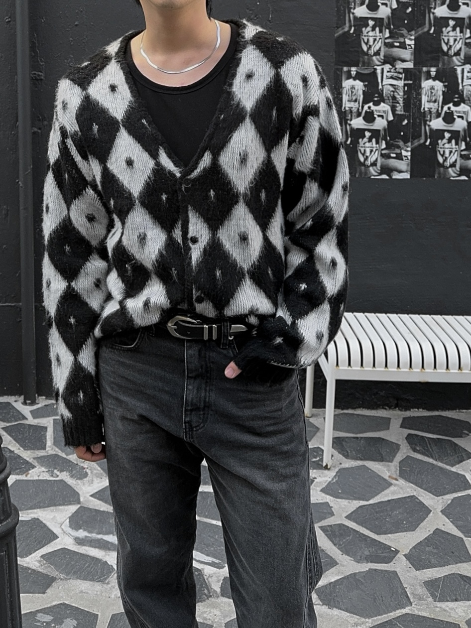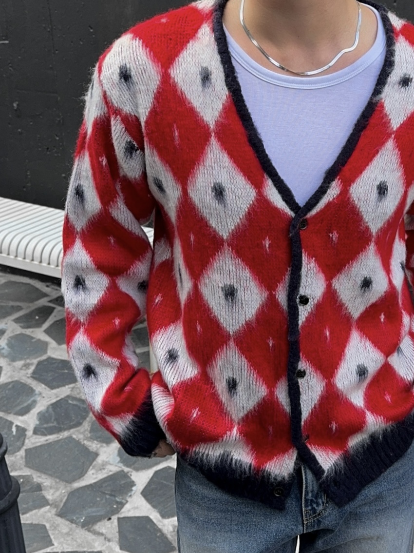 -간절기 포인트로 착용하기 좋은 다이아 패턴 가디건