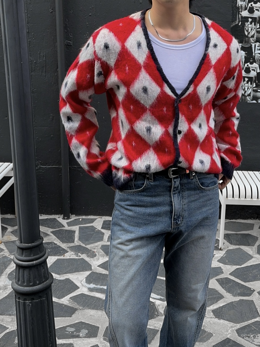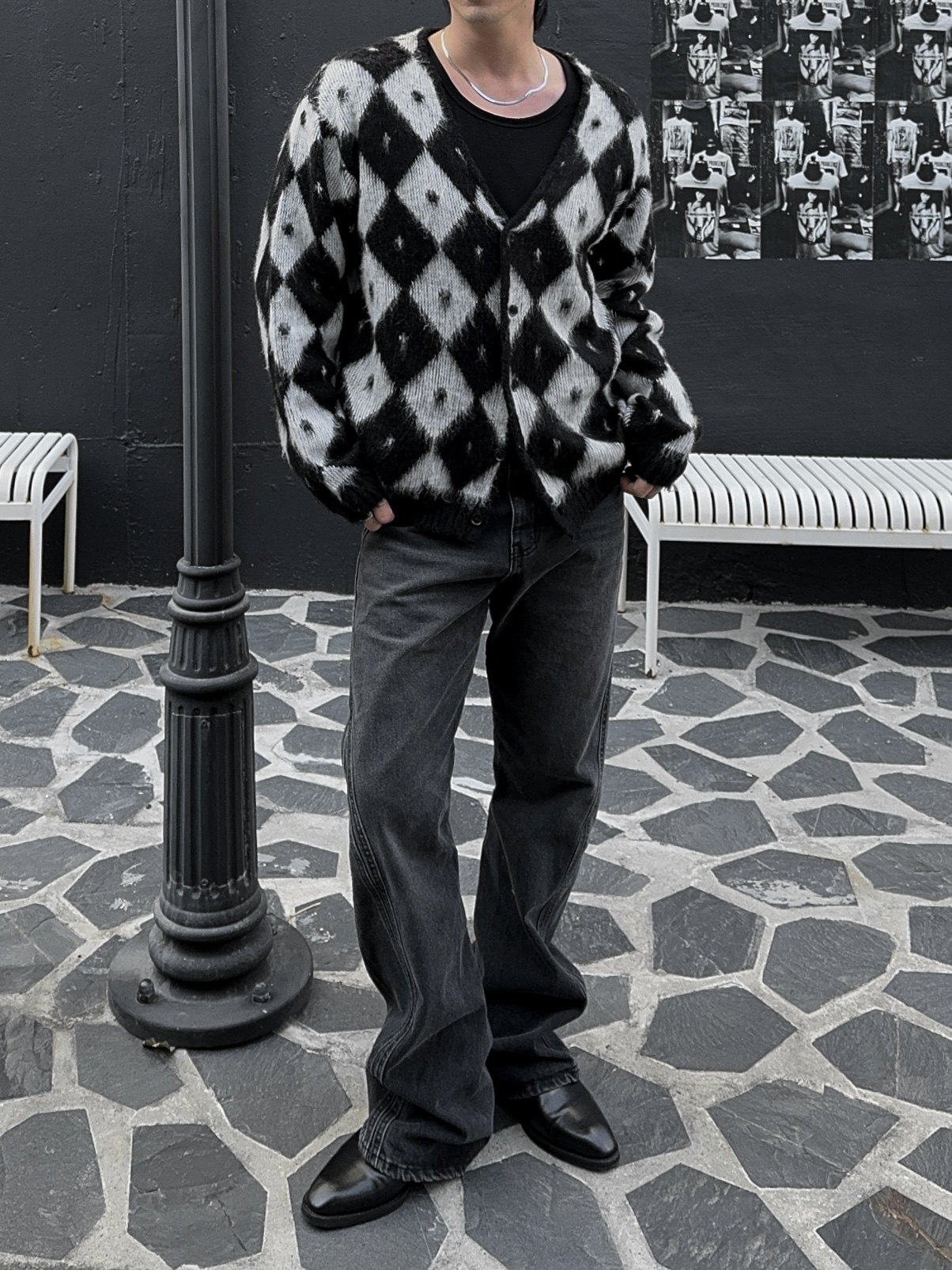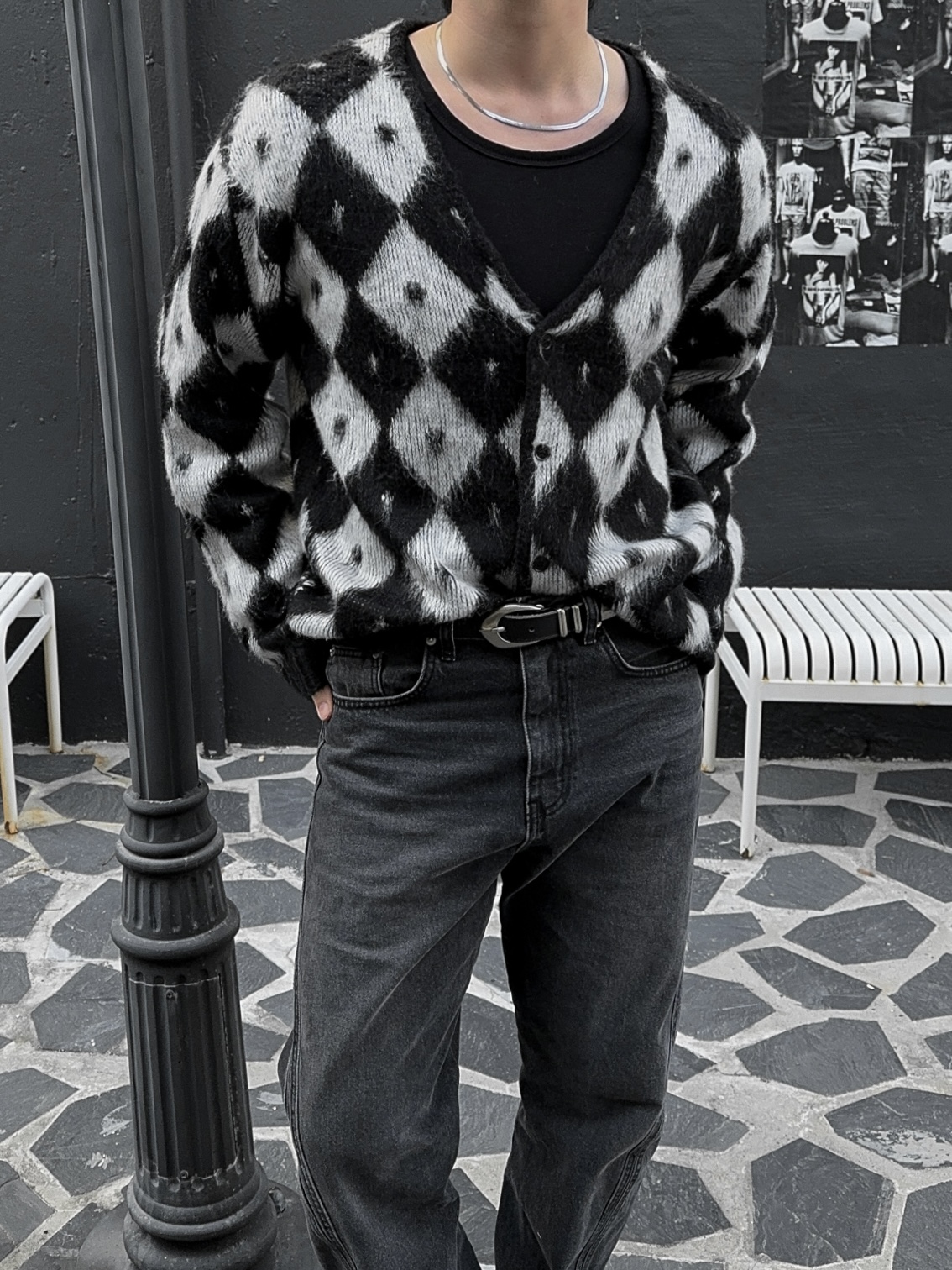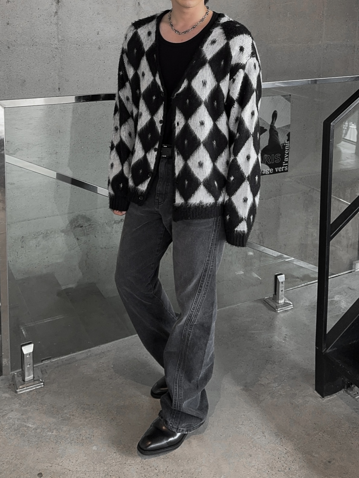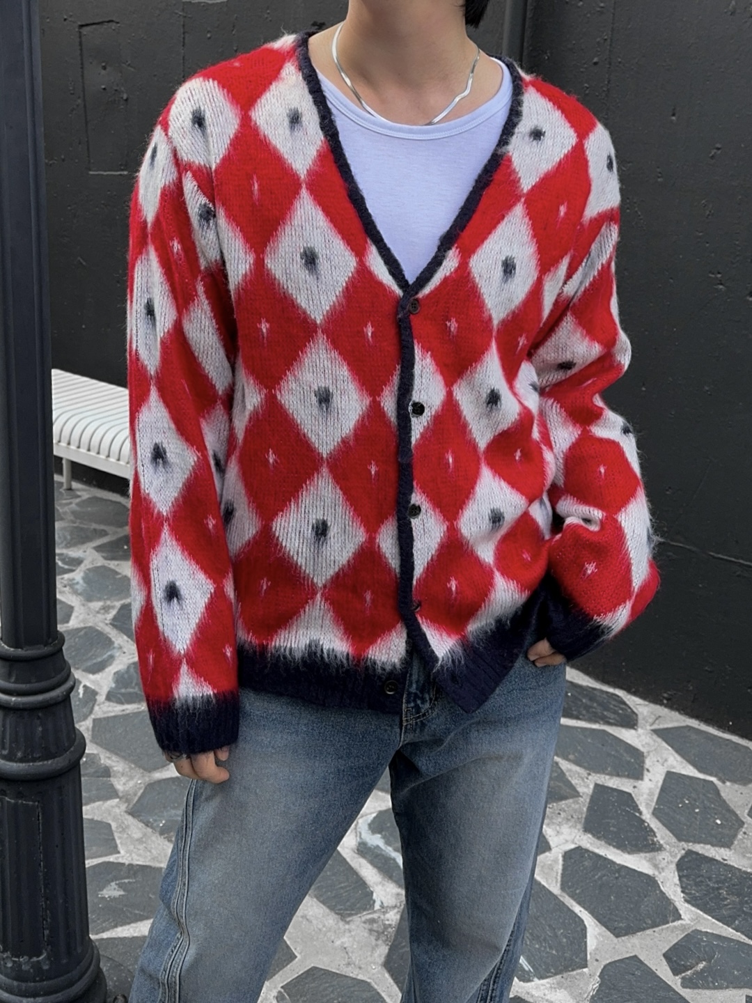 -간절기 포인트로 착용하기 좋은 다이아 패턴 가디건