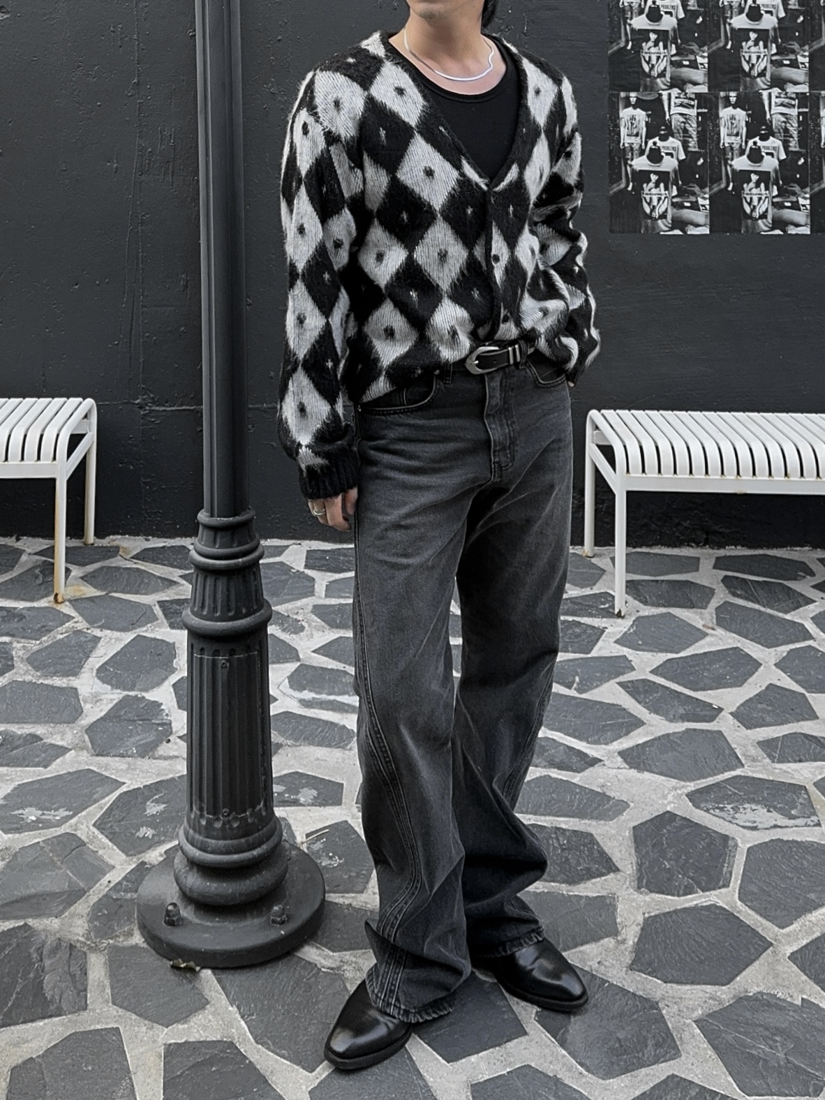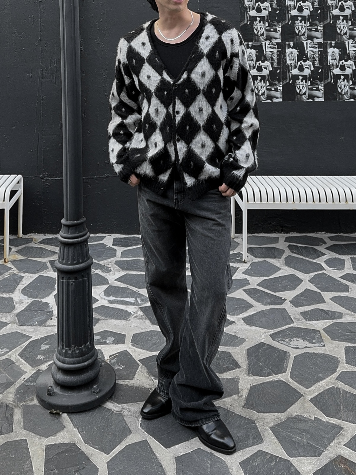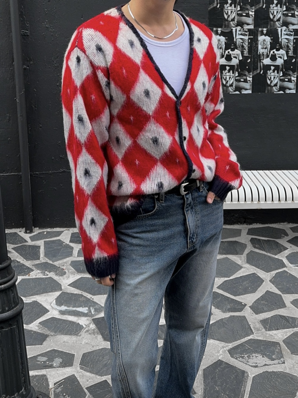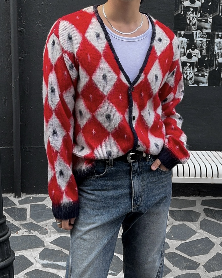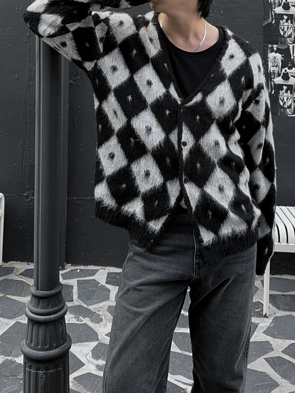-간절기 포인트로 착용하기 좋은 다이아 패턴 가디건