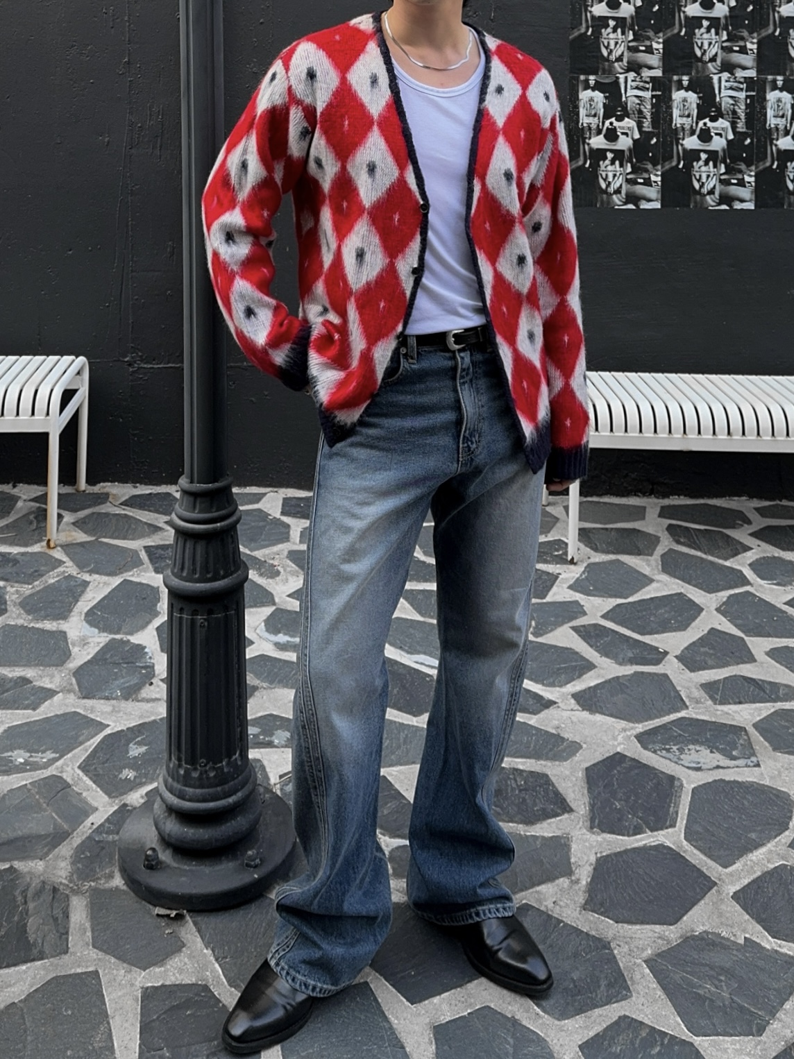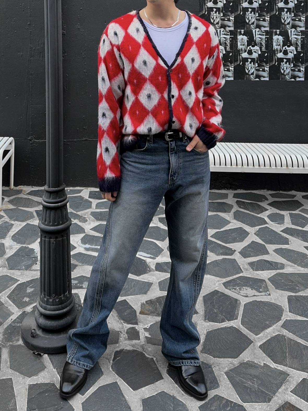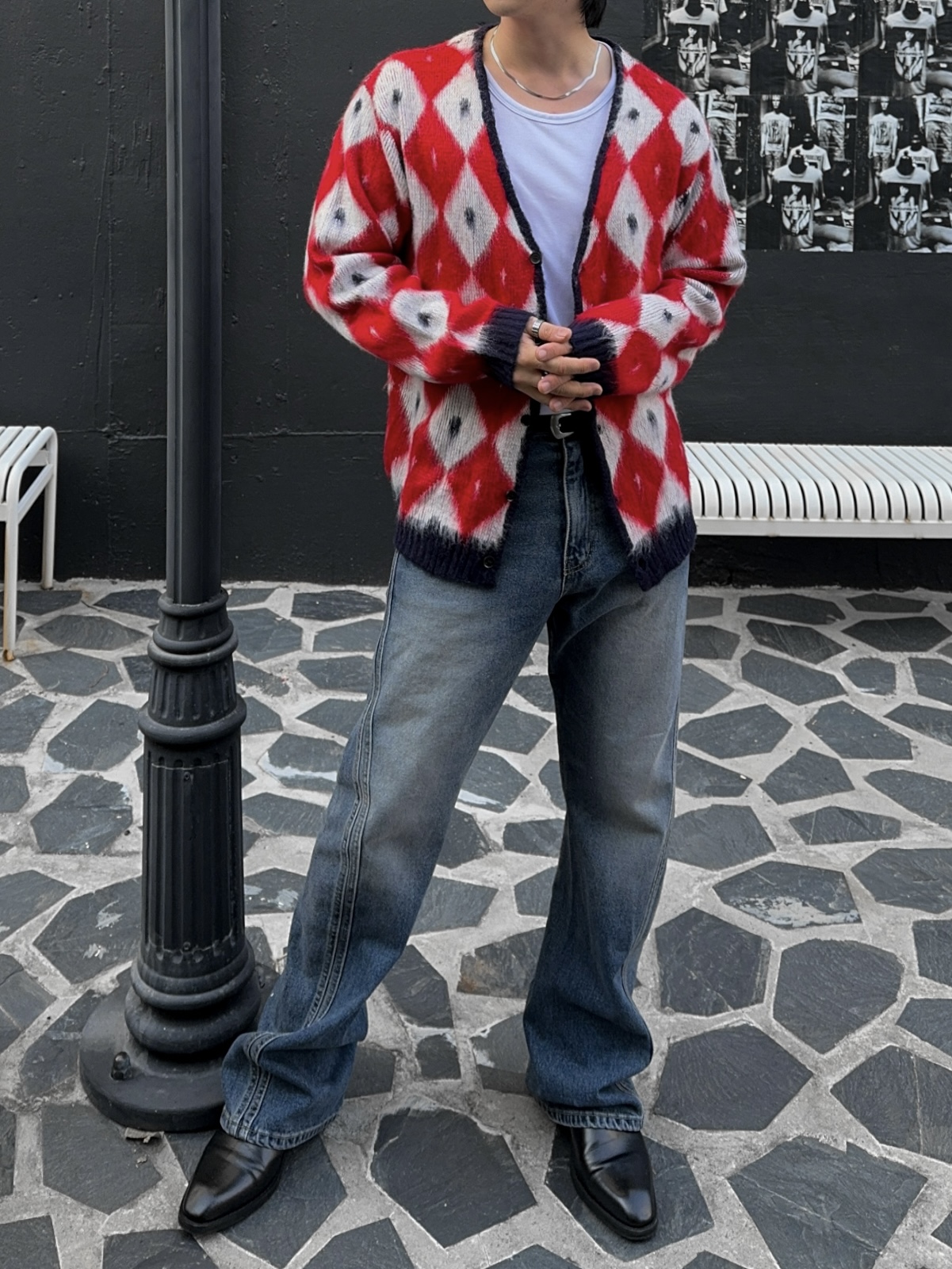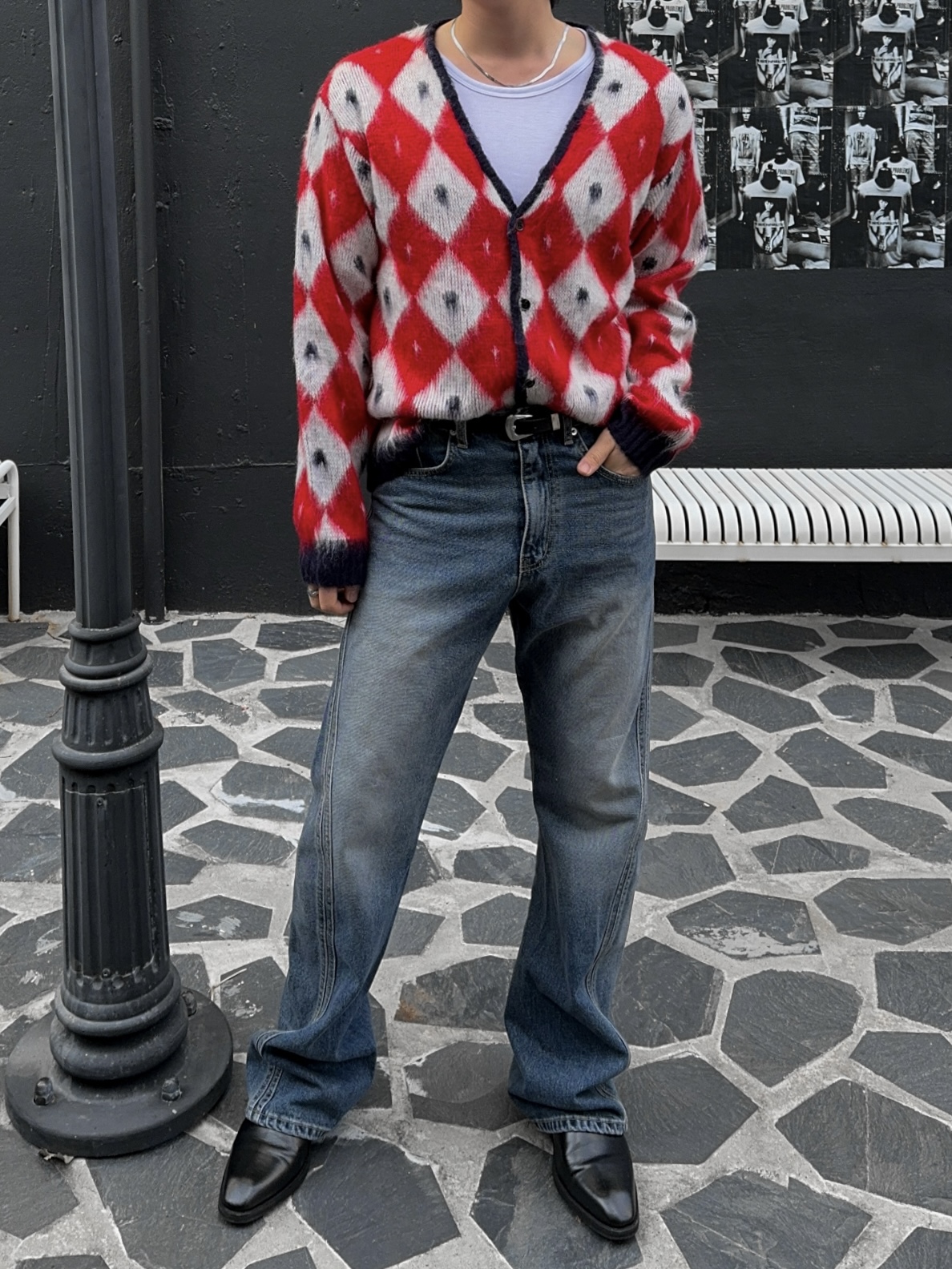 -간절기 포인트로 착용하기 좋은 다이아 패턴 가디건