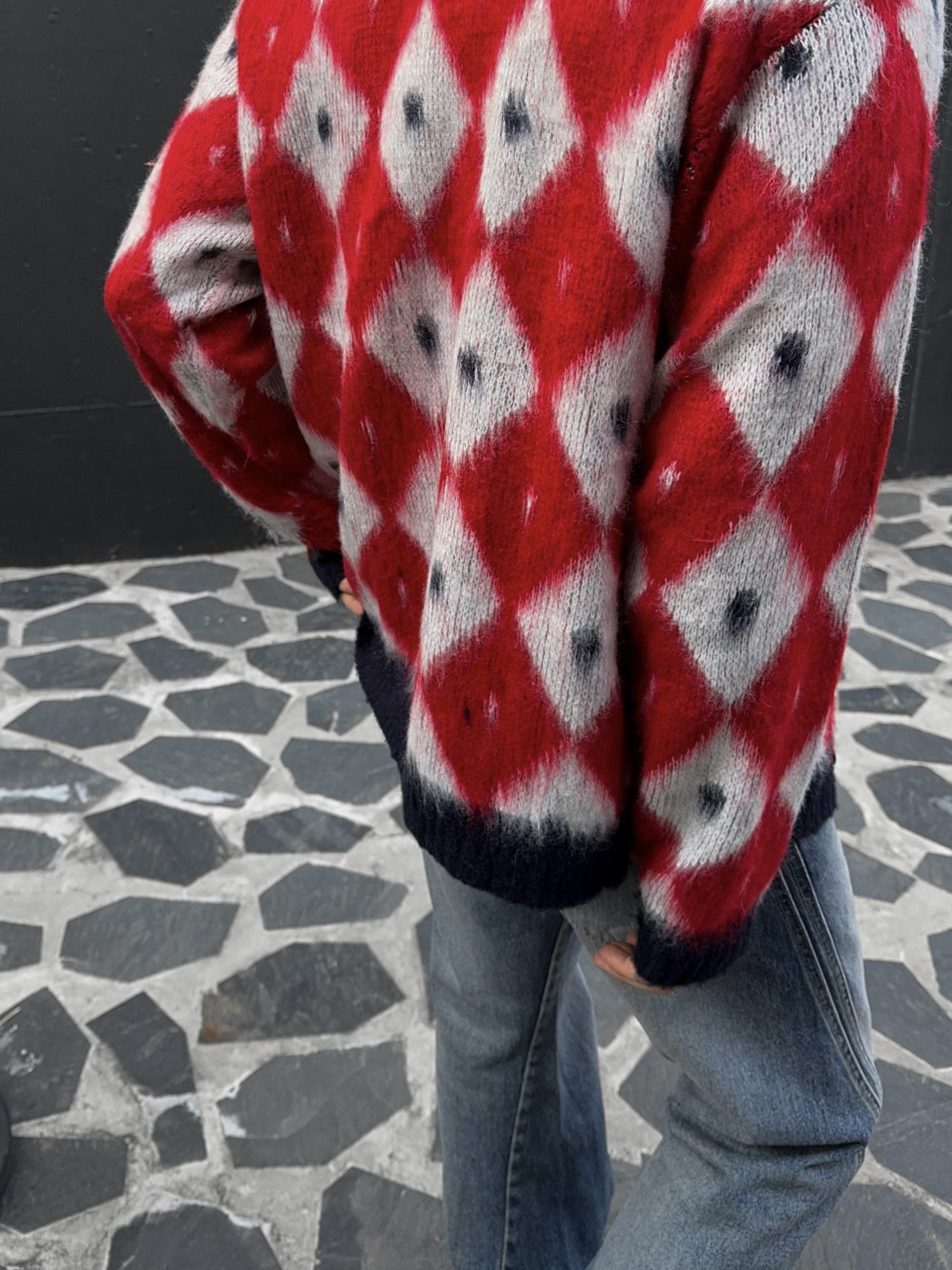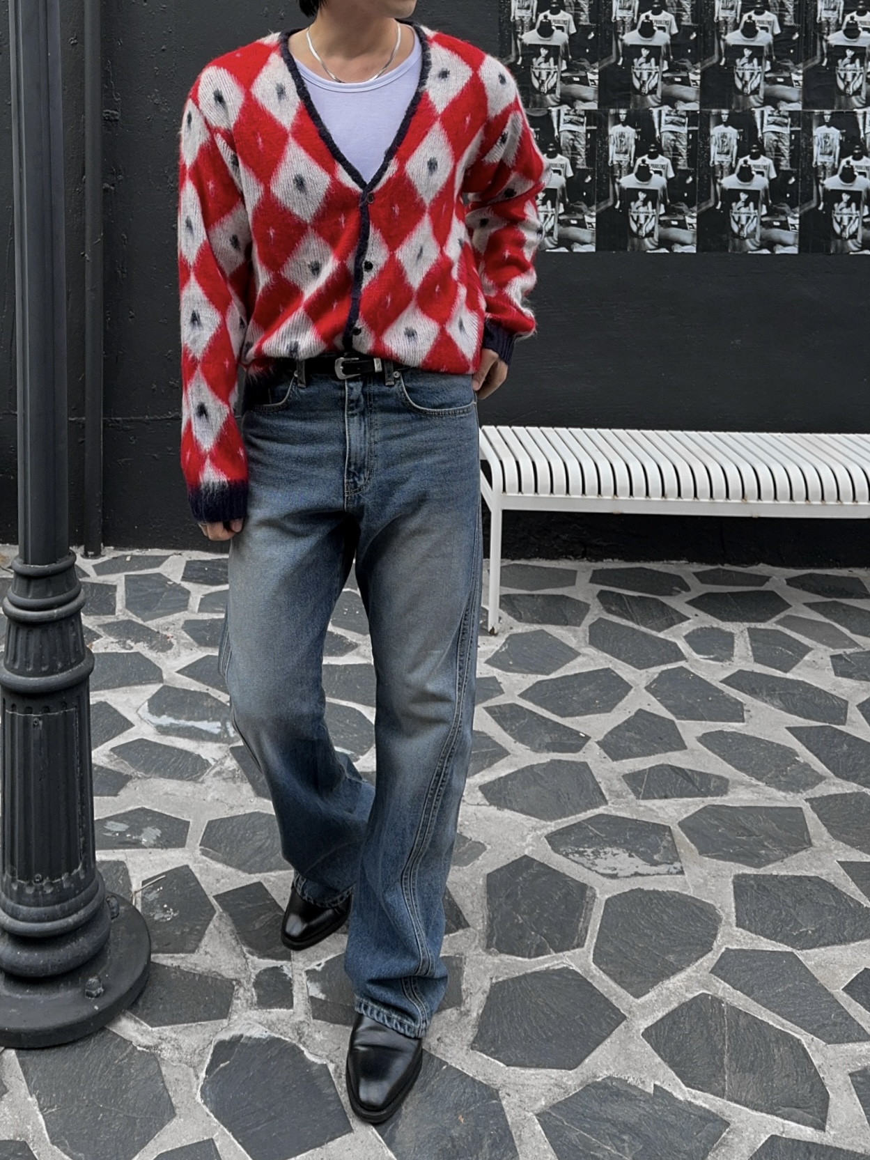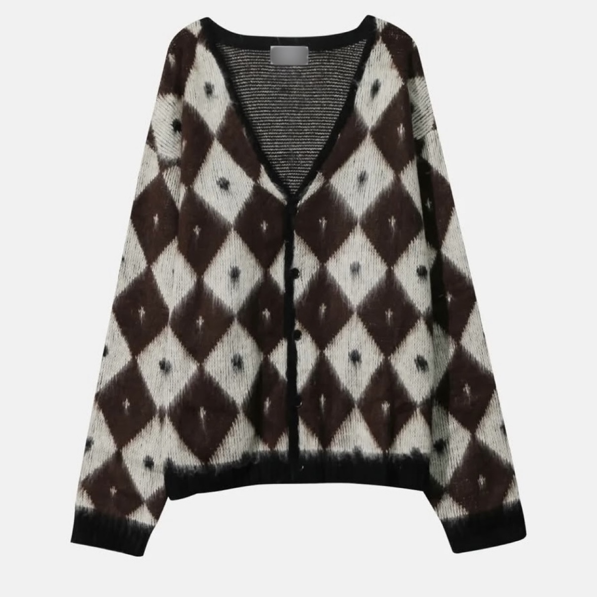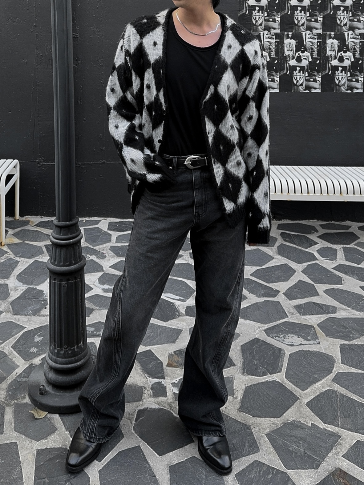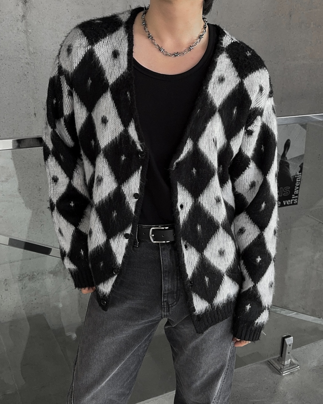 -간절기 포인트로 착용하기 좋은 다이아 패턴 가디건