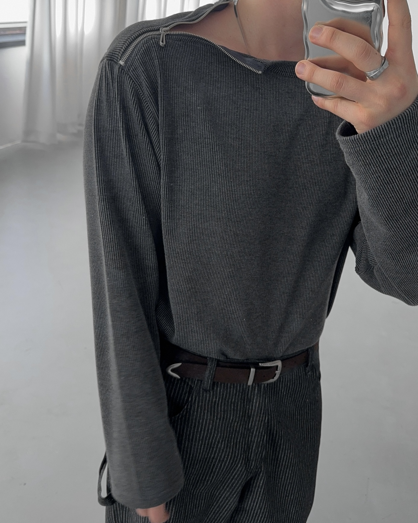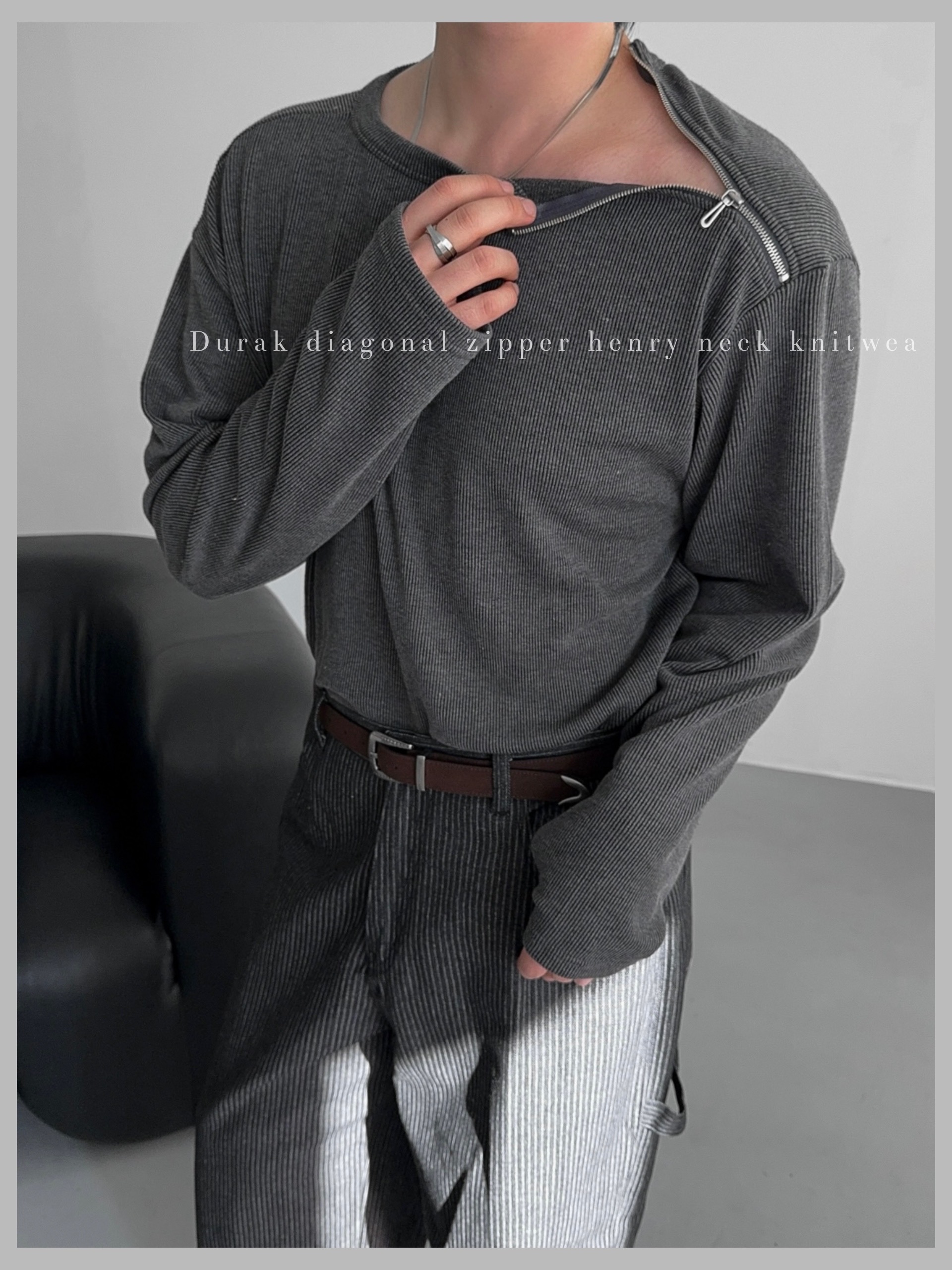 -부드러운 면 소재의 헨리넥 지퍼 니트