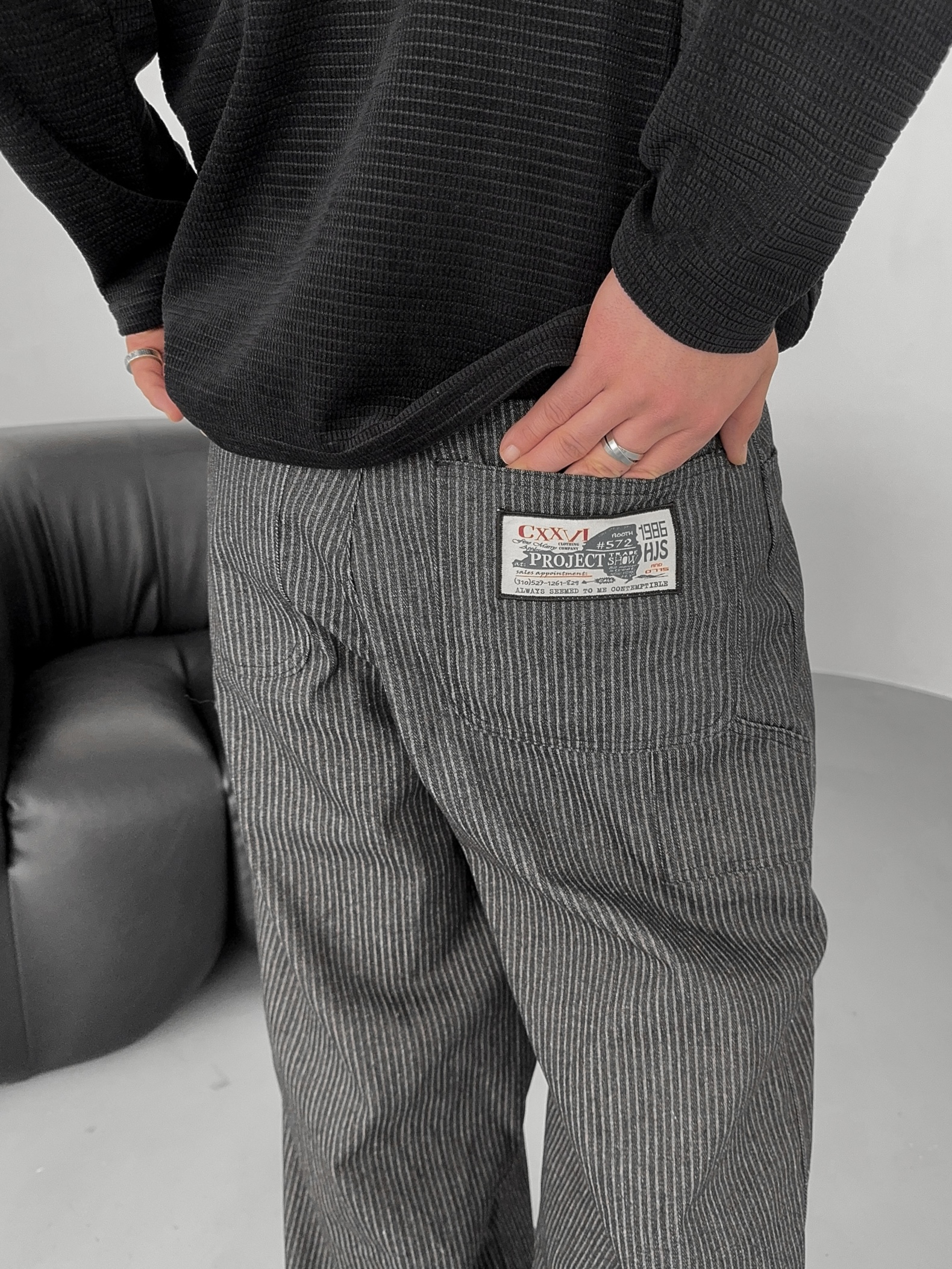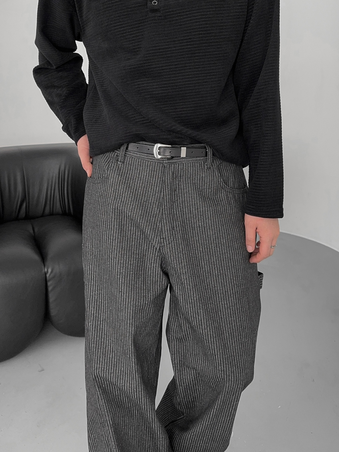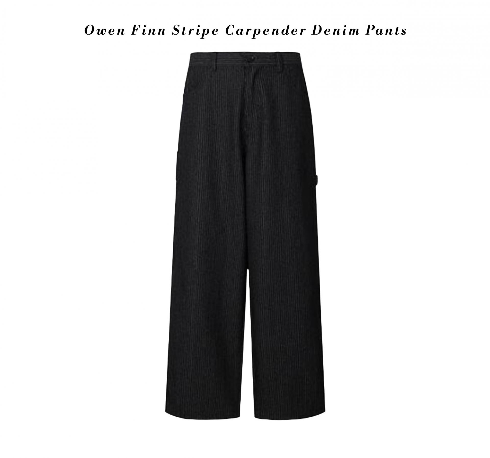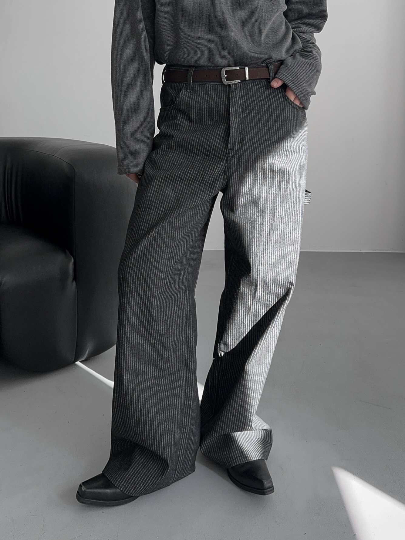 -전체 핀 스트라이프 패턴감의 데님 팬츠