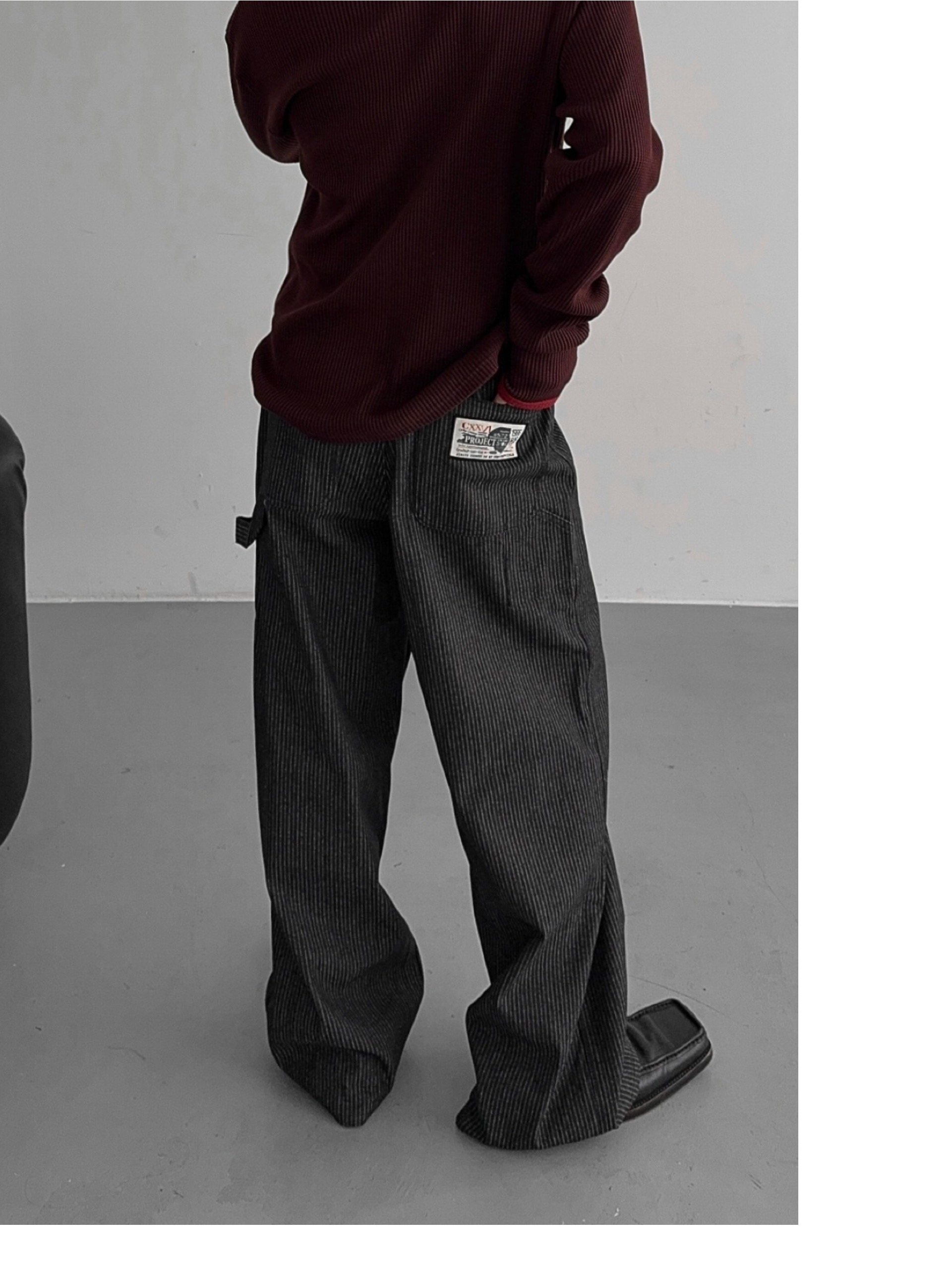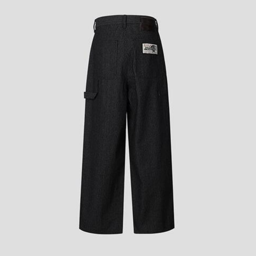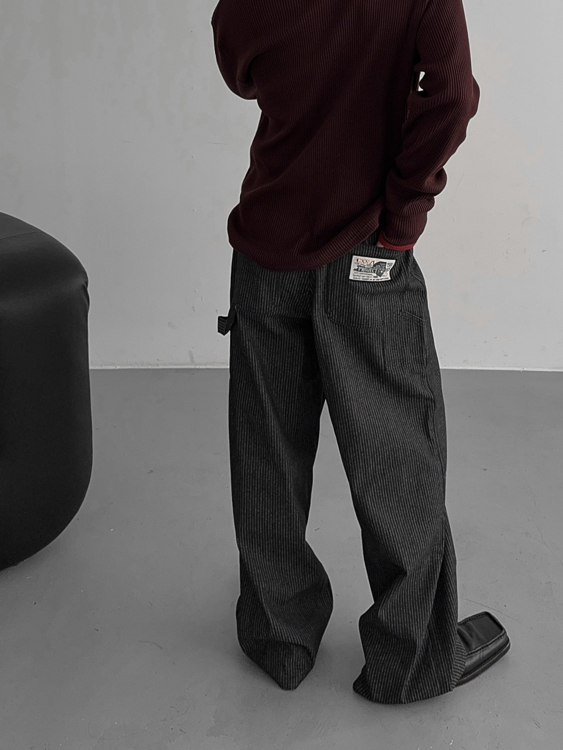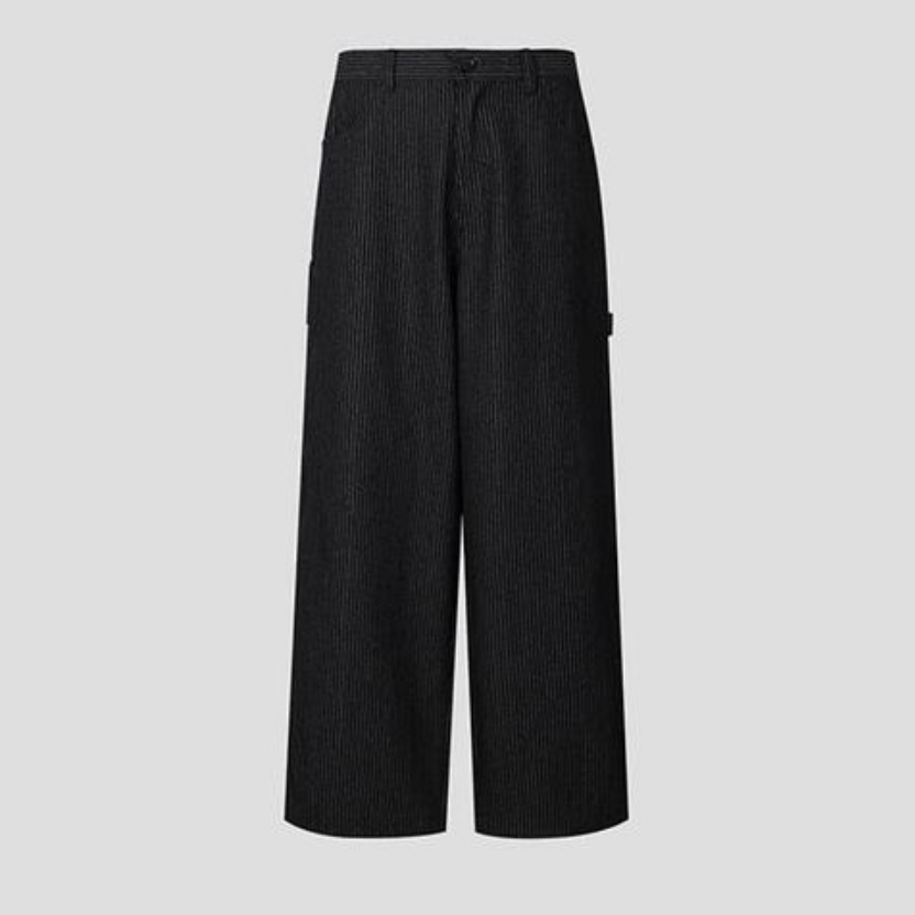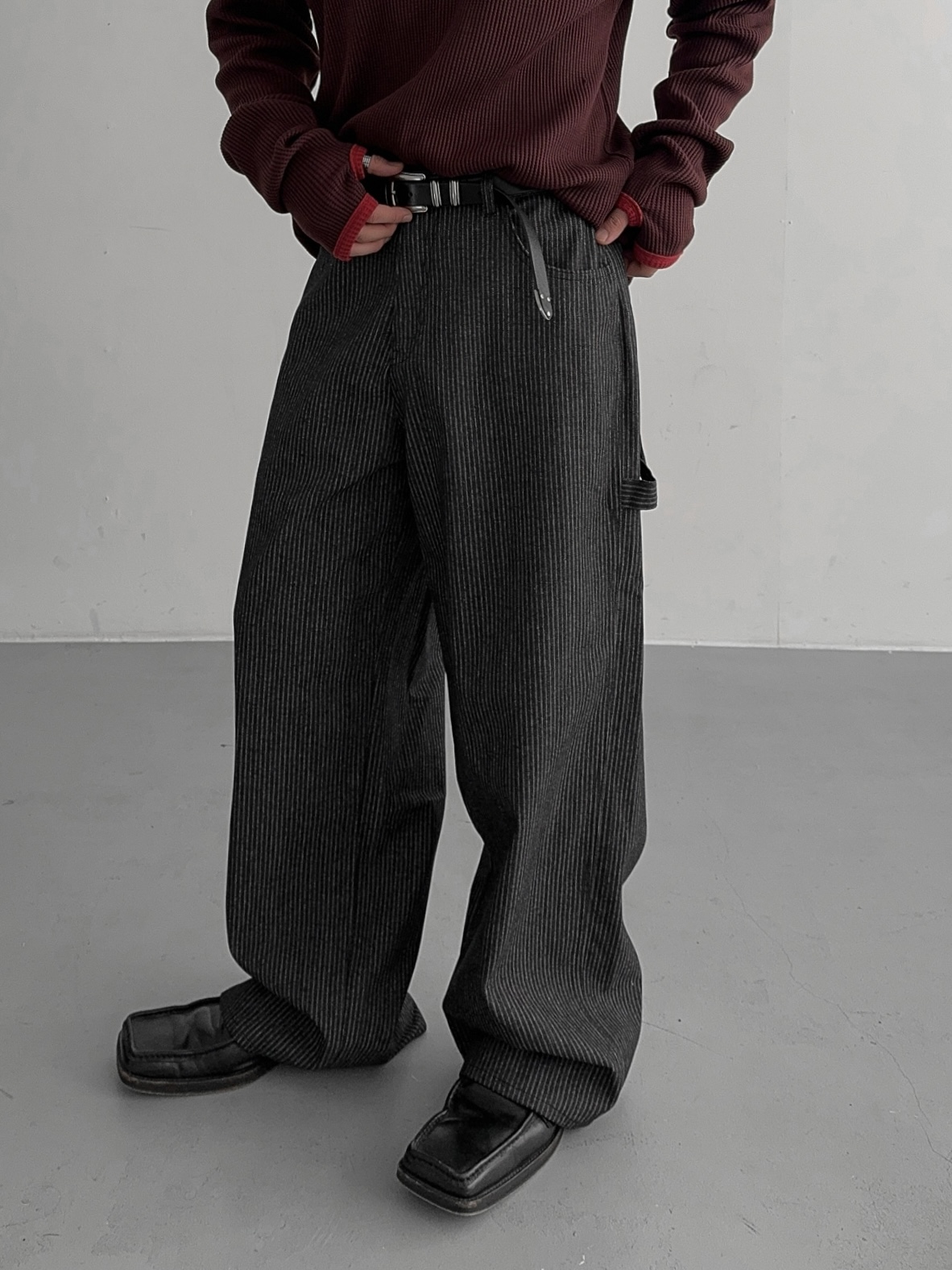 -전체 핀 스트라이프 패턴감의 데님 팬츠