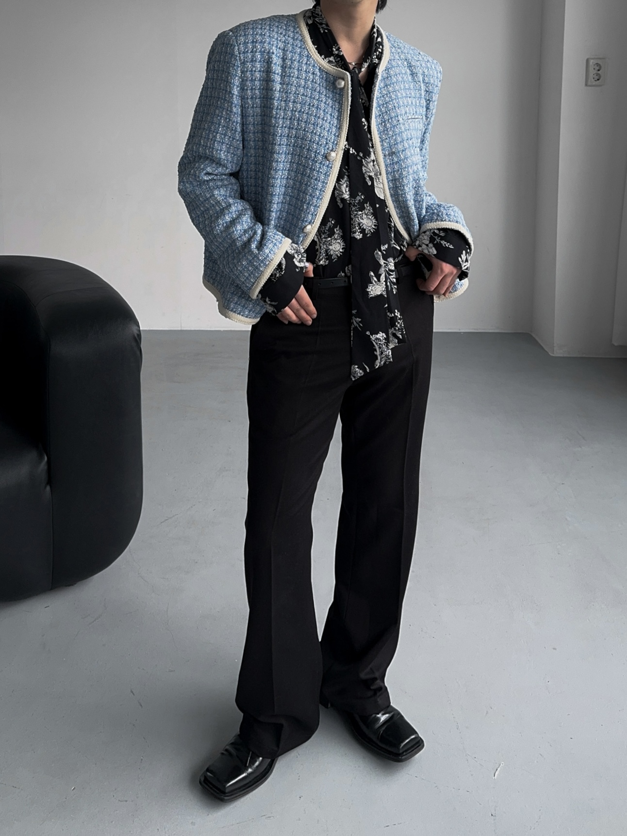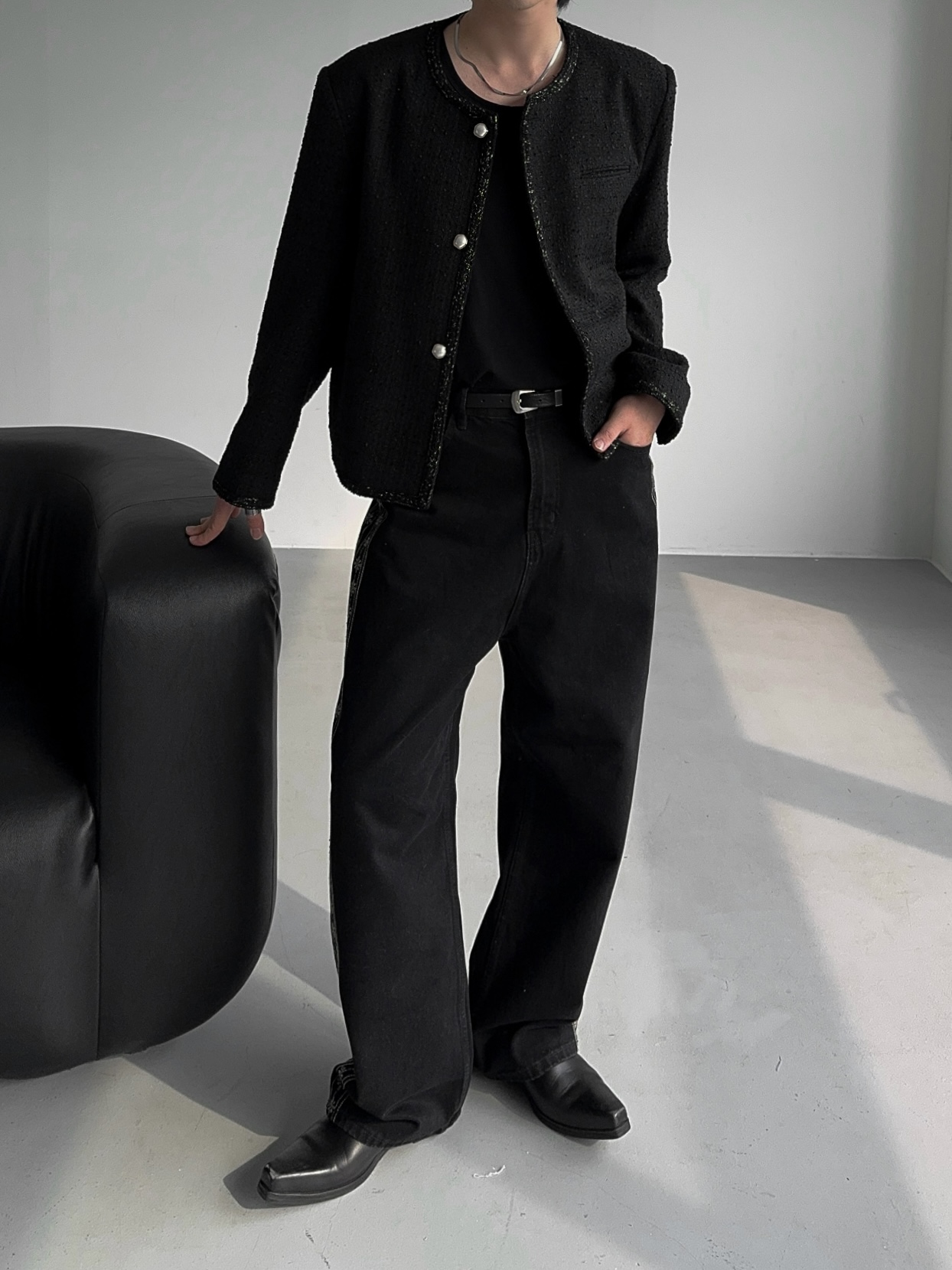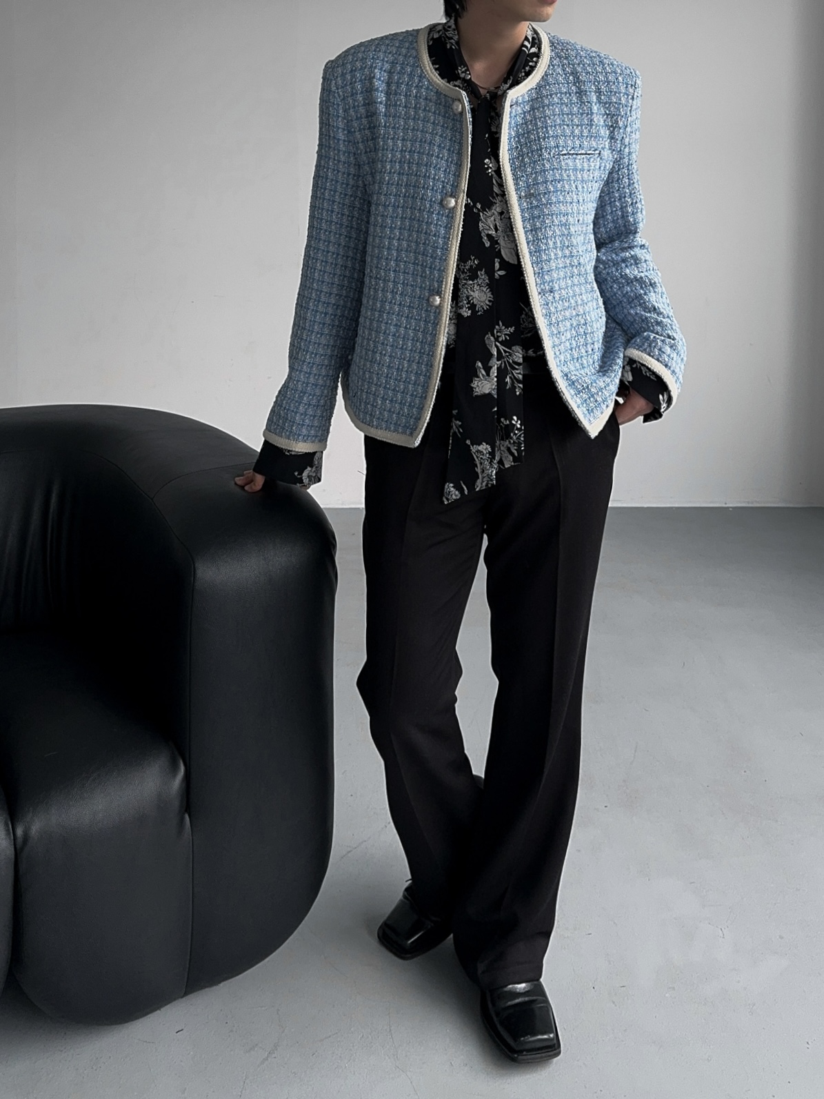 -촘촘한 트윌조직으로 리얼 트위드 소재감