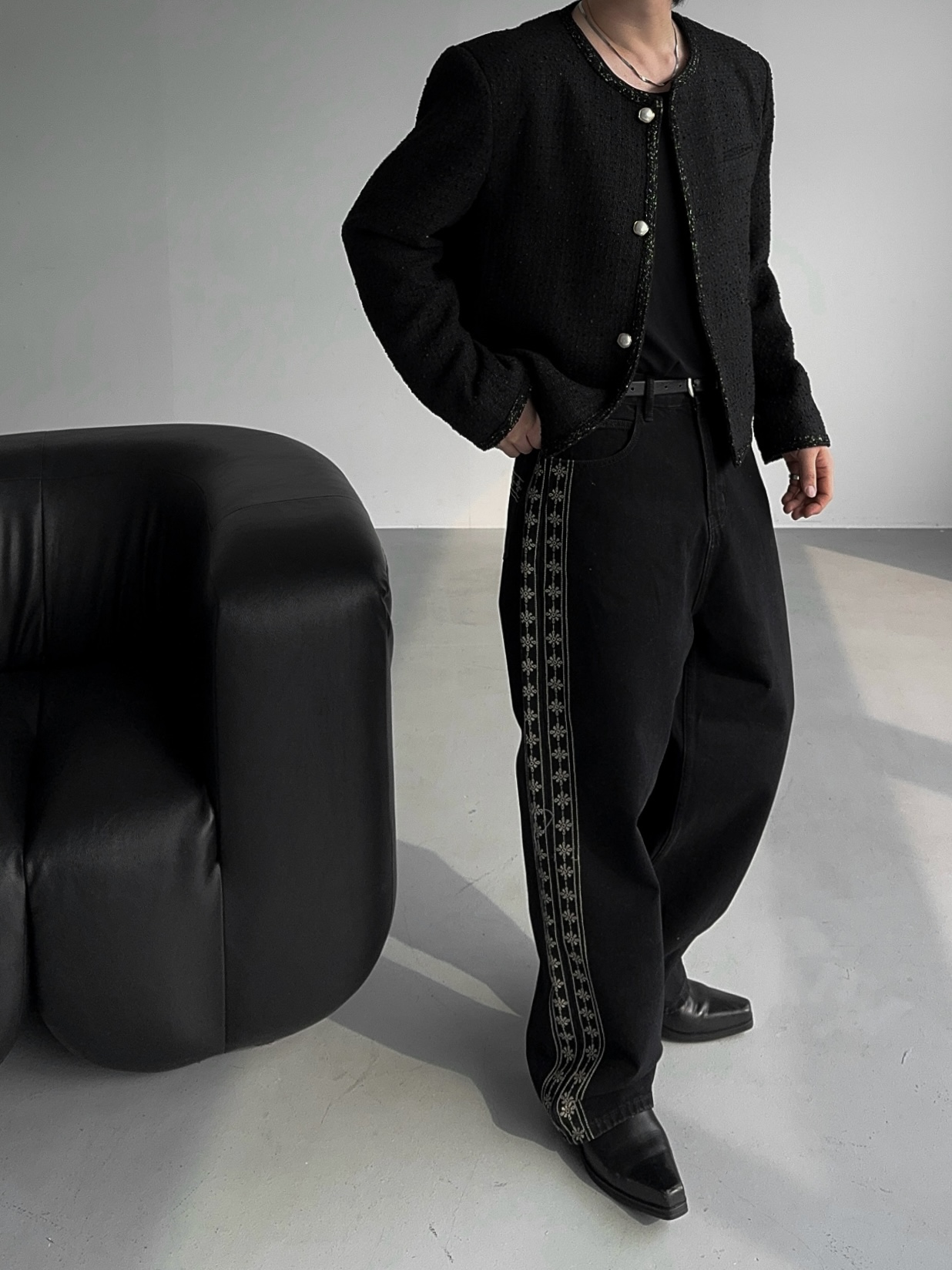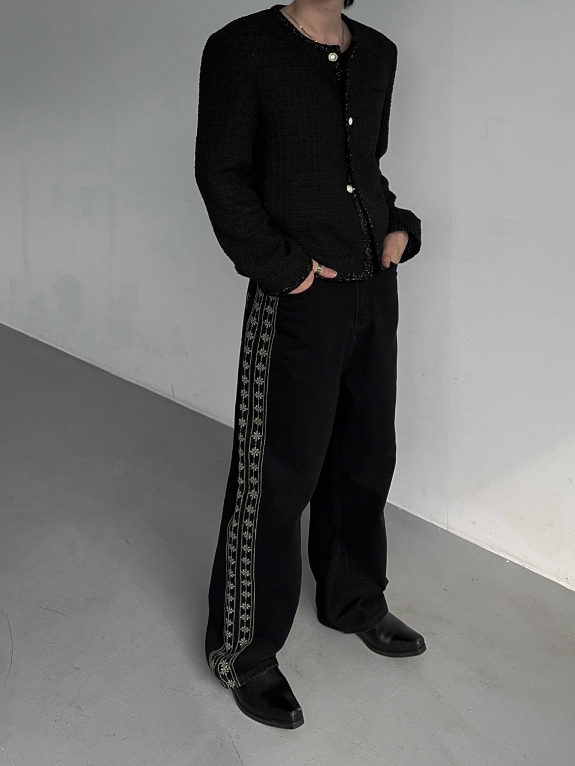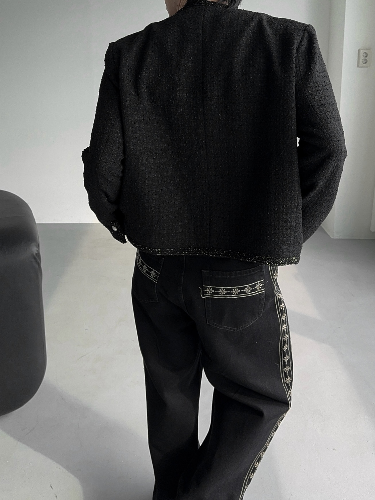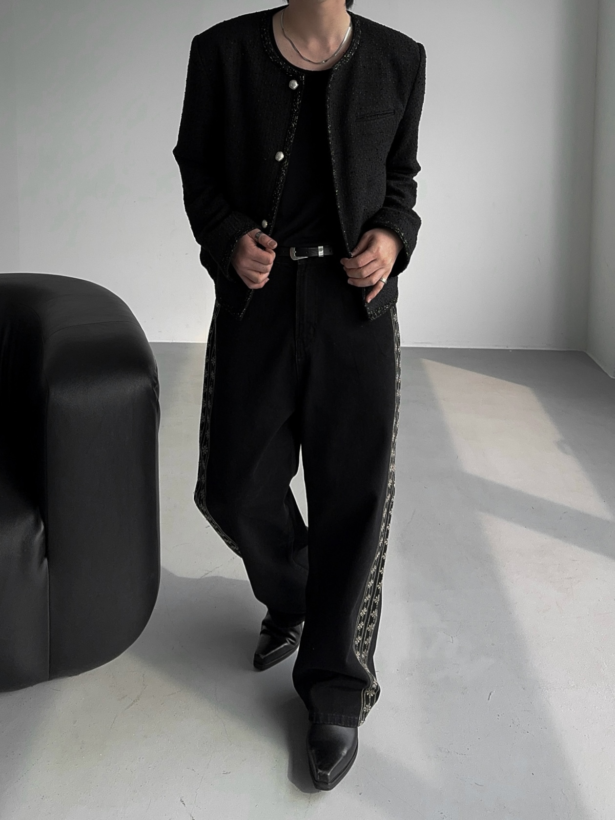 -촘촘한 트윌조직으로 리얼 트위드 소재감